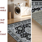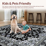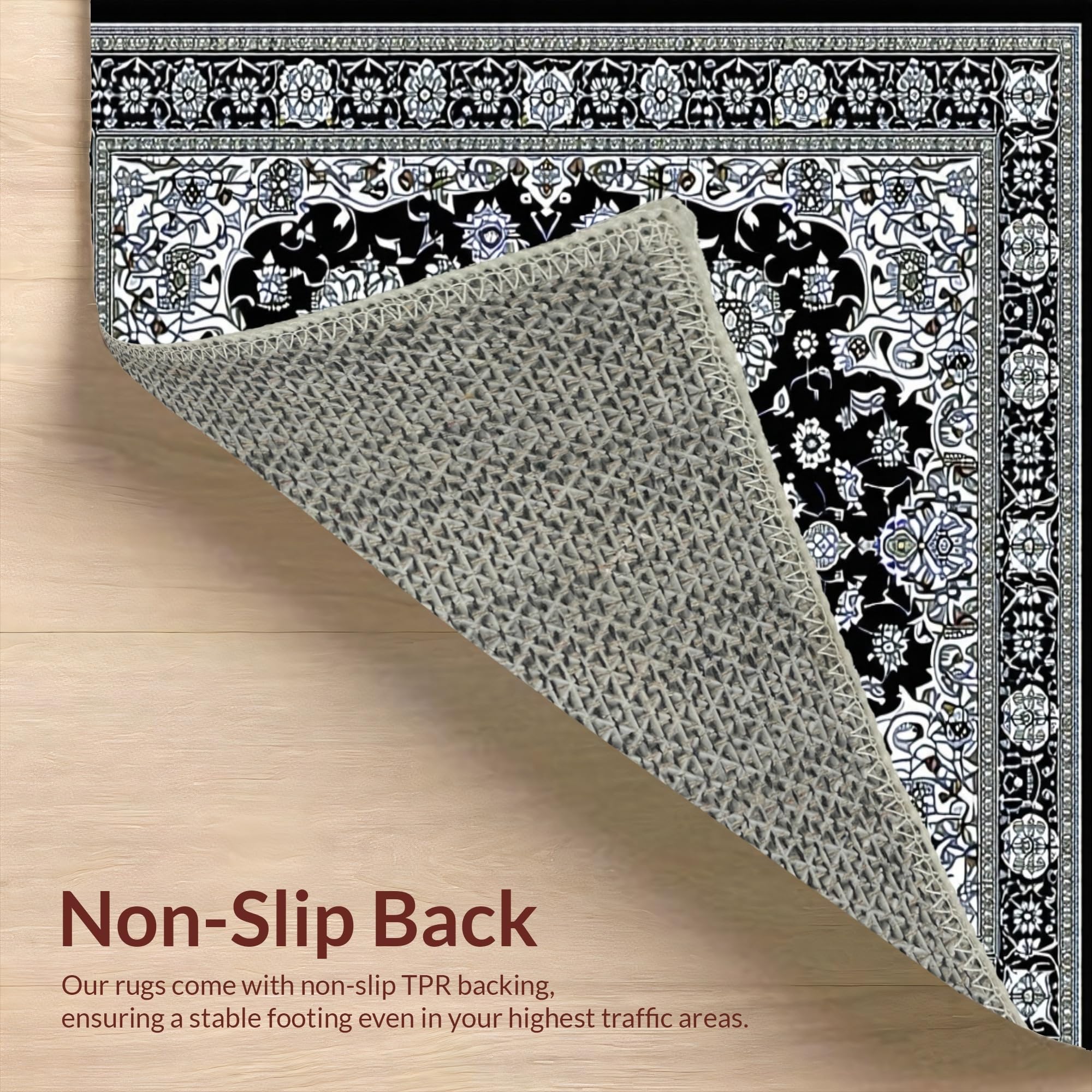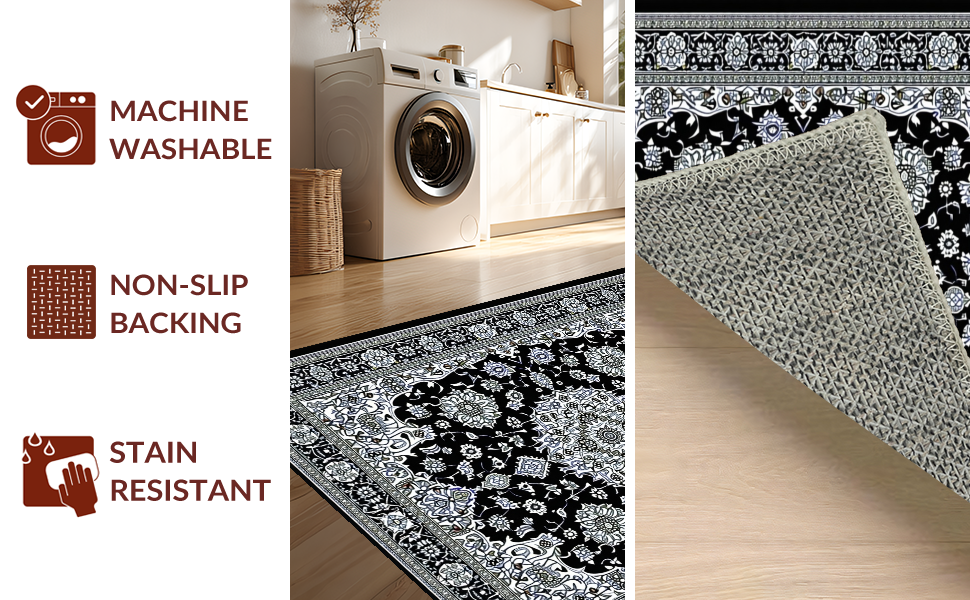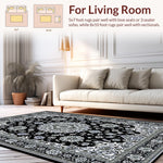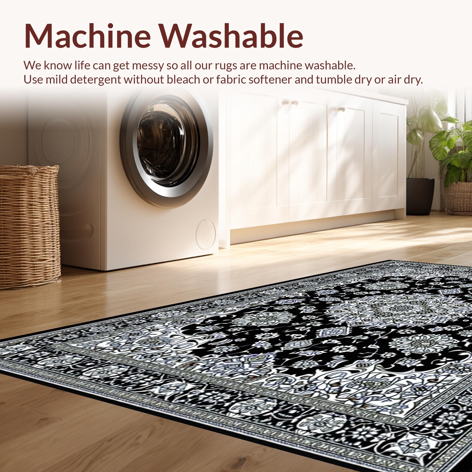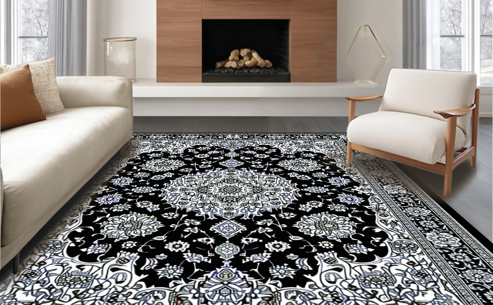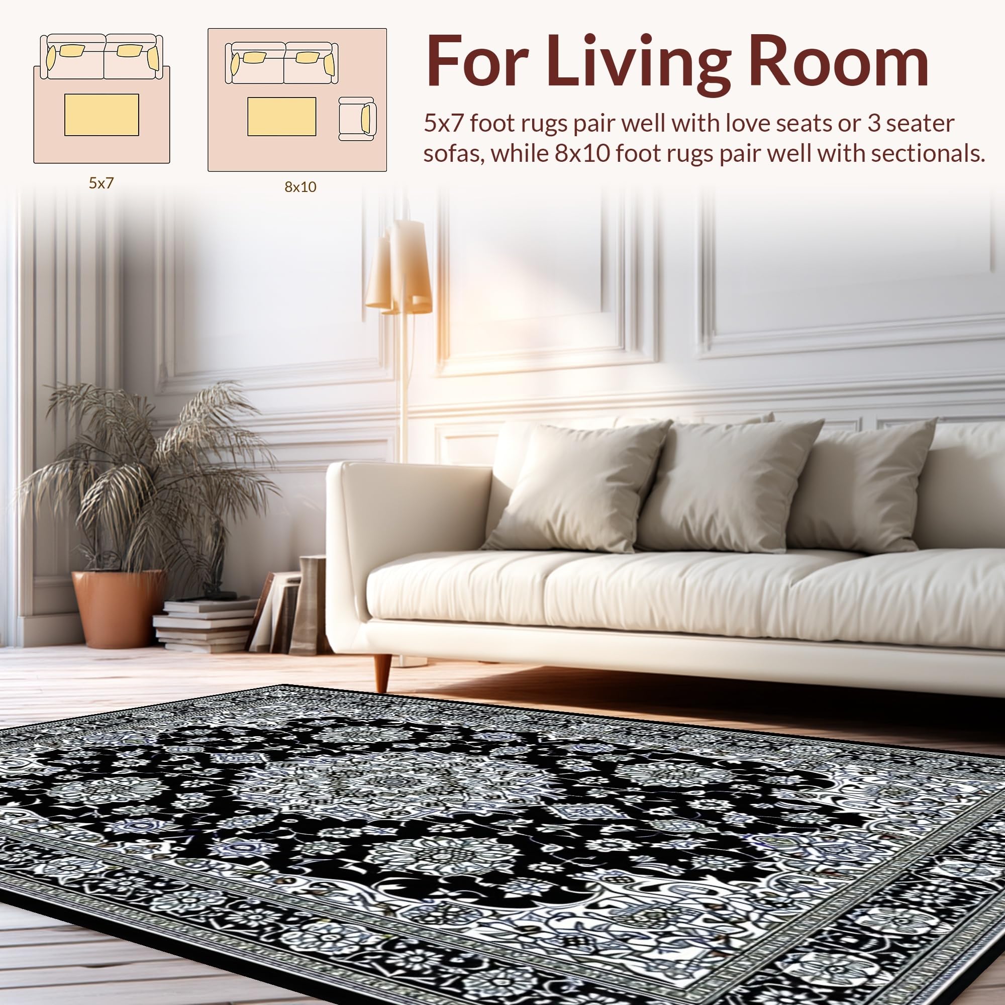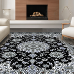 Ultra Soft Area Rug, Non Slip, Stain Resistant, Washable Area Rugs for Living Room, Bedroom, Timeless Floral Lattice Aesthetic(Black) Overview: