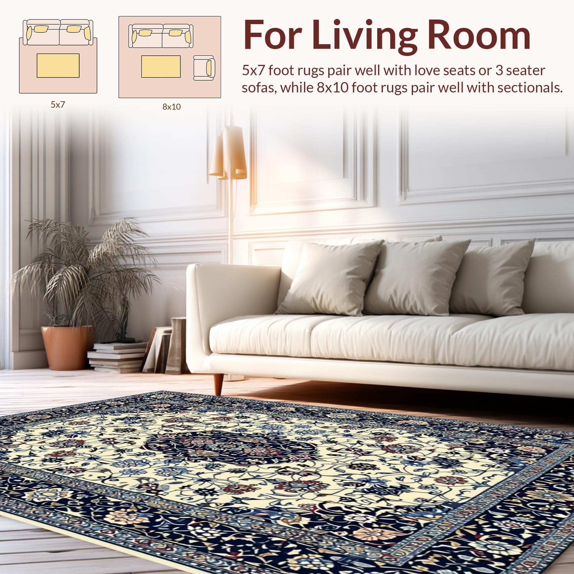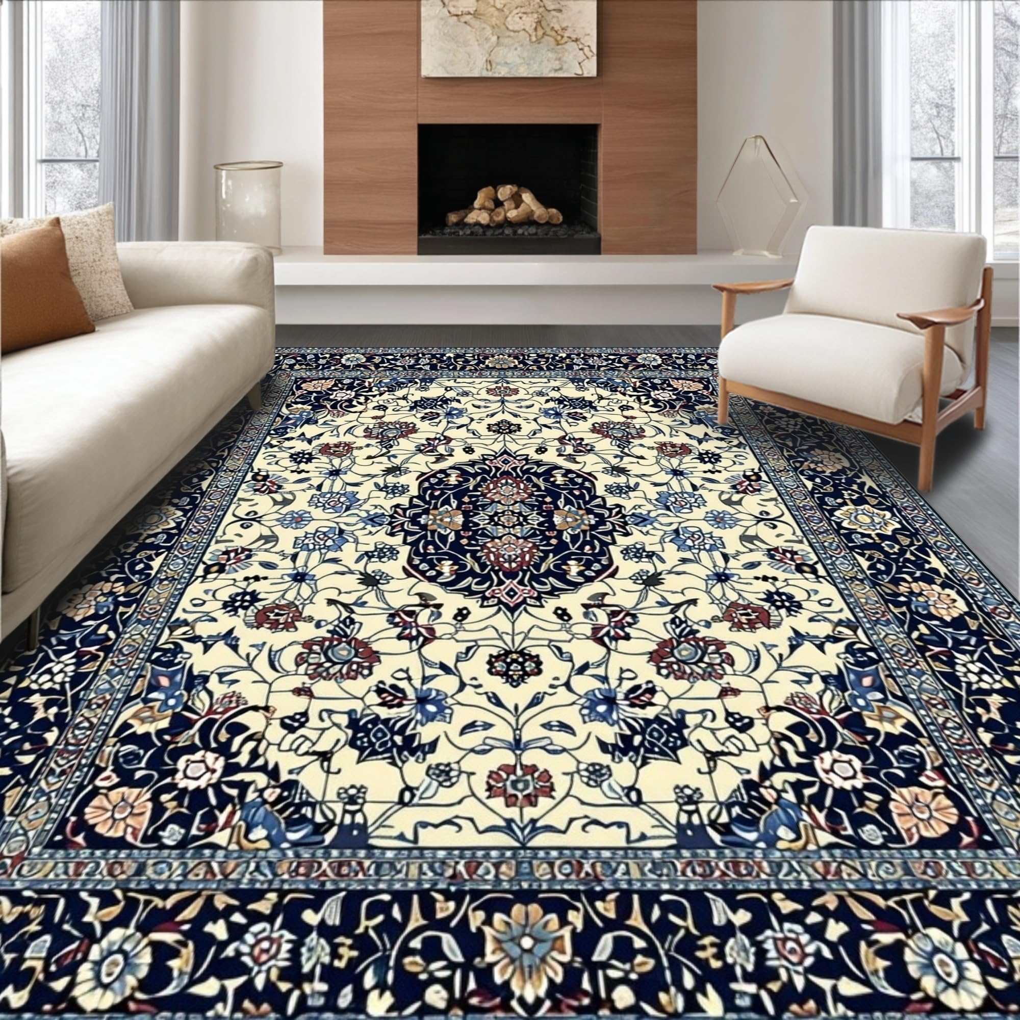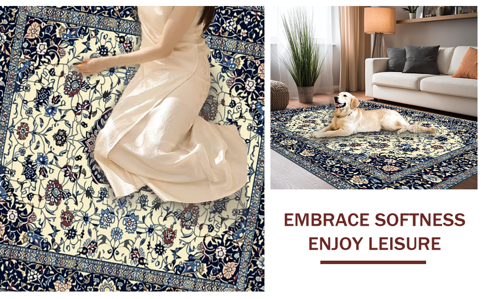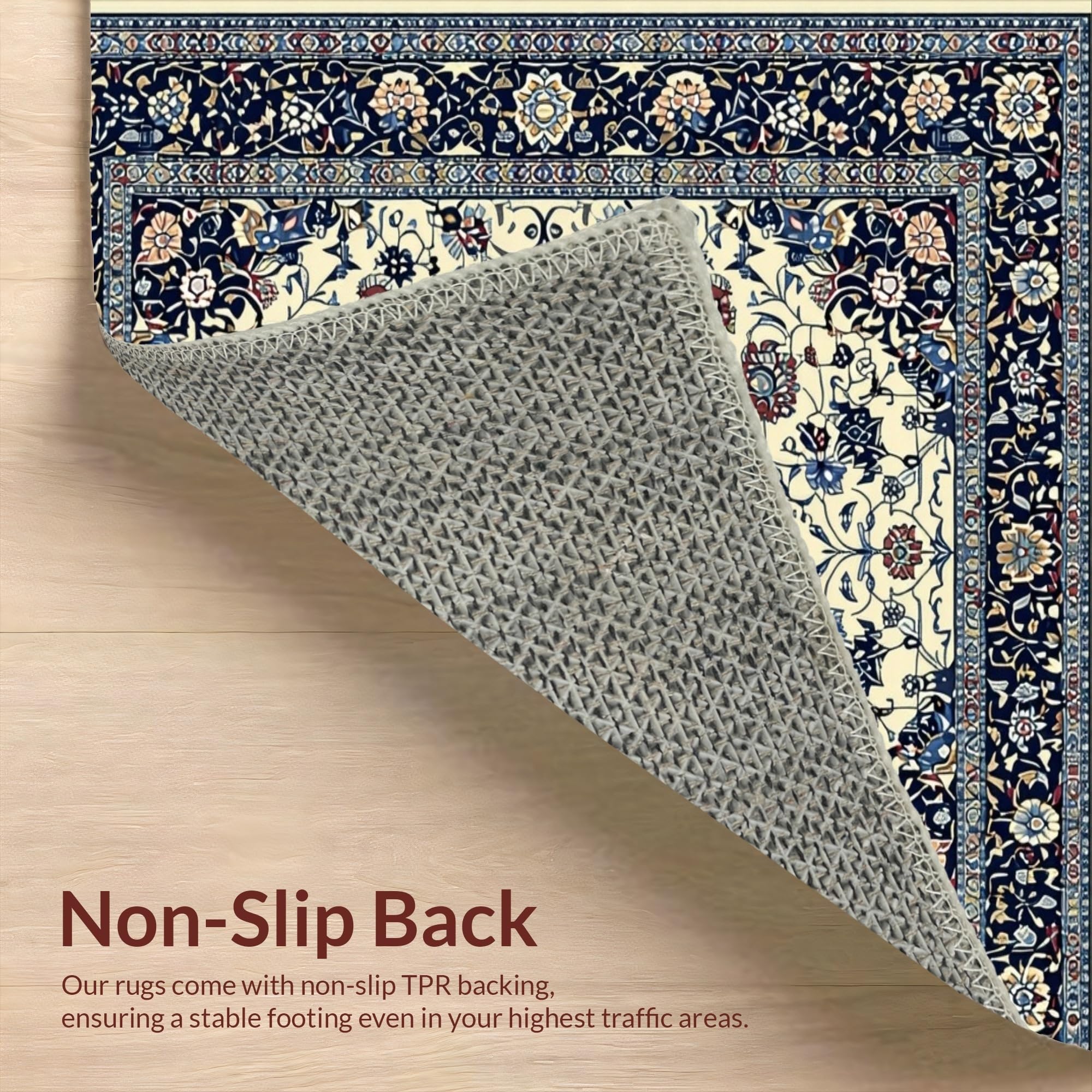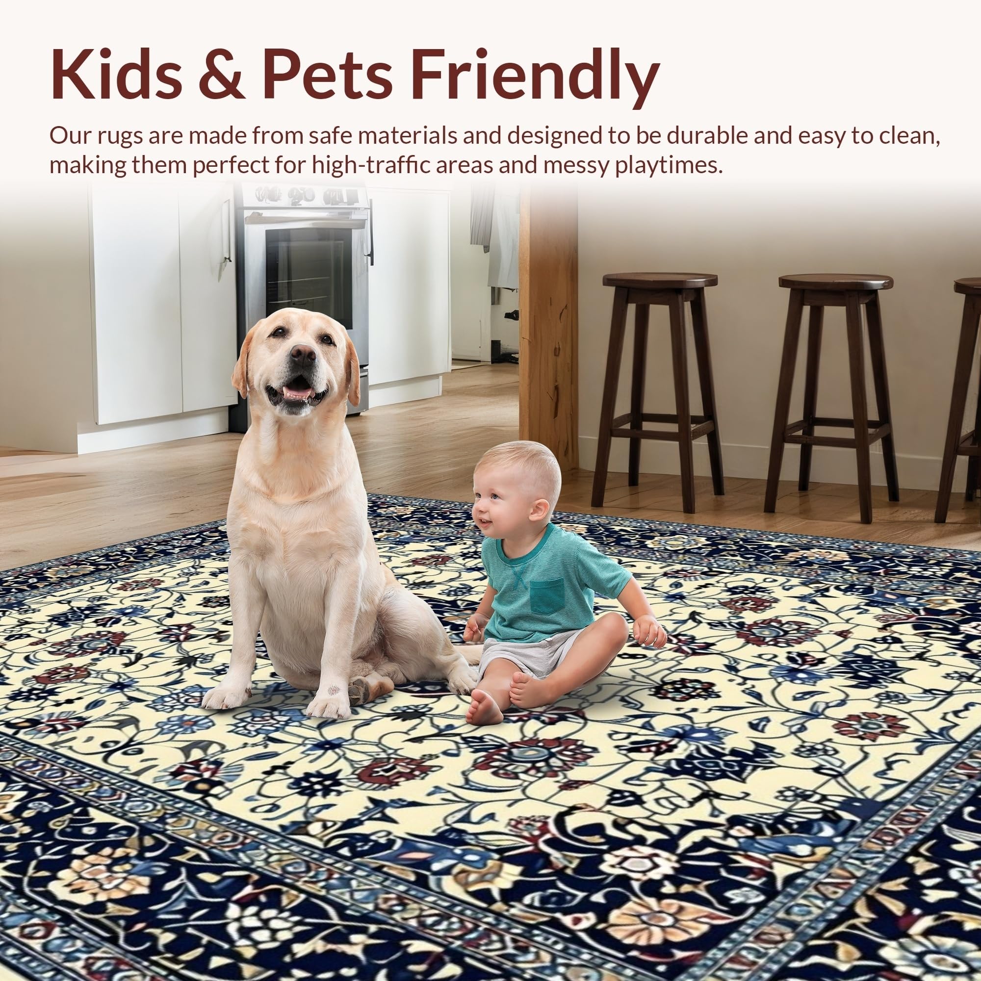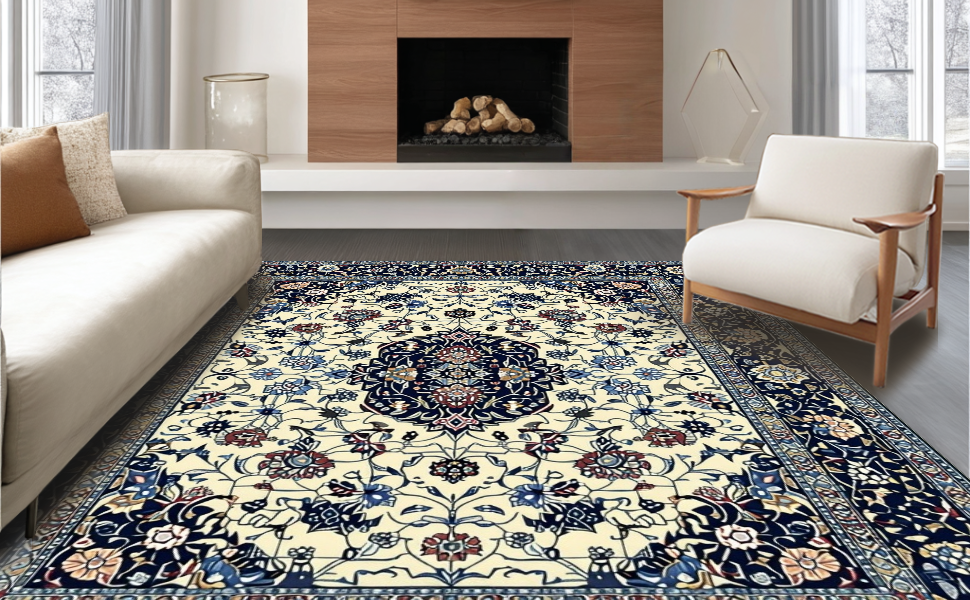 Ultra Soft Area Rug, Non Slip, Stain Resistant, Washable Area Rugs for Living Room, Bedroom, Timeless Floral Medley Charm(Ivory) Overview: