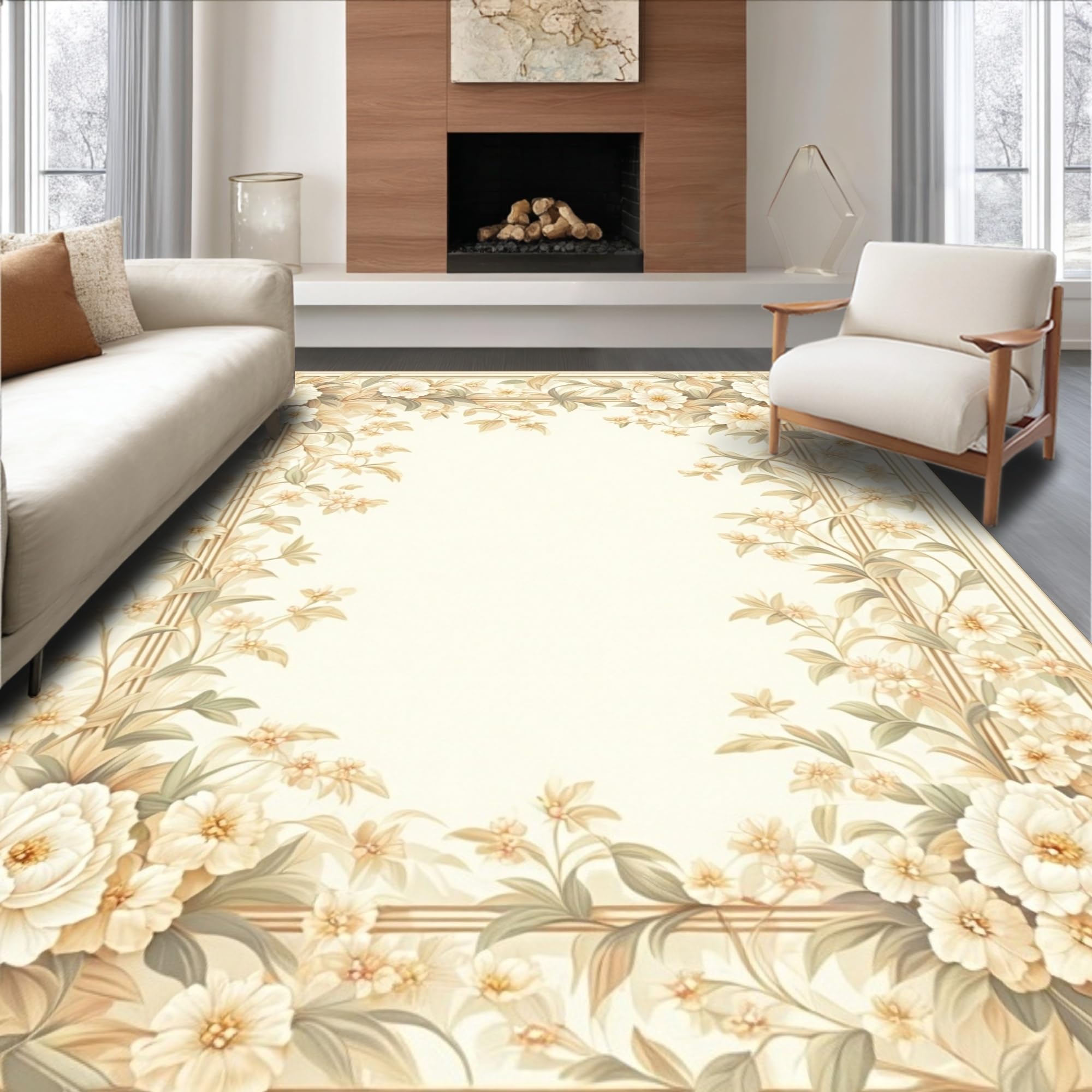 Ultra Soft Area Rug, Non Slip, Stain Resistant, Washable Area Rugs for Living Room, Bedroom, Timeless Grace Area Ivory Tones Beige Classic Floral Medallion(Beige) Overview: