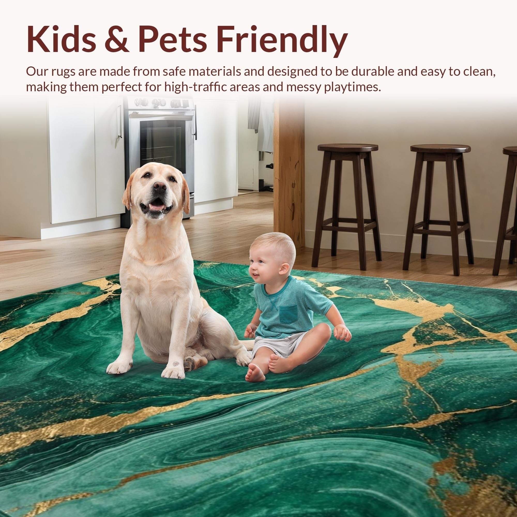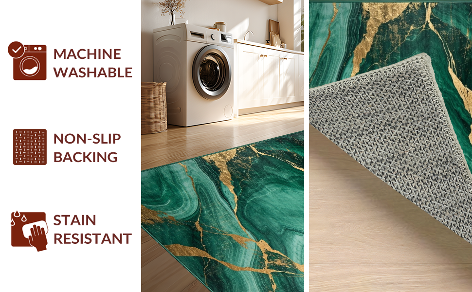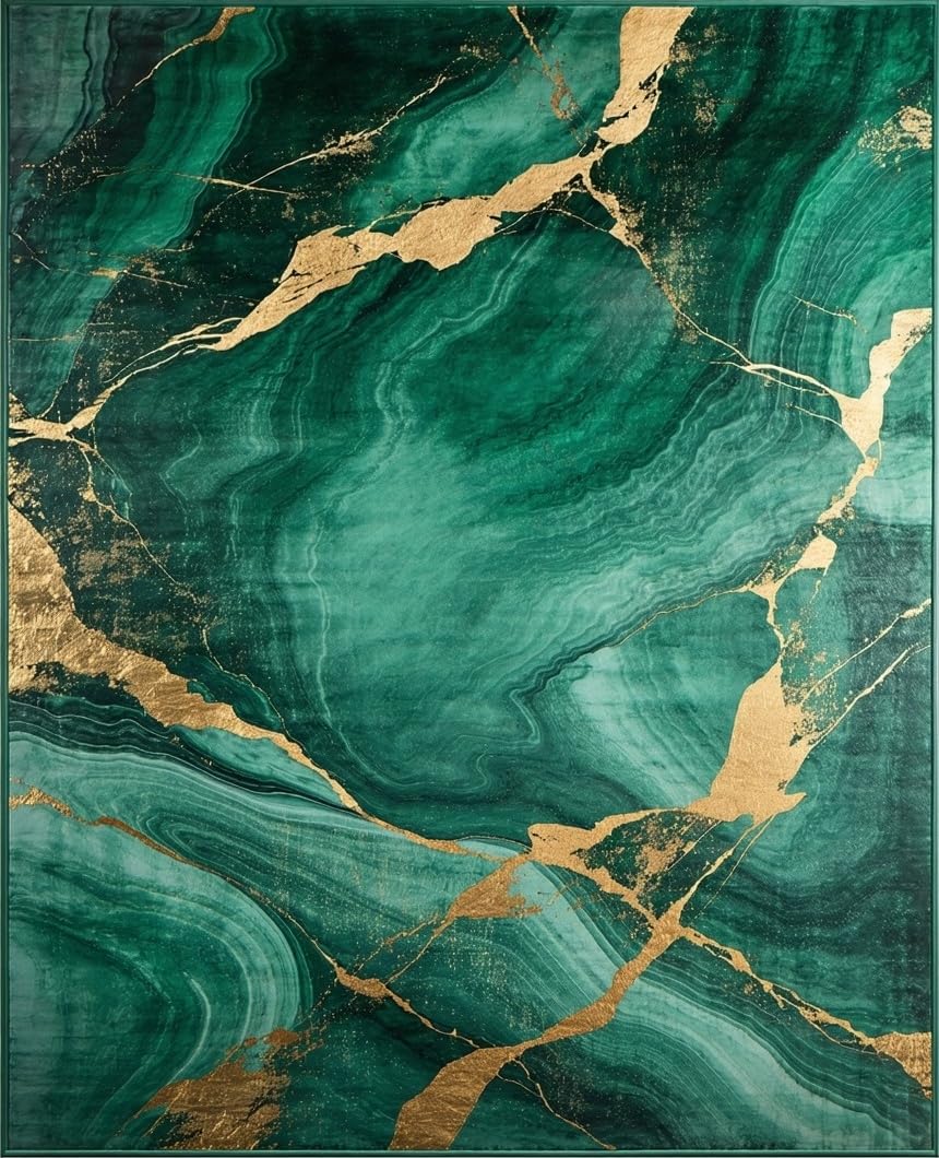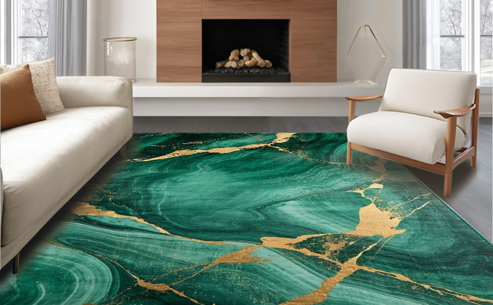 Ultra Soft Area Rug, Non Slip, Stain Resistant, Washable Area Rugs for Living Room, Bedroom, Timeless Green and Gold Elegance(Green) Overview: