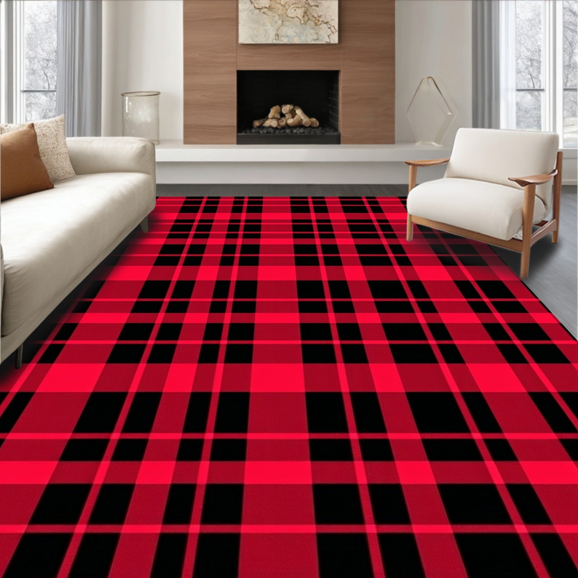 Ultra Soft Area Rug, Non Slip, Stain Resistant, Washable Area Rugs for Living Room, Bedroom, Timeless Highlander Plaid with Bold Festive Checks(Red) Overview: