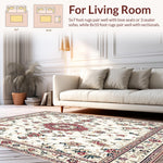 Ultra Soft Area Rug, Non Slip, Stain Resistant, Washable Area Rugs for Living Room, Bedroom, Timeless Oriental Area Classic Beige Floral Medallion(Beige) Overview: