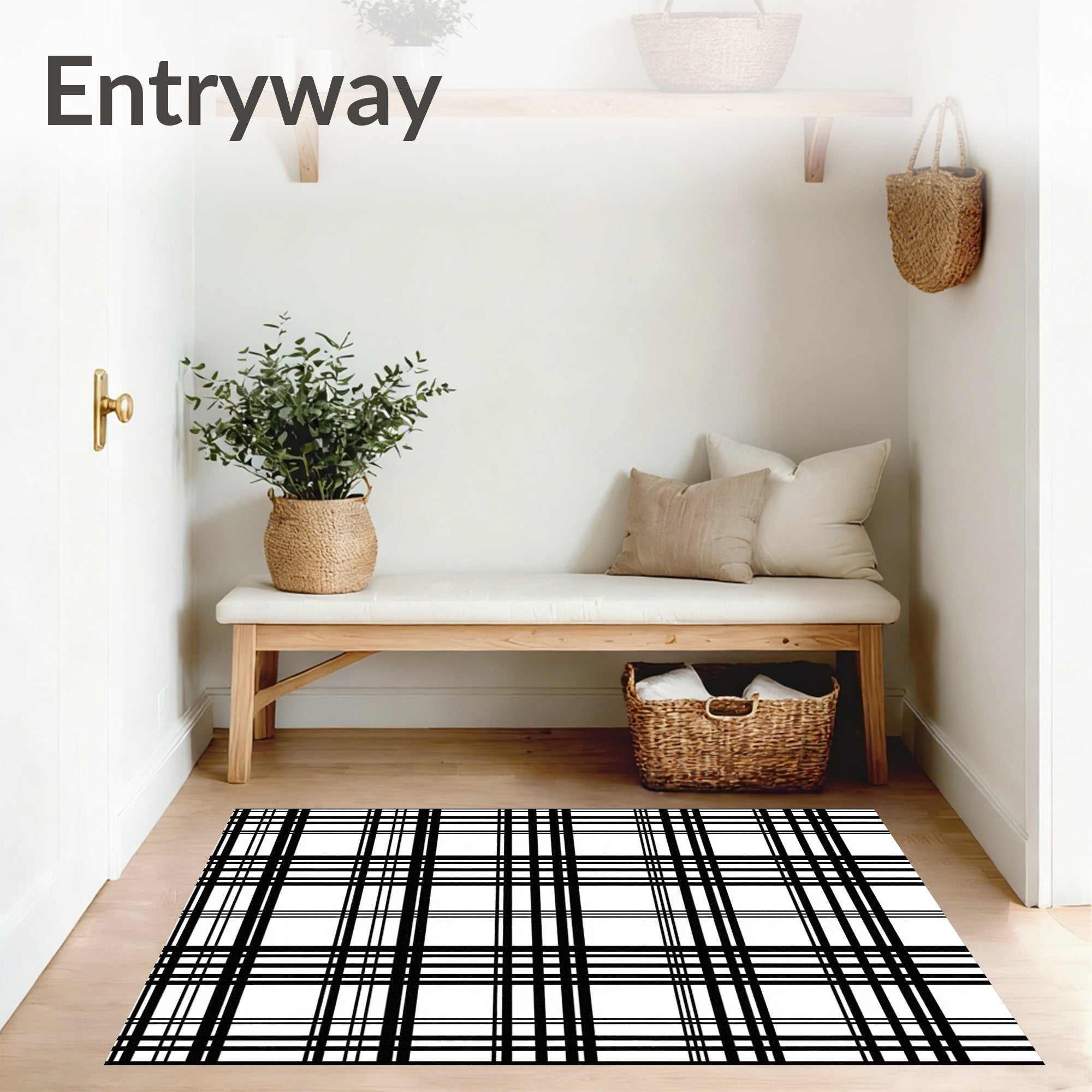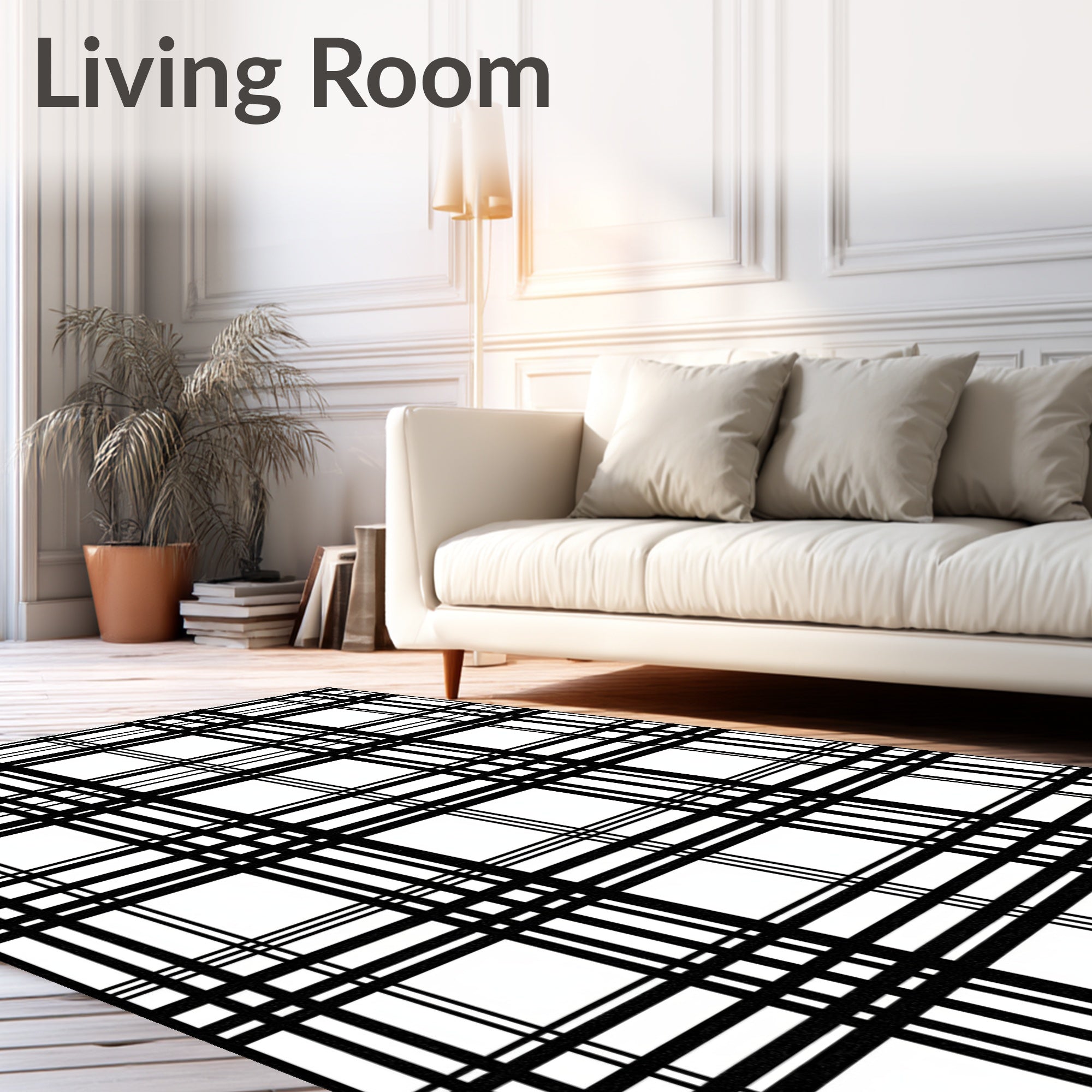 Flatwoven High Traffic Area Rug, Timeless Plaid Design with Striking Bands and Checkerboard, Non Slip, Stain Resistant, Washable Area Rugs for Living Room, Bedroom (Black) Overview: