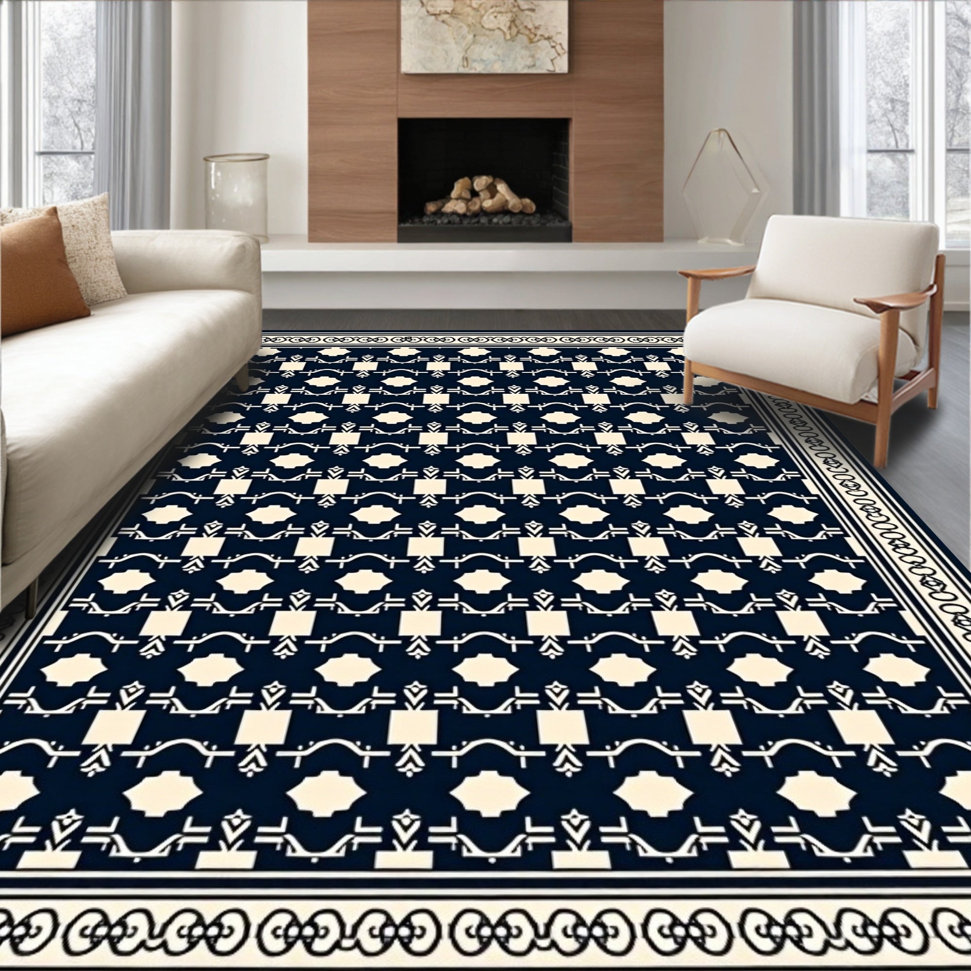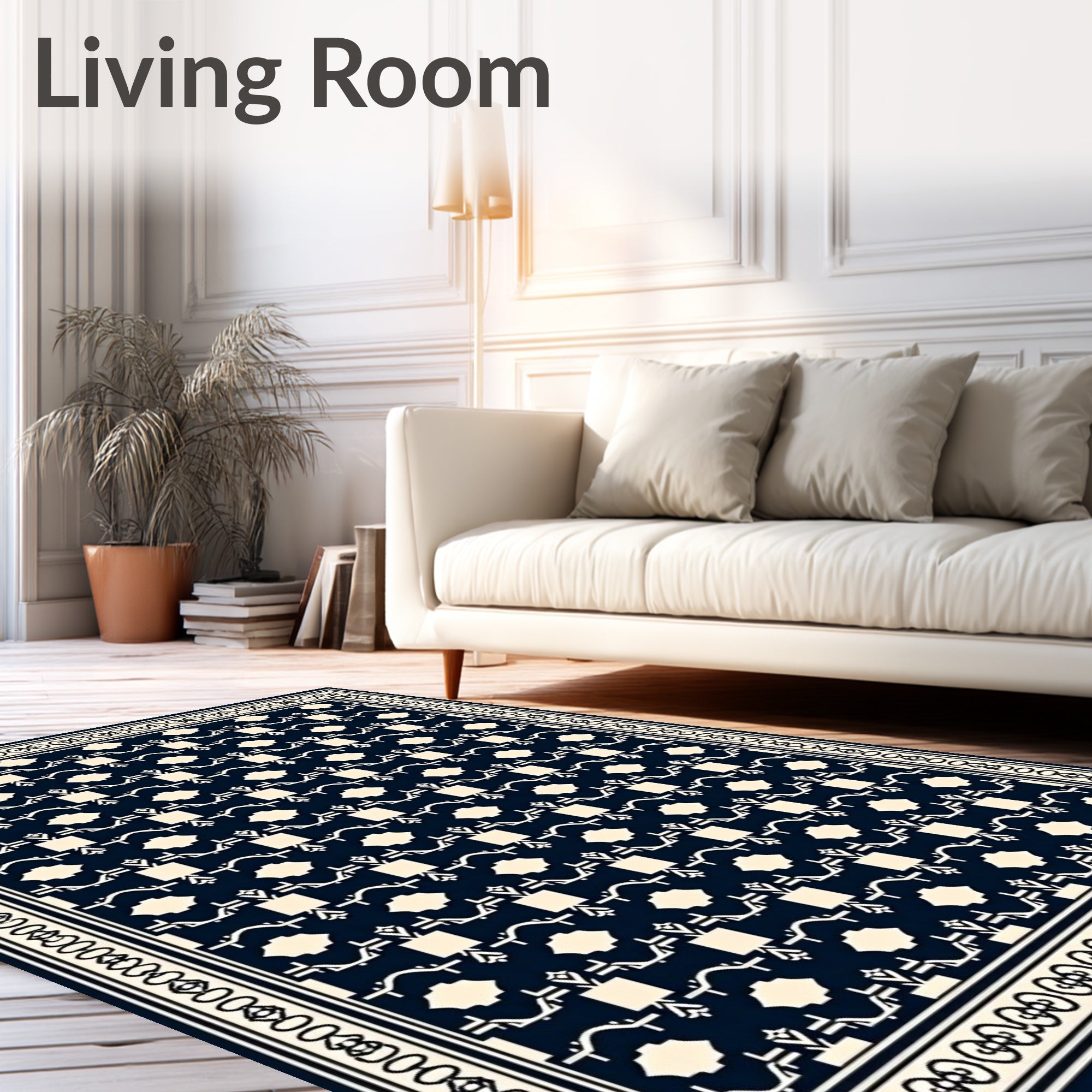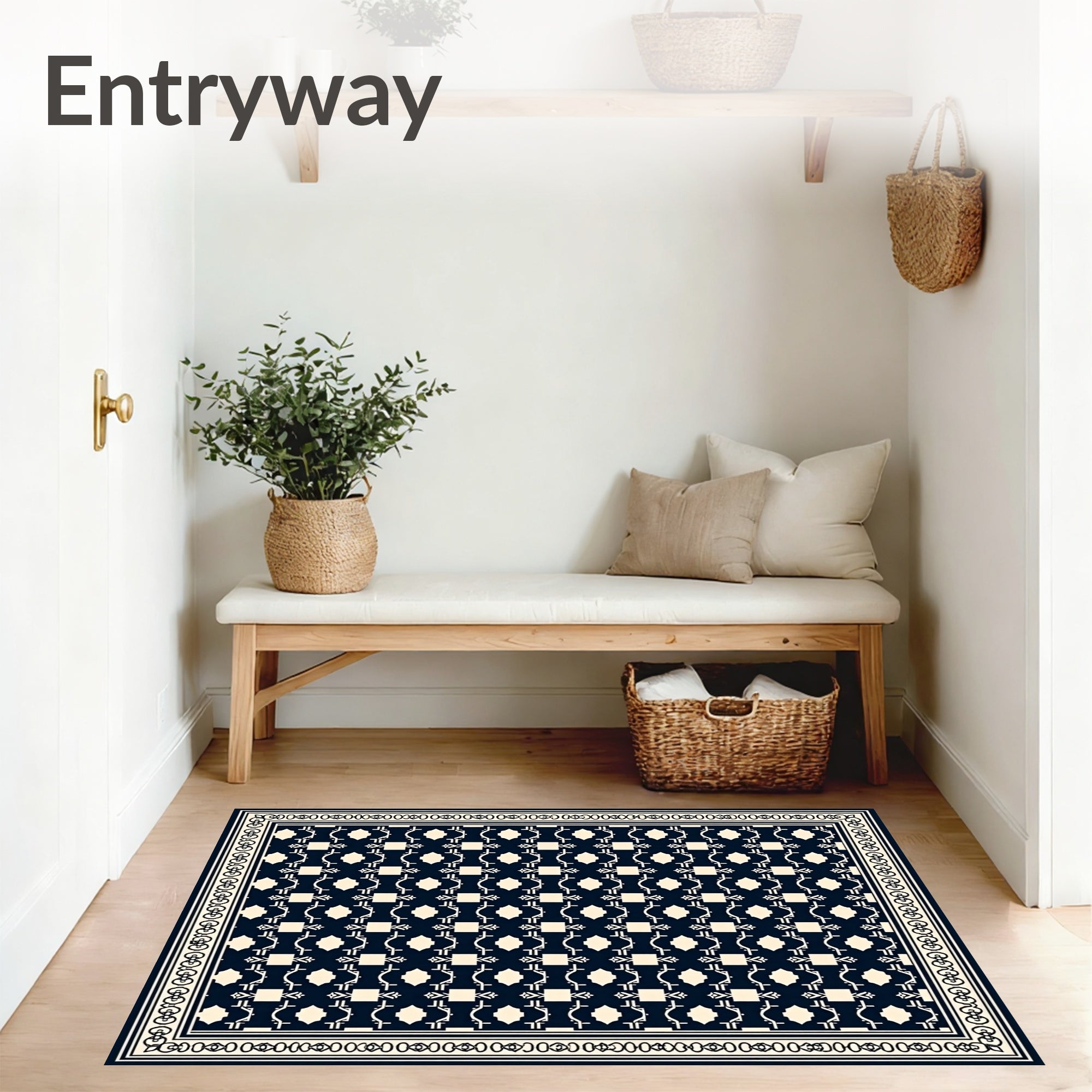 Ultra Soft Area Rug, Non Slip, Stain Resistant, Washable Area Rugs for Living Room, Bedroom, Timeless Symmetrical Interlocking Decorative Artisan(Black) Overview: