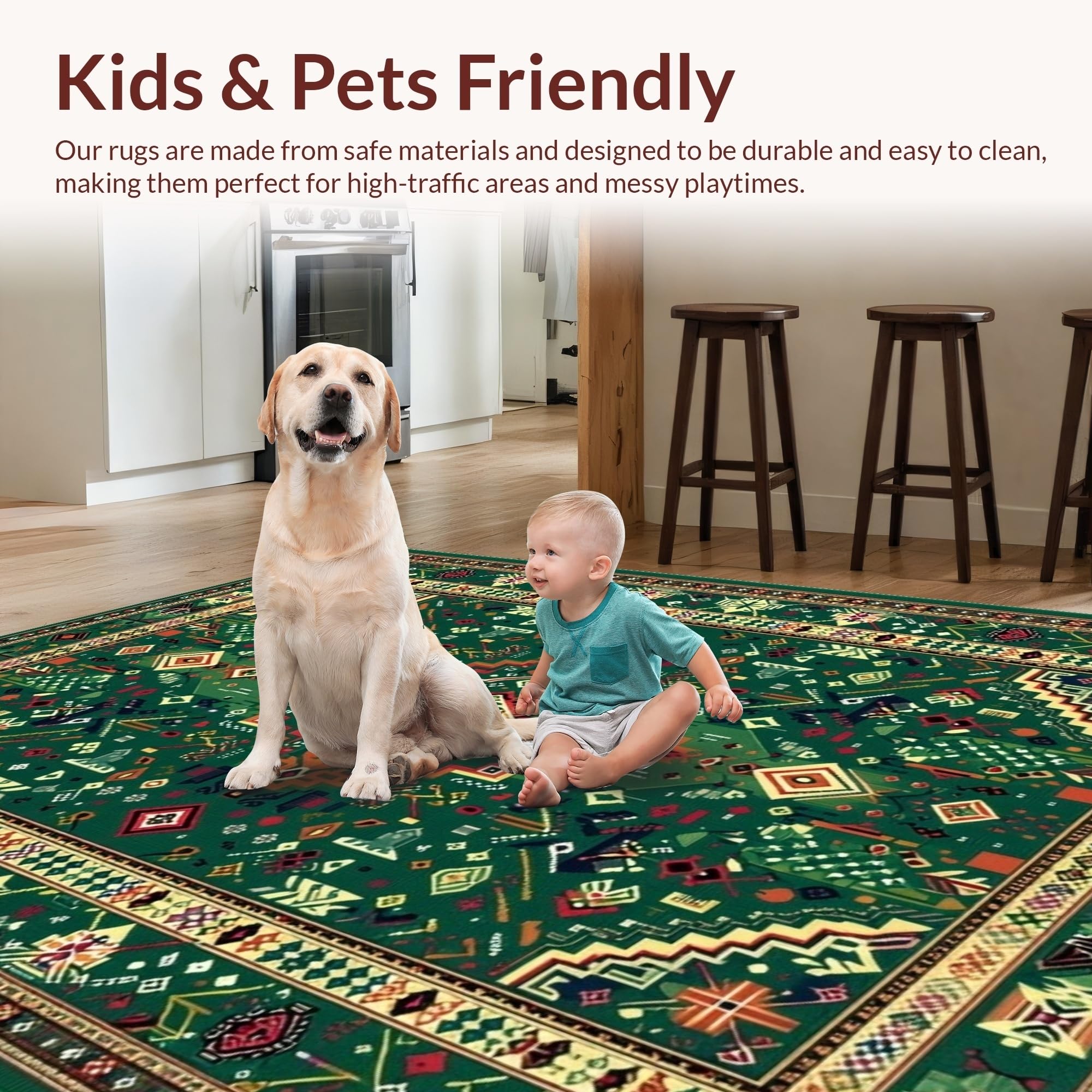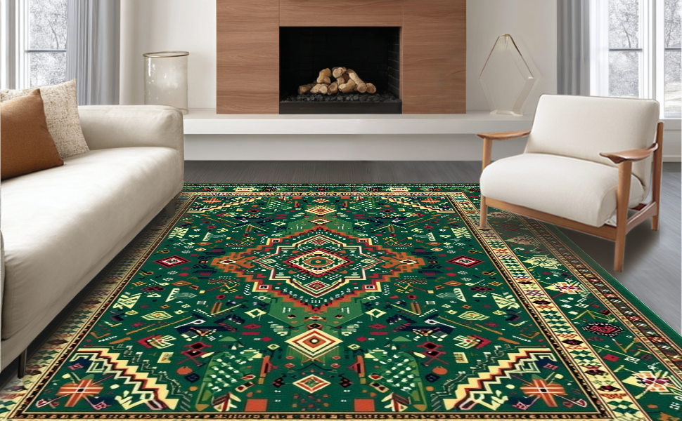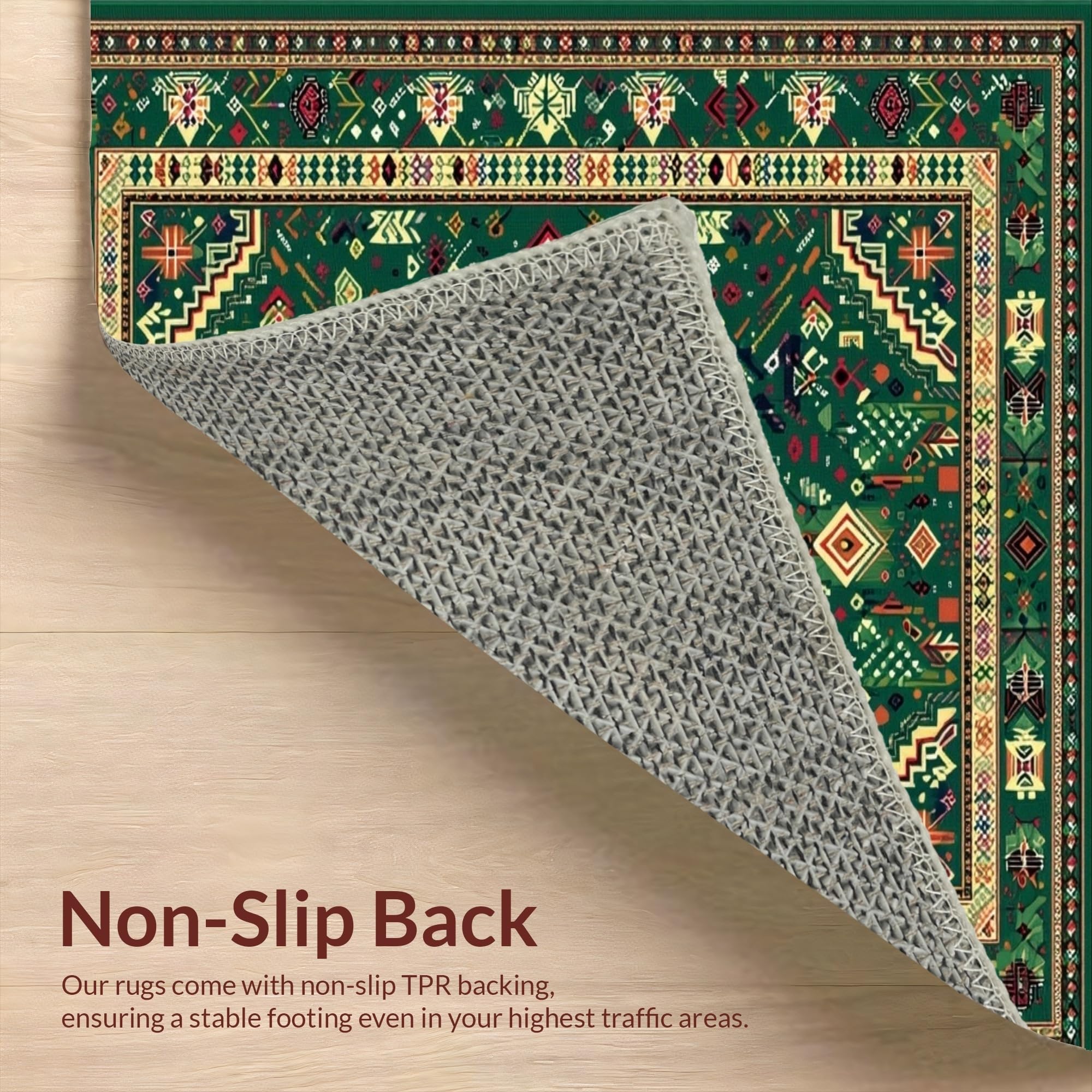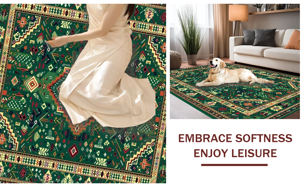 Ultra Soft Area Rug, Non Slip, Stain Resistant, Washable Area Rugs for Living Room, Bedroom, Timeless Vintage Floral Embellishments(Green) Overview: