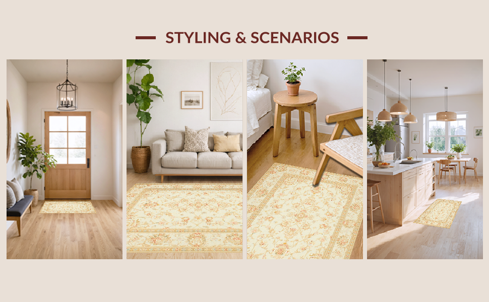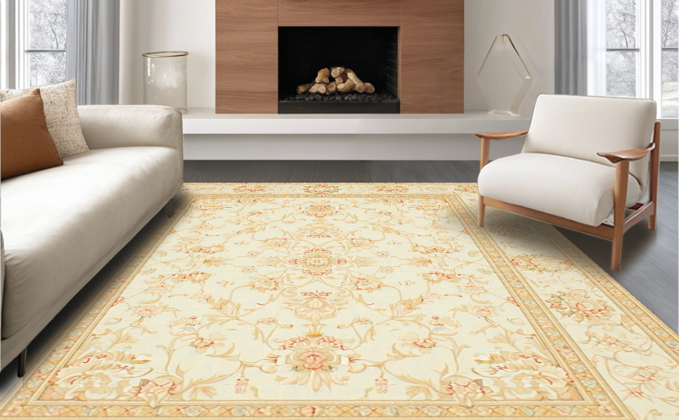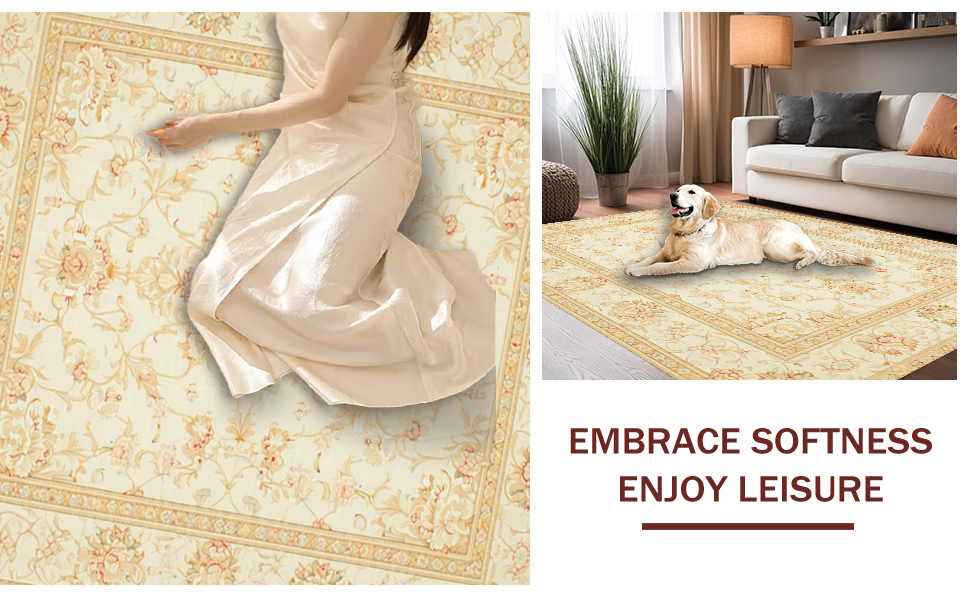 Ultra Soft Area Rug, Non Slip, Stain Resistant, Washable Area Rugs for Living Room, Bedroom, Timeless Vintage Lace Inspiration(Beige) Overview: