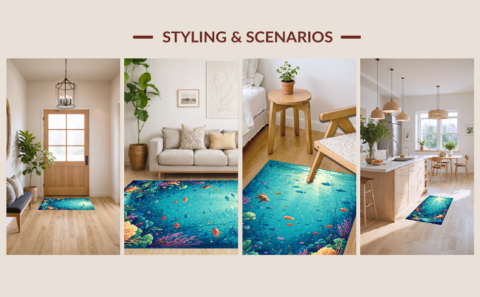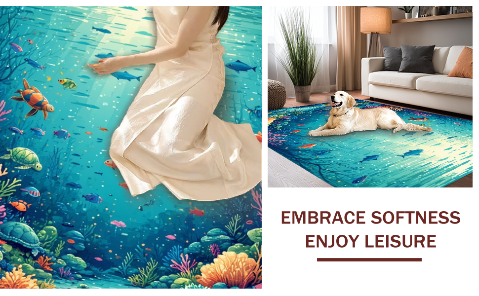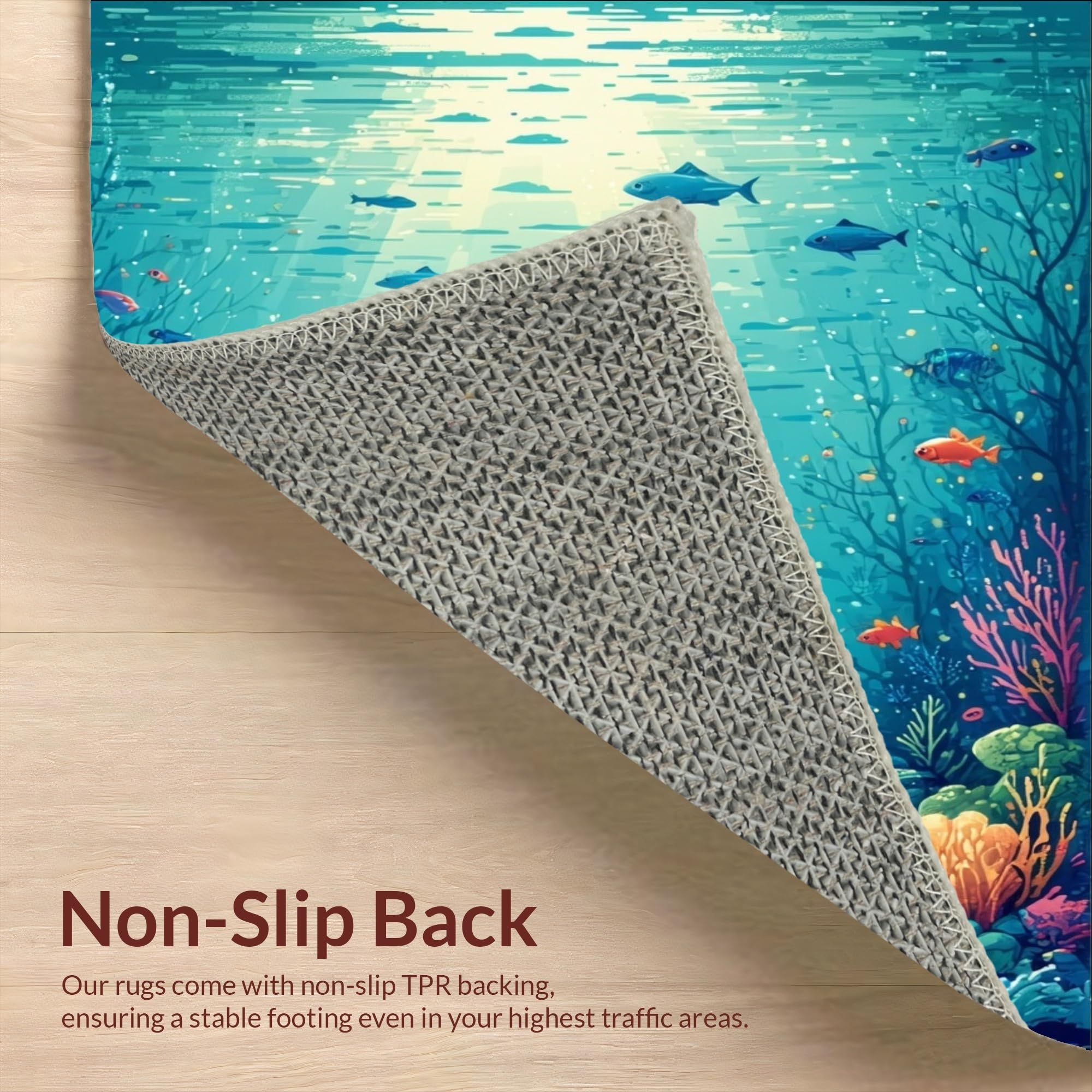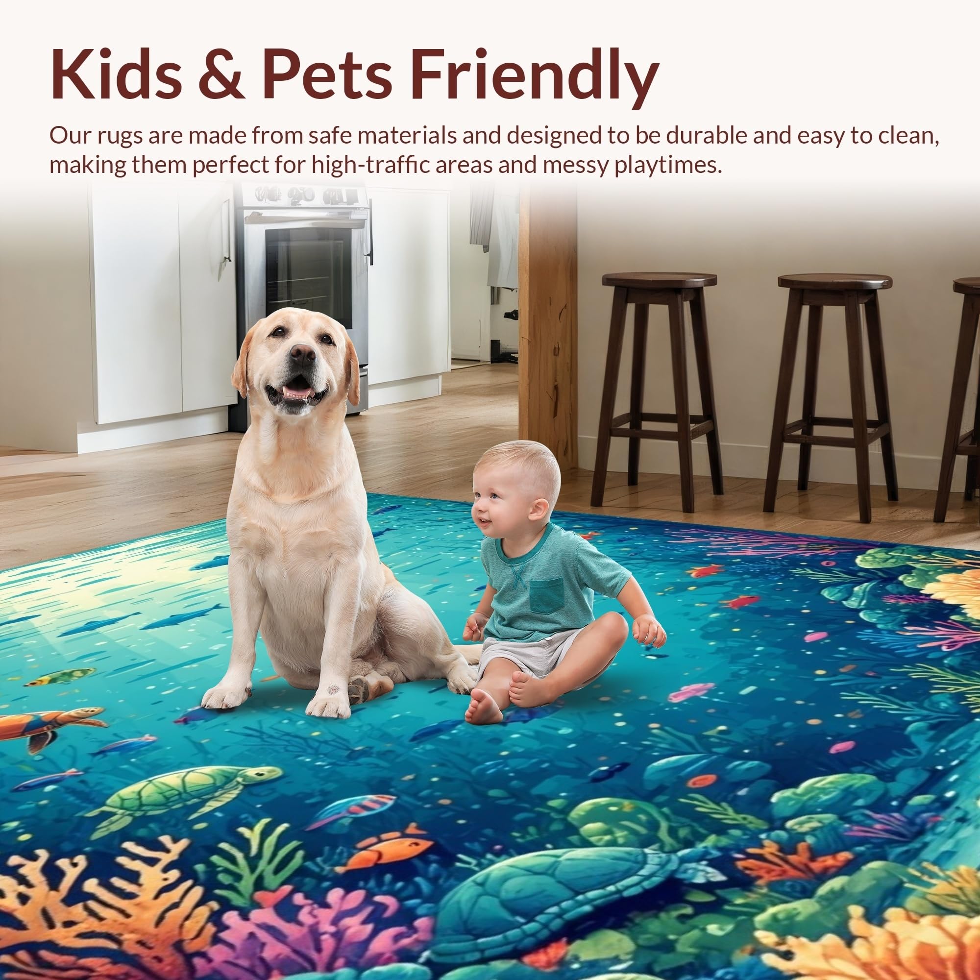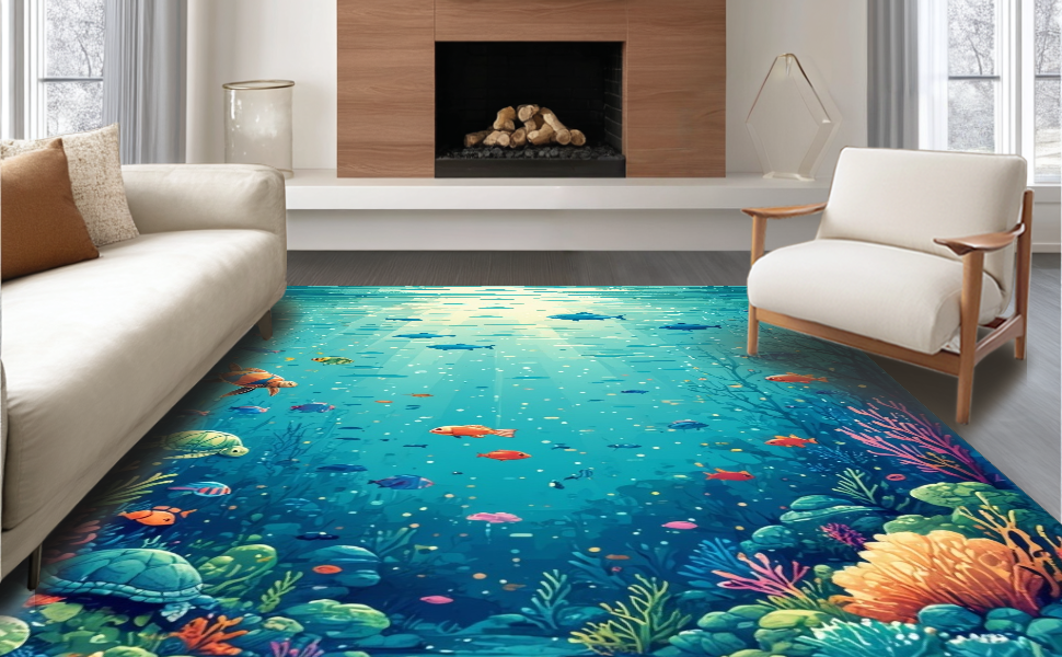Ultra Soft Area Rug, Non Slip, Stain Resistant, Washable Area Rugs for Living Room, Bedroom, Toddler Alphabet Shape Ocean Animal Classroom Floor Mat Area Rug(Blue) Overview: