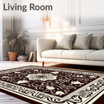 Ultra Soft Area Rug, Non Slip, Stain Resistant, Washable Area Rugs for Living Room, Bedroom, Traditional Coffeehouse Damask with Intricate Brewing Vessel Motifs(Brown) Overview: