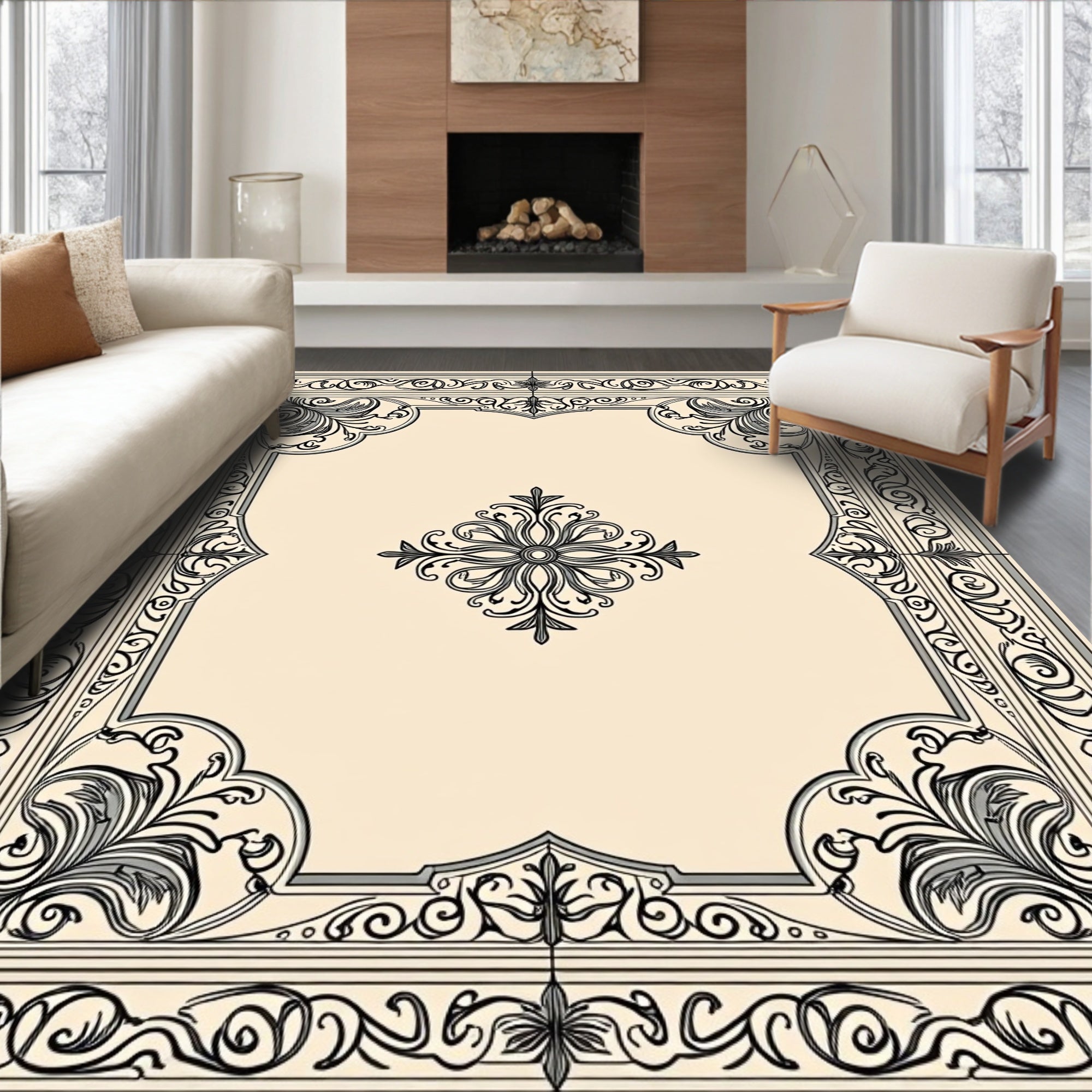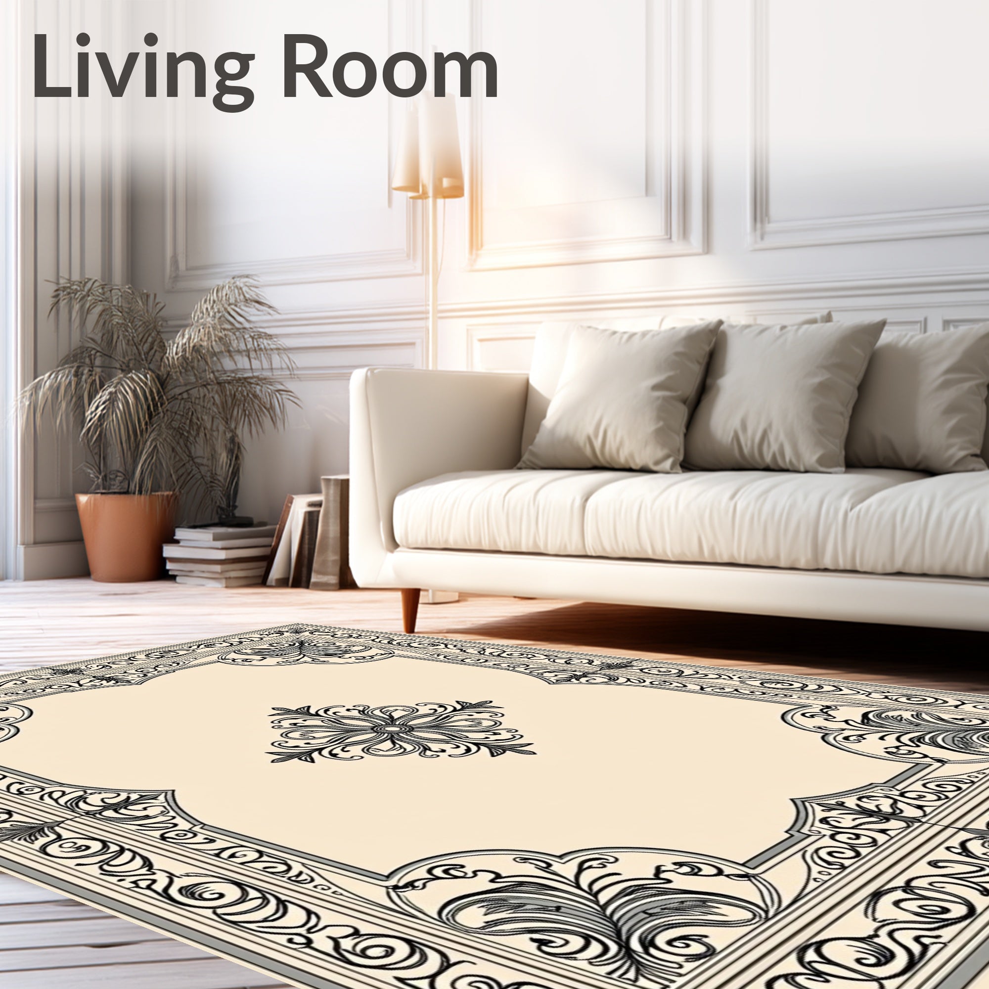 Ultra Soft Area Rug, Non Slip, Stain Resistant, Washable Area Rugs for Living Room, Bedroom, Traditional Damask Scrollwork Ornate Luxurious(Beige) Overview: