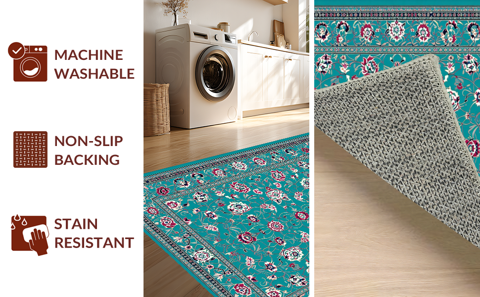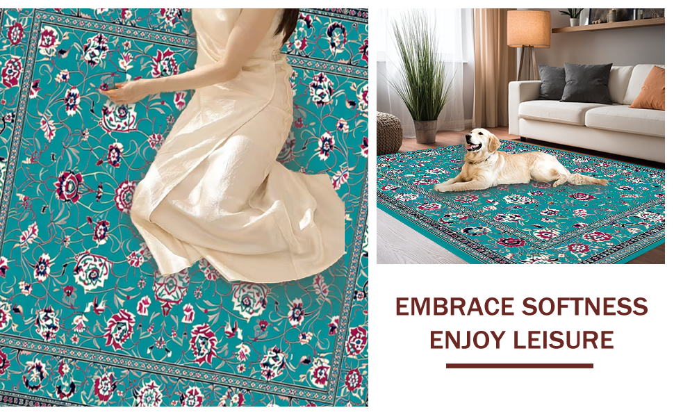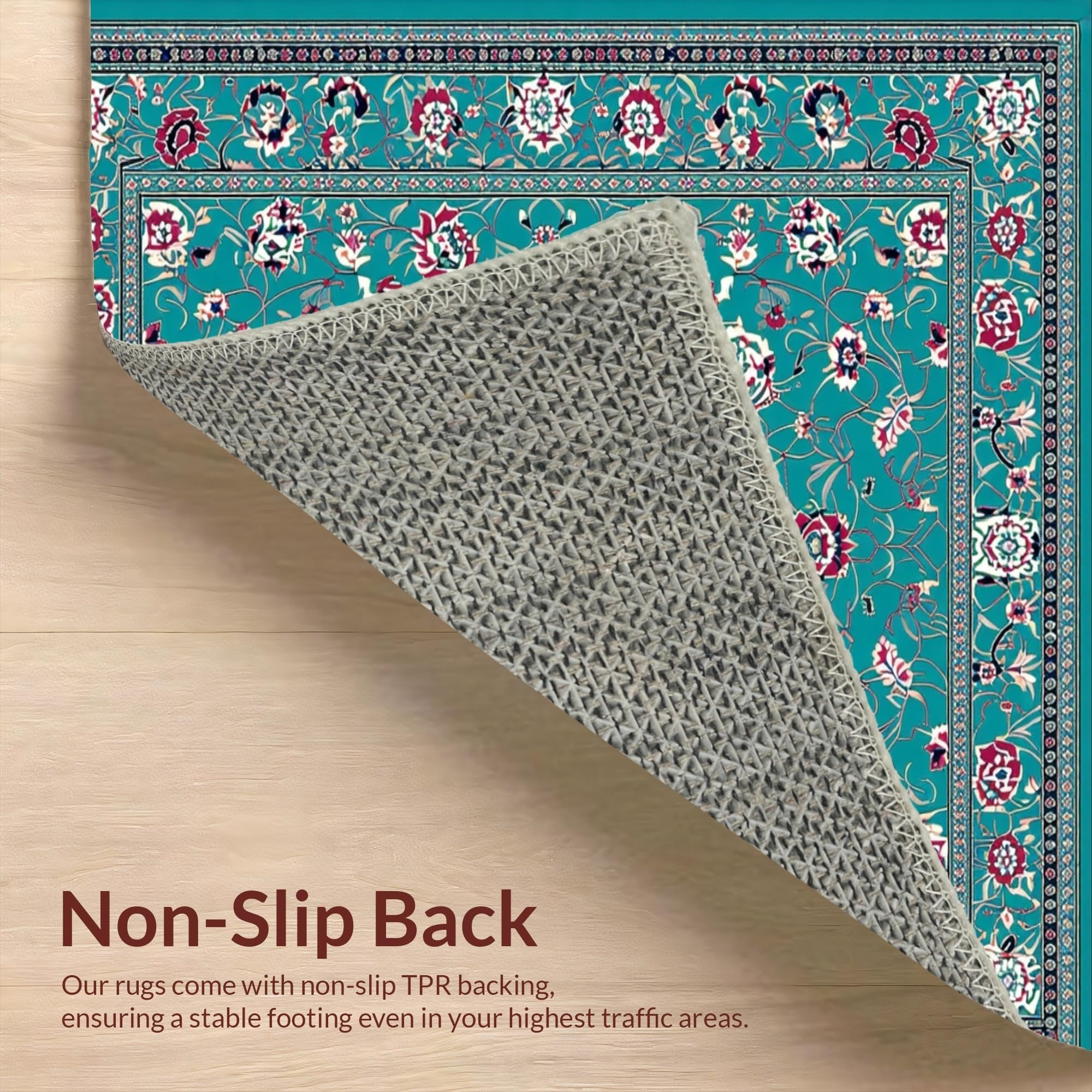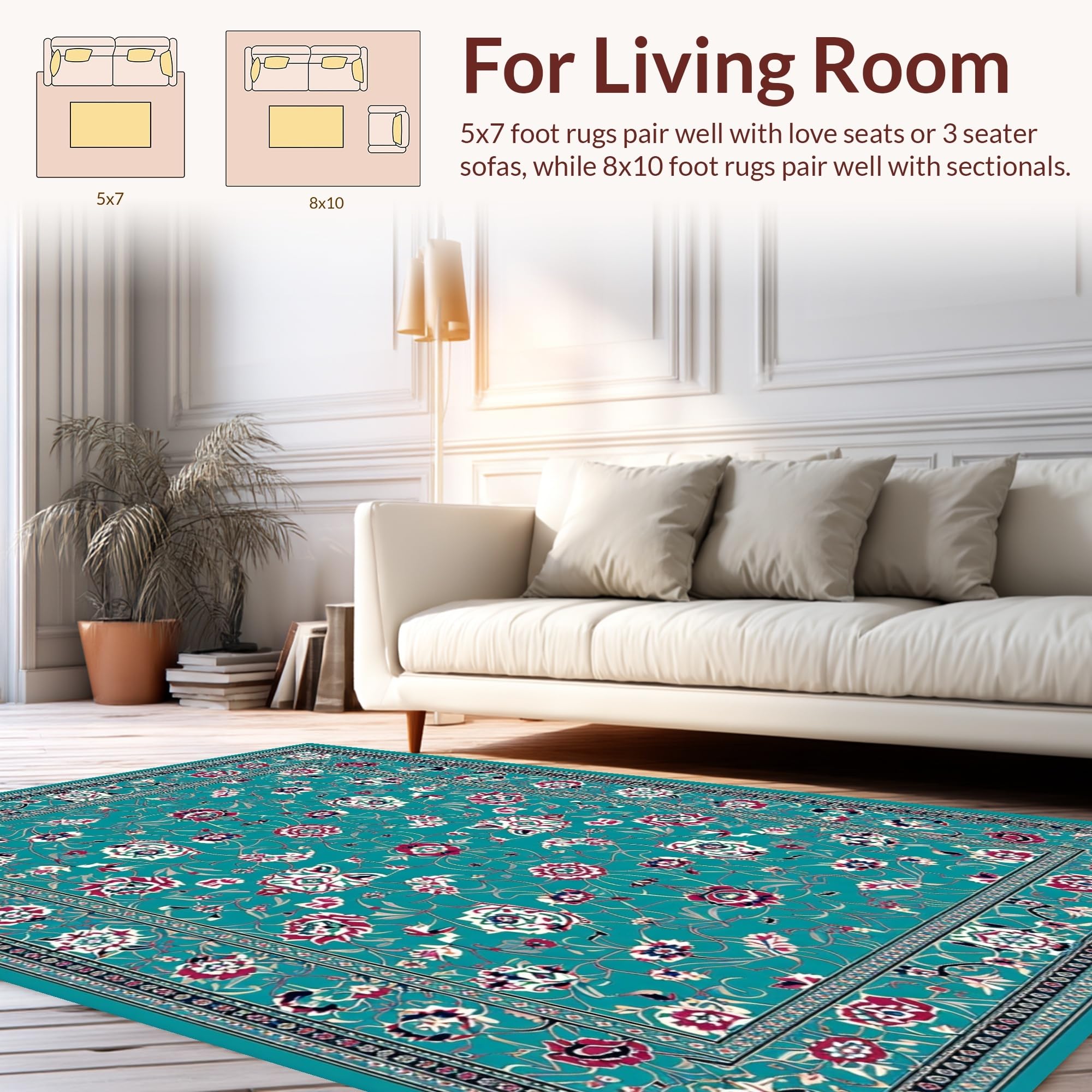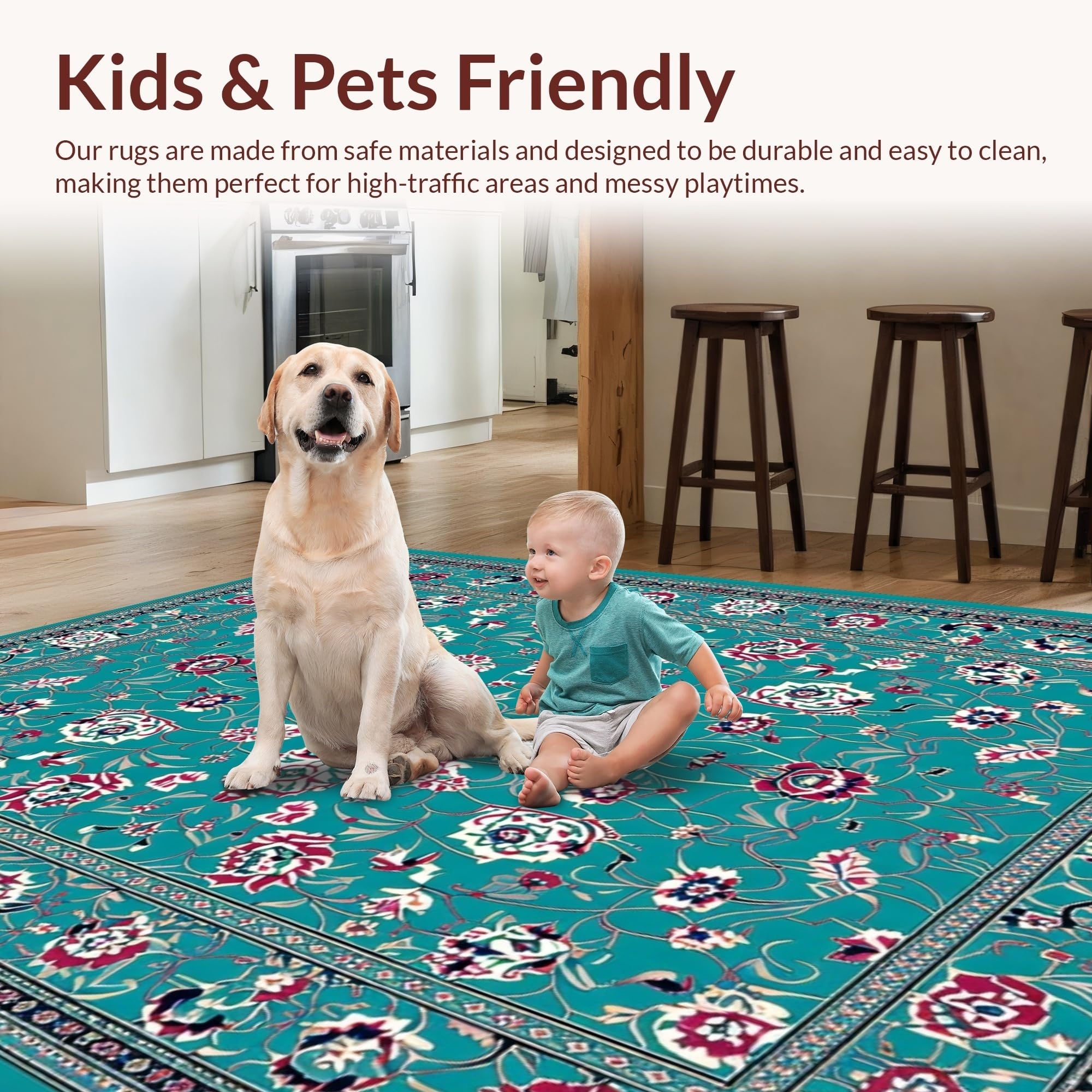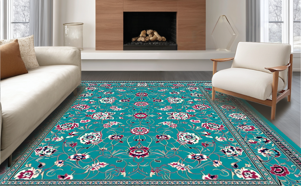 Ultra Soft Area Rug, Non Slip, Stain Resistant, Washable Area Rugs for Living Room, Bedroom, Traditional Ethnic Teal Medallion(Green) Overview: