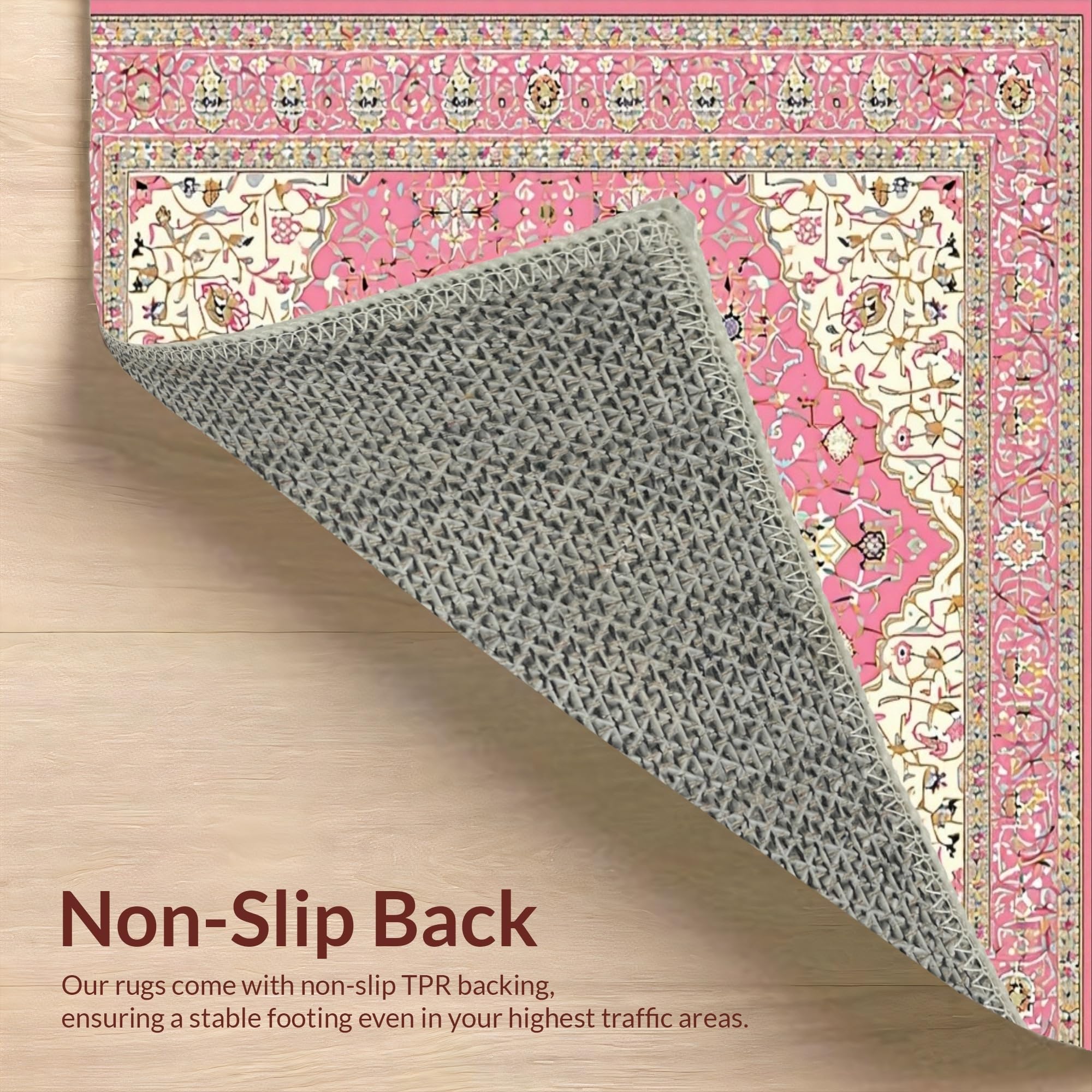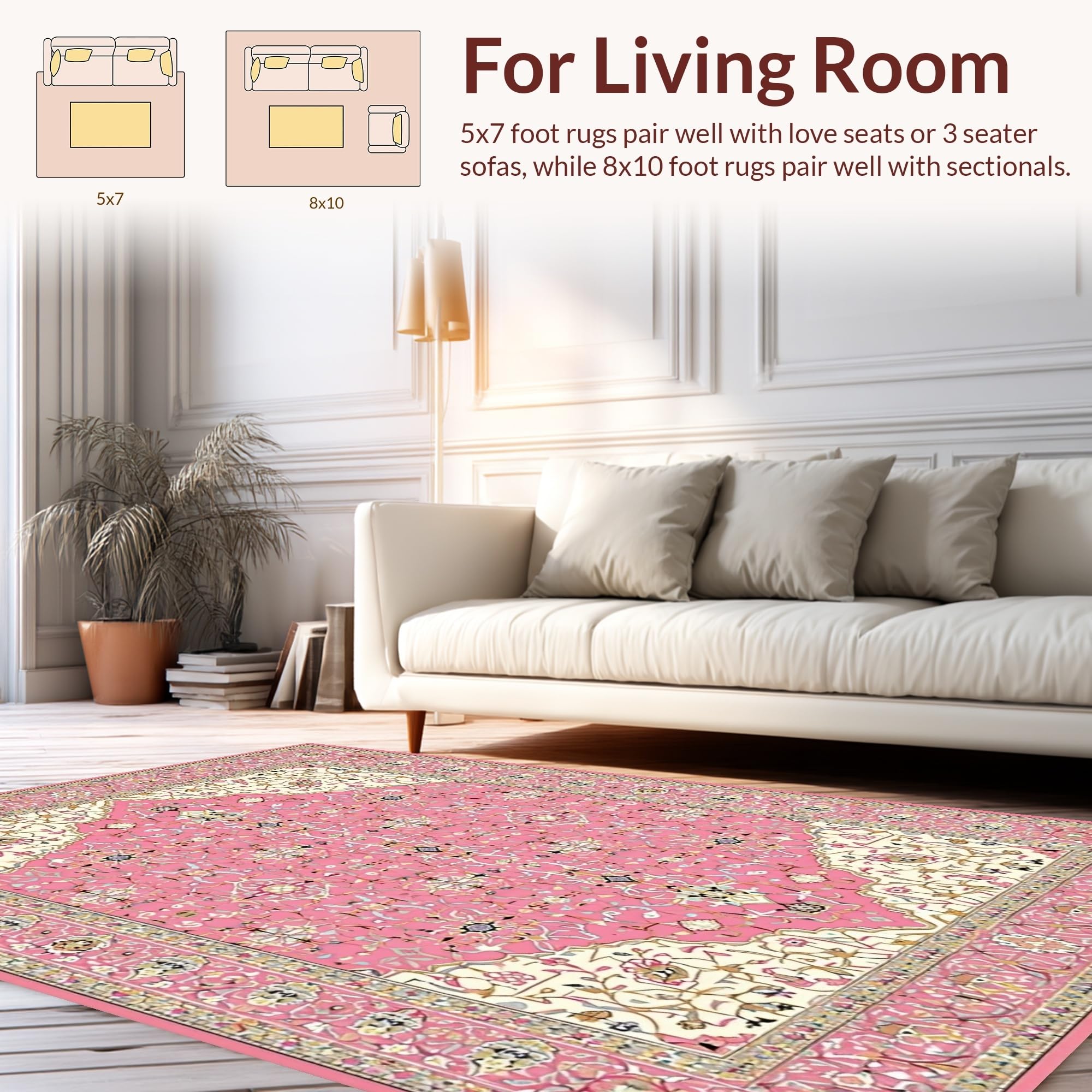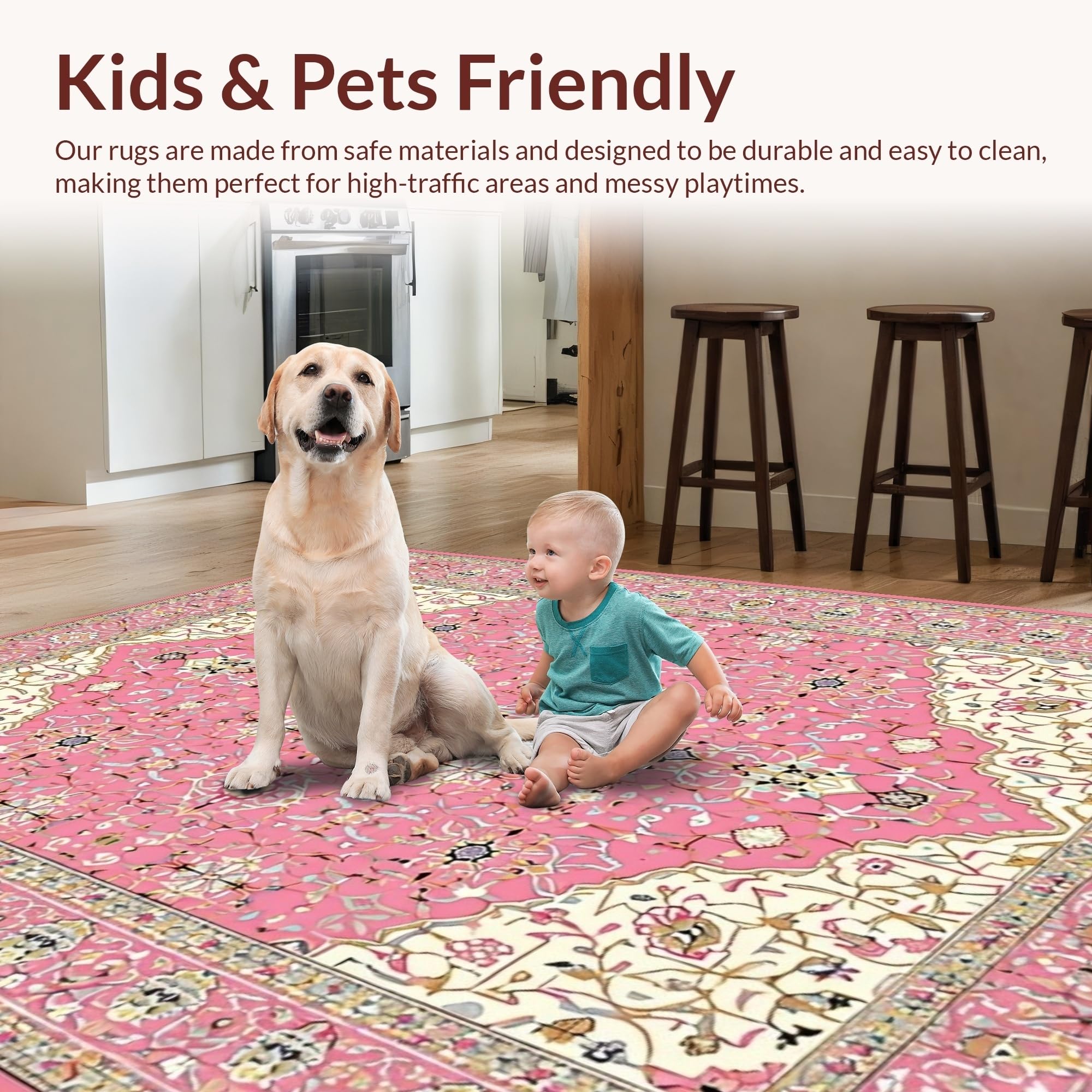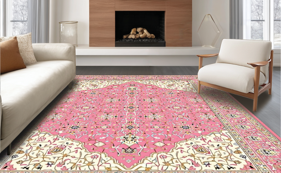 Ultra Soft Area Rug, Non Slip, Stain Resistant, Washable Area Rugs for Living Room, Bedroom, Traditional Floral Pink Elegance(Pink) Overview: