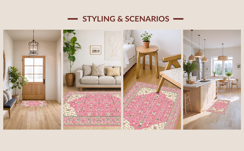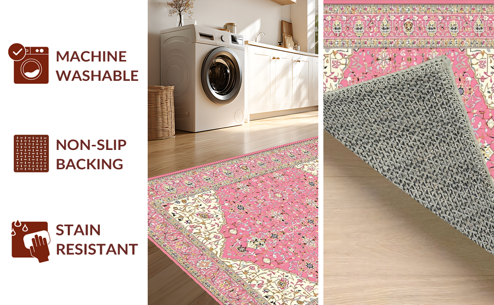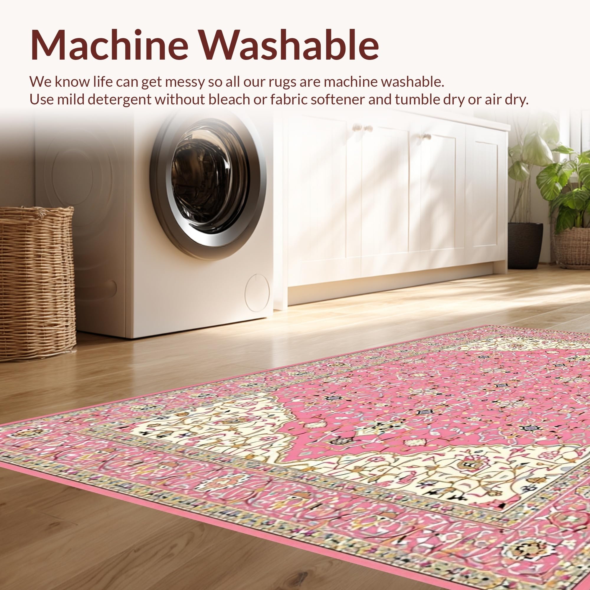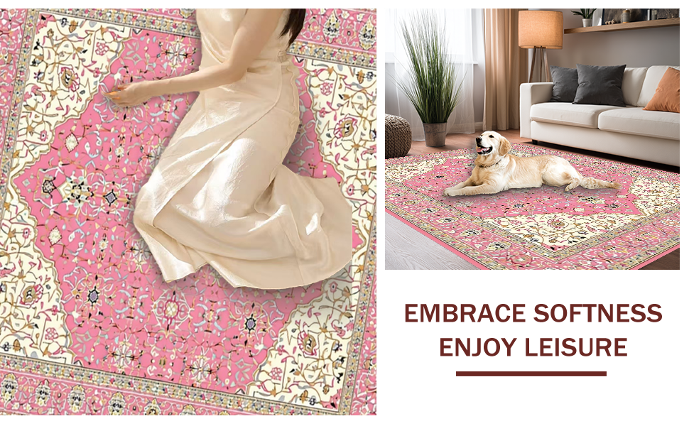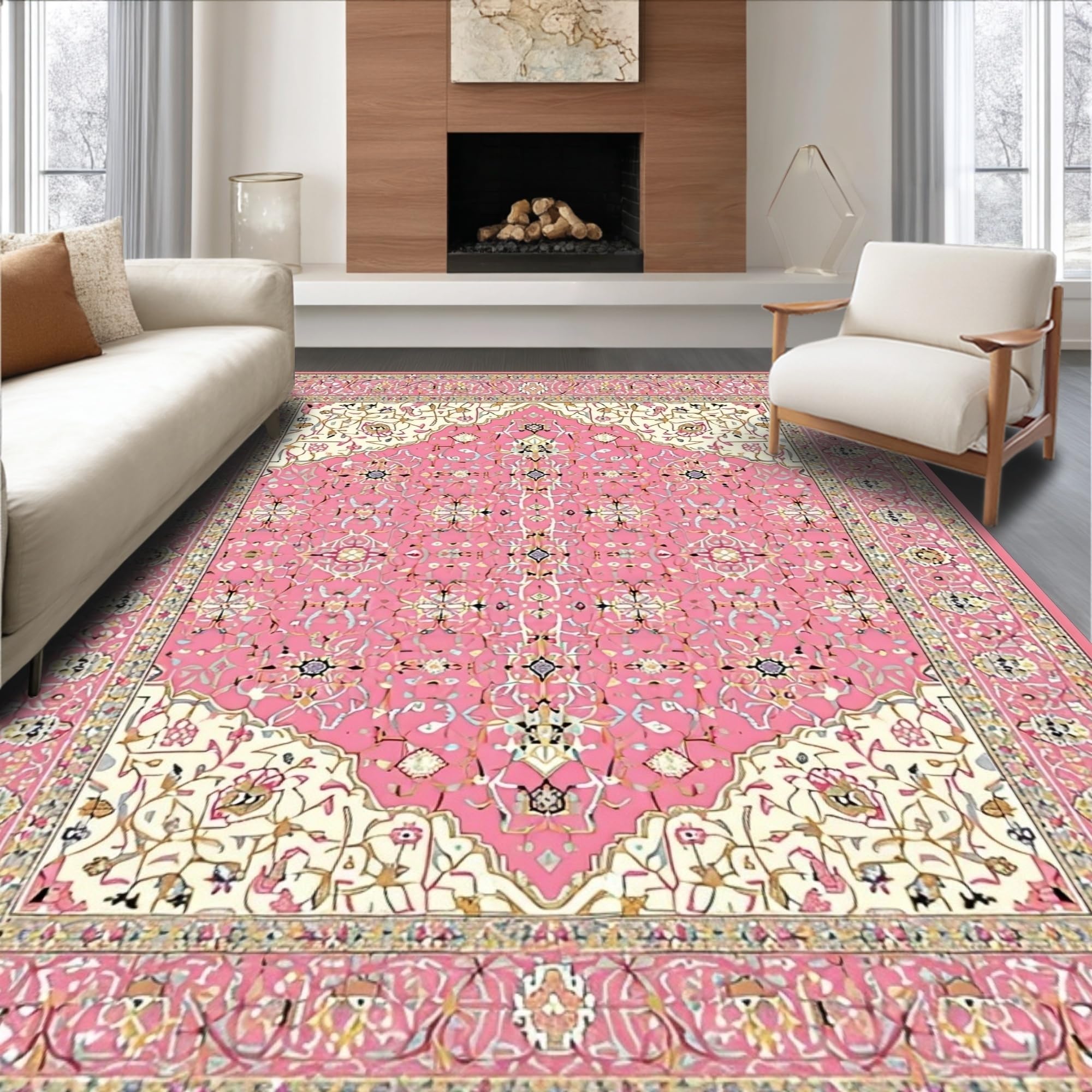 Ultra Soft Area Rug, Non Slip, Stain Resistant, Washable Area Rugs for Living Room, Bedroom, Traditional Floral Pink Elegance(Pink) Overview: