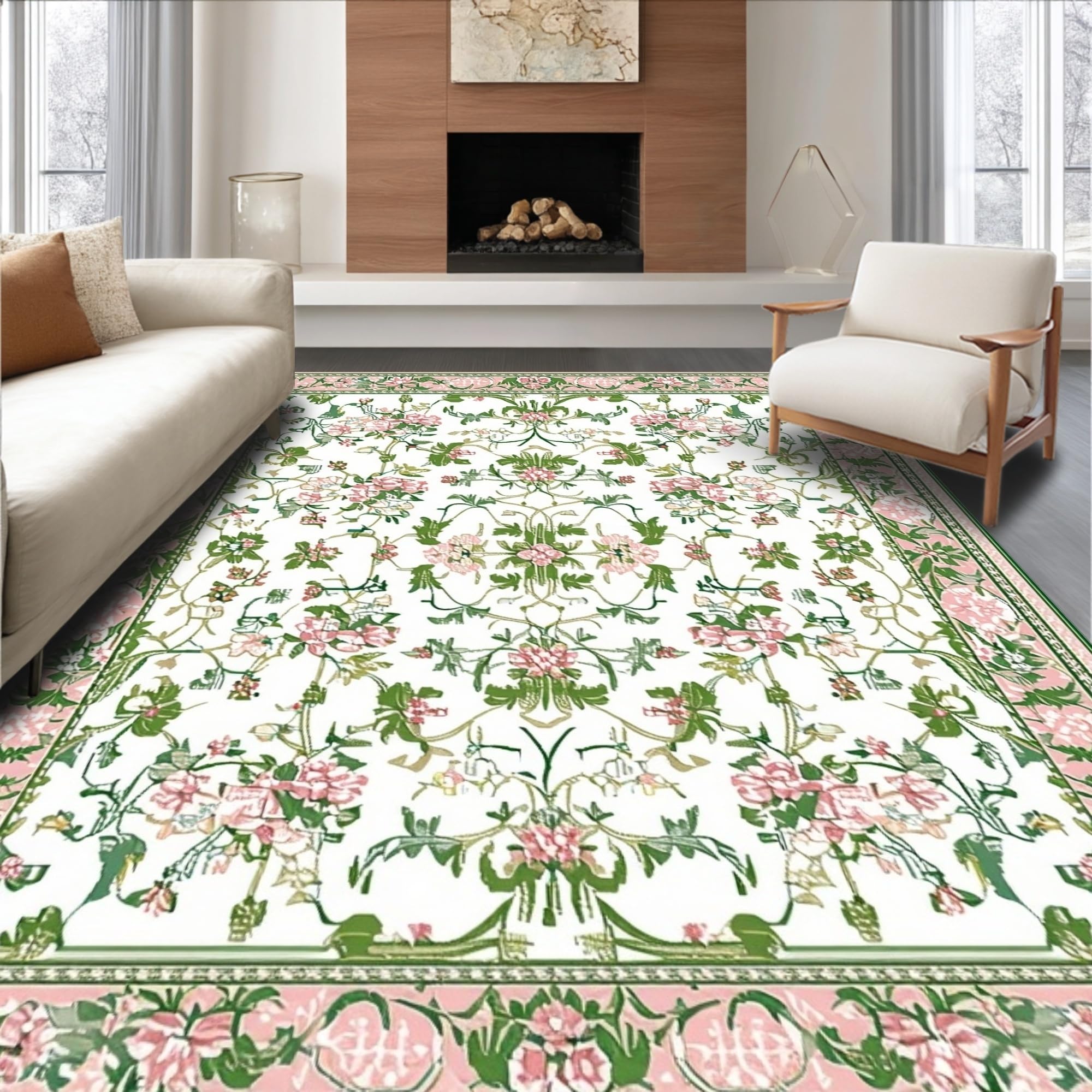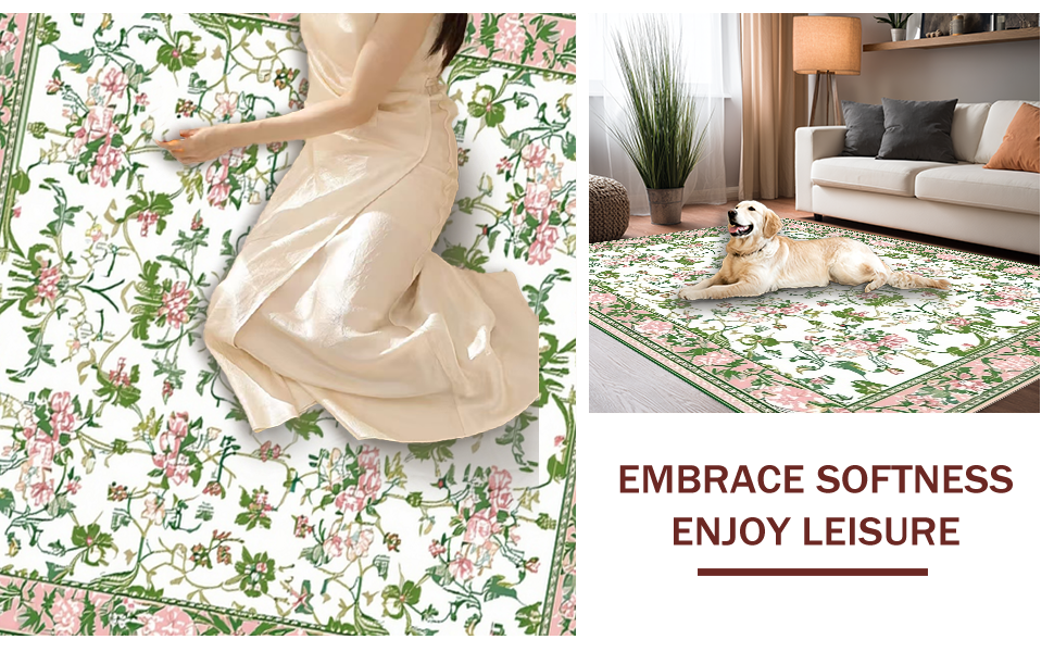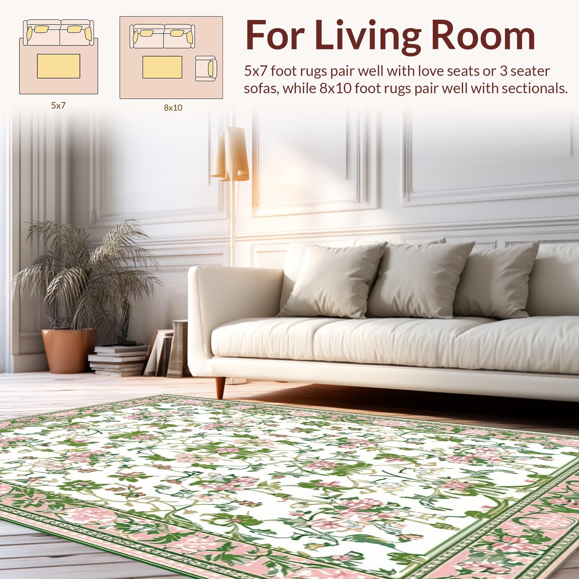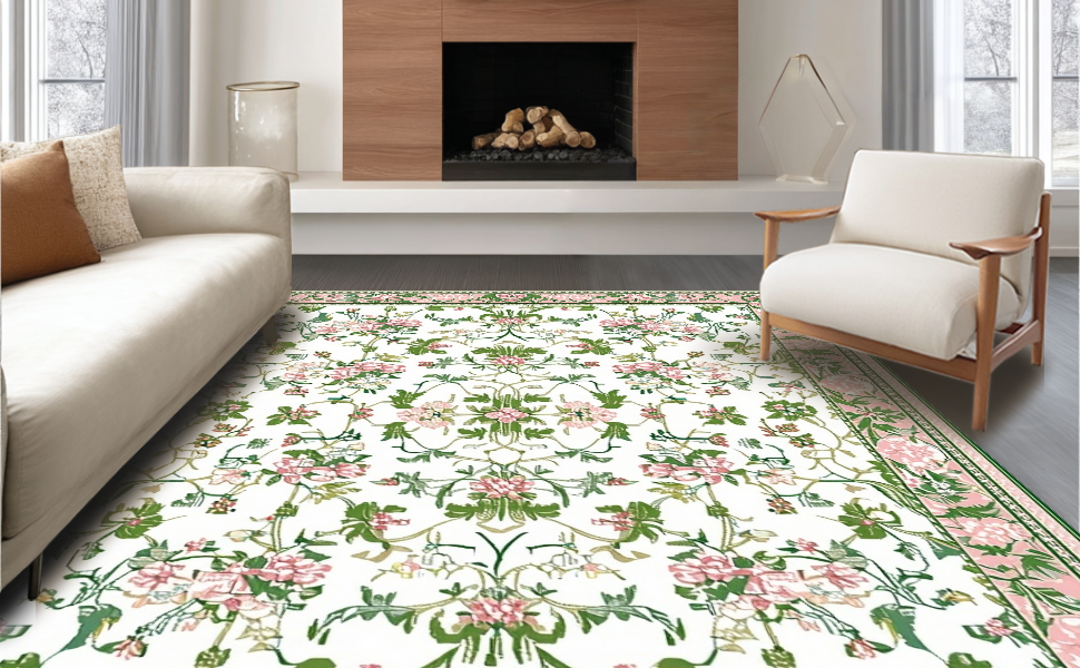 Ultra Soft Area Rug, Non Slip, Stain Resistant, Washable Area Rugs for Living Room, Bedroom, Traditional Herbaceous Pattern Play(White) Overview: