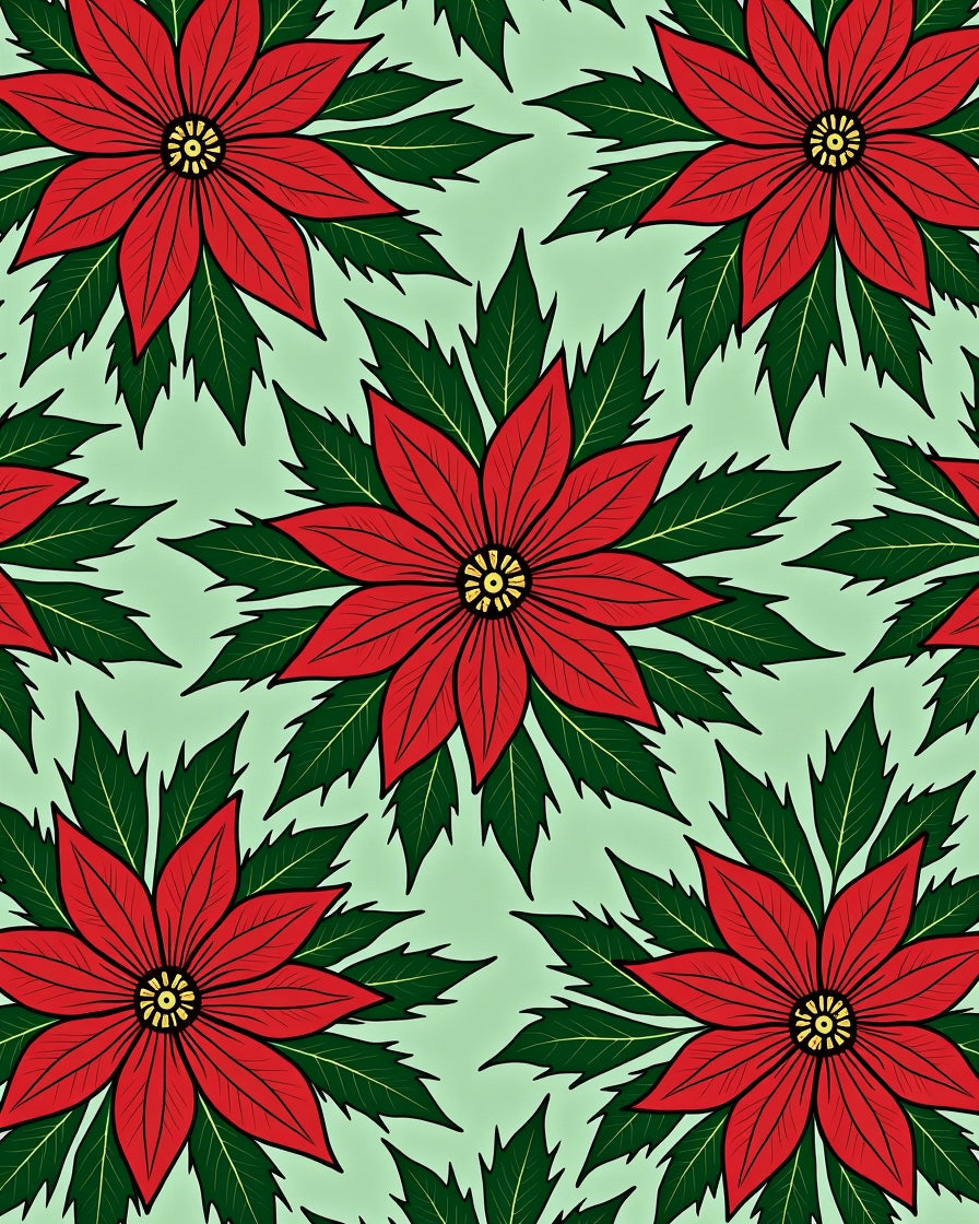 Traditional Holiday Poinsettia Bloom Design with Seasonal Florals(Red)