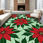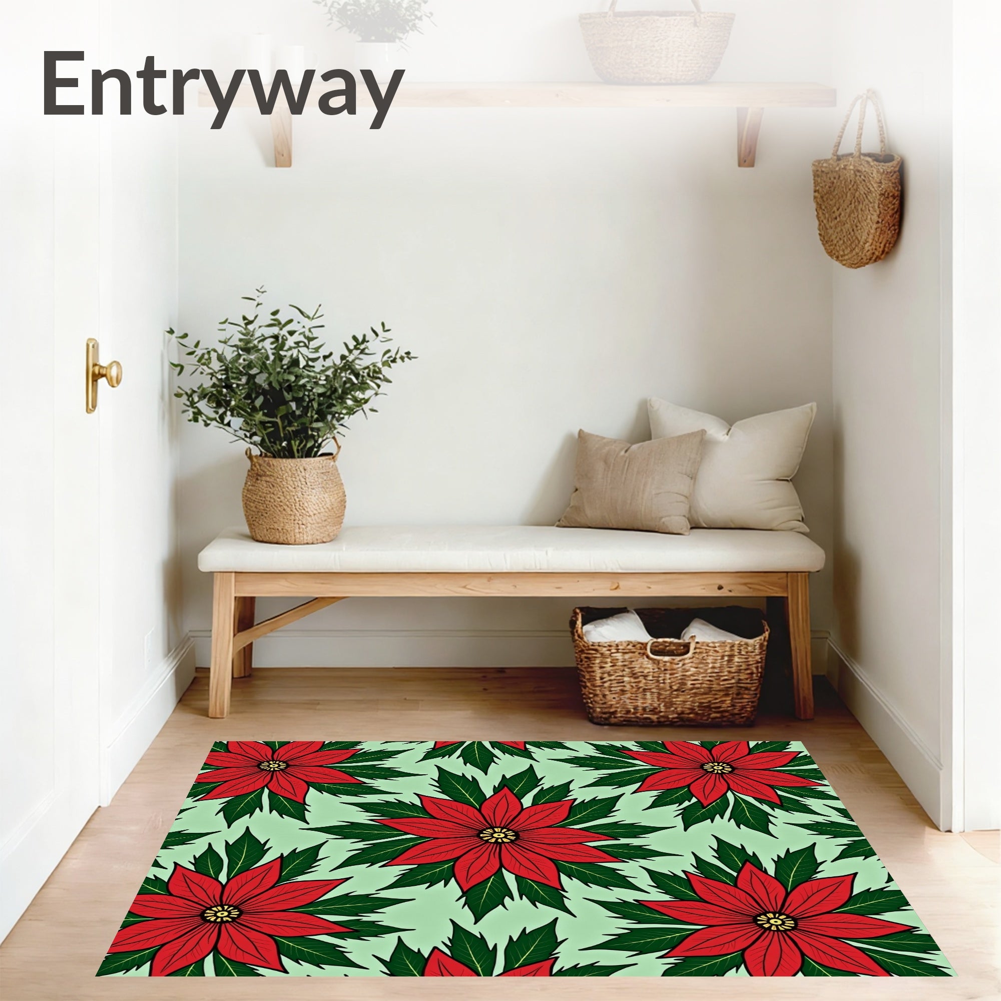 Ultra Soft Area Rug, Non Slip, Stain Resistant, Washable Area Rugs for Living Room, Bedroom, Traditional Holiday Poinsettia Bloom Design with Seasonal Florals(Red) Overview: