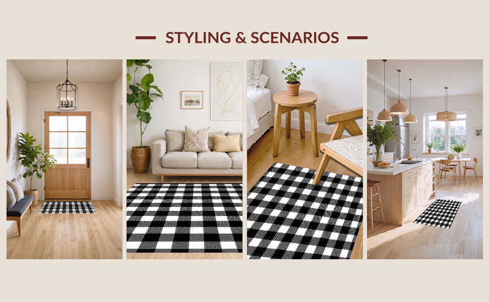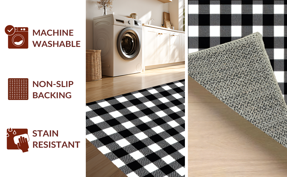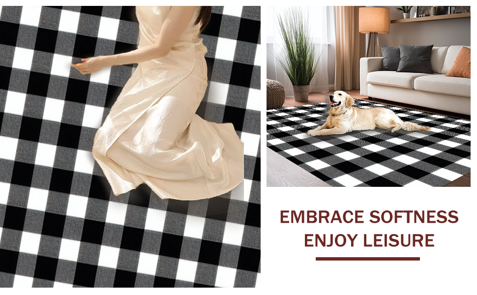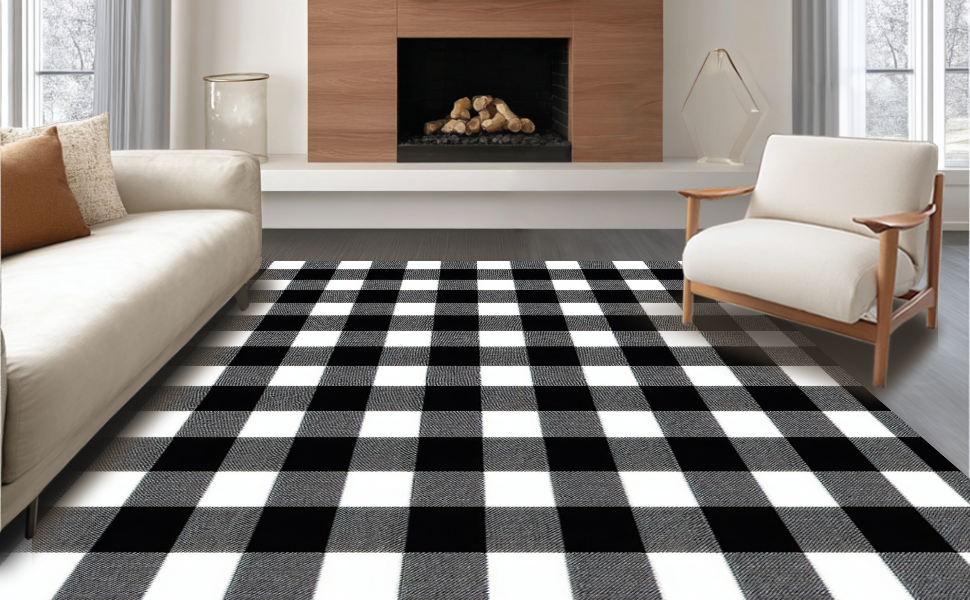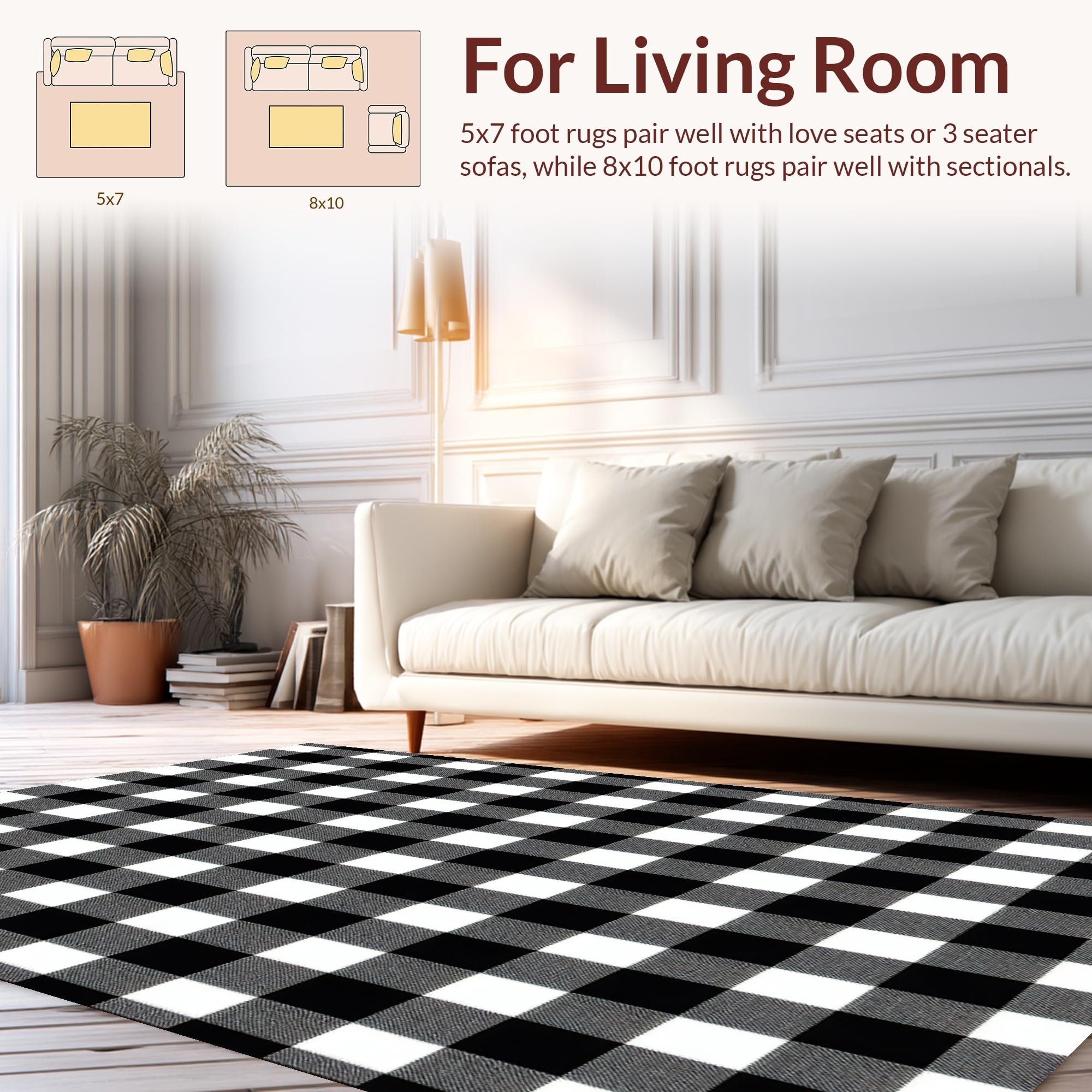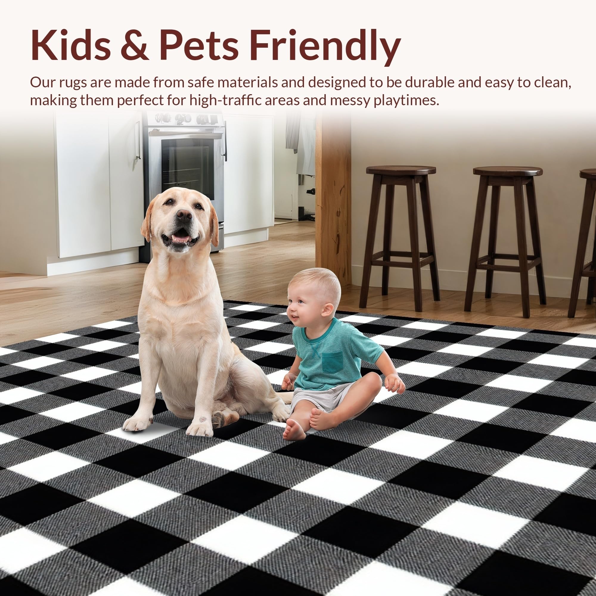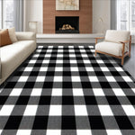 Ultra Soft Area Rug, Non Slip, Stain Resistant, Washable Area Rugs for Living Room, Bedroom, Traditional Layered Check Design Theme(Black) Overview: