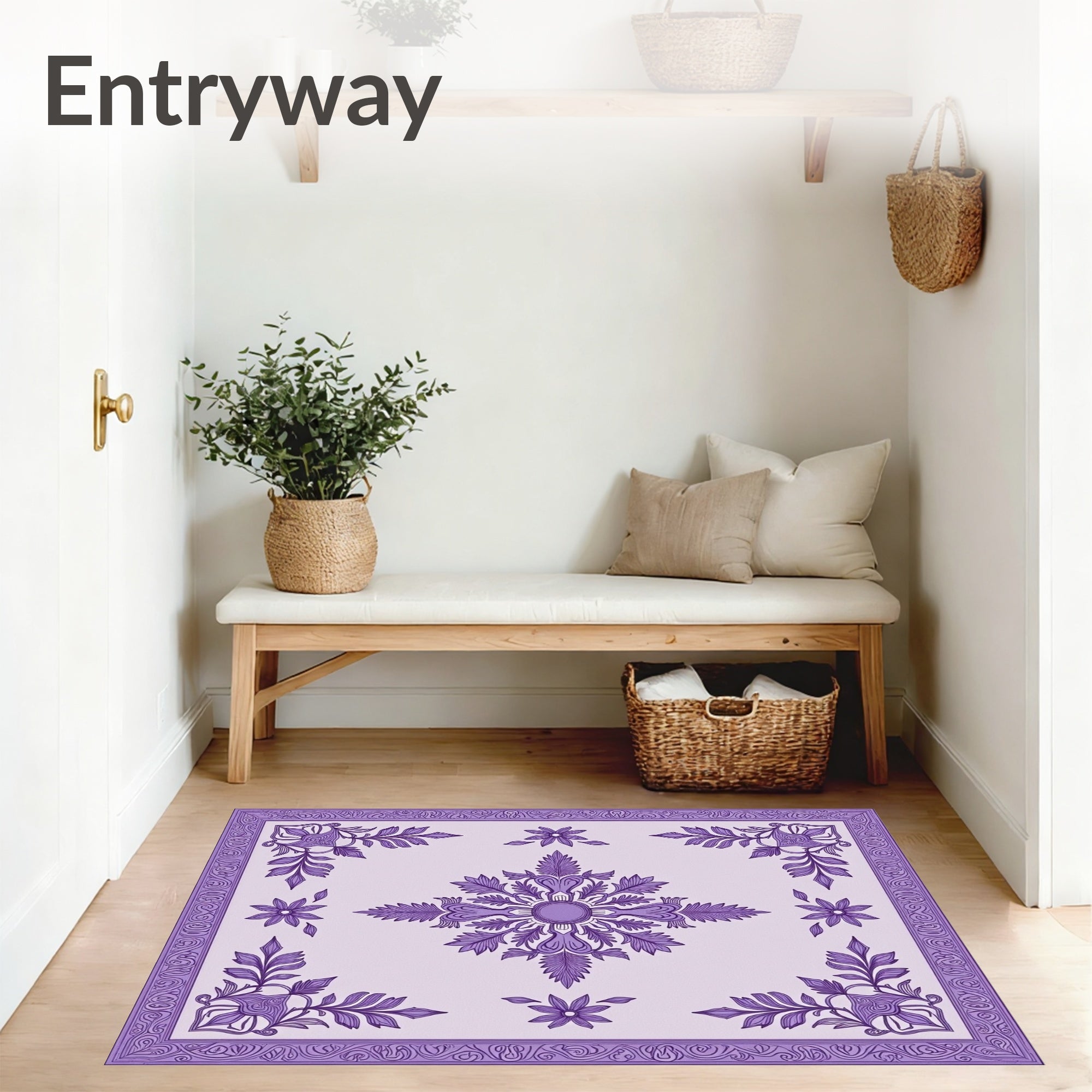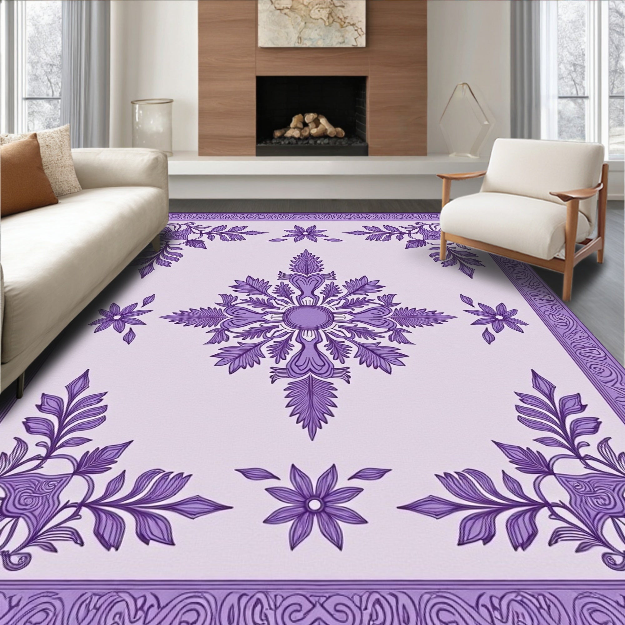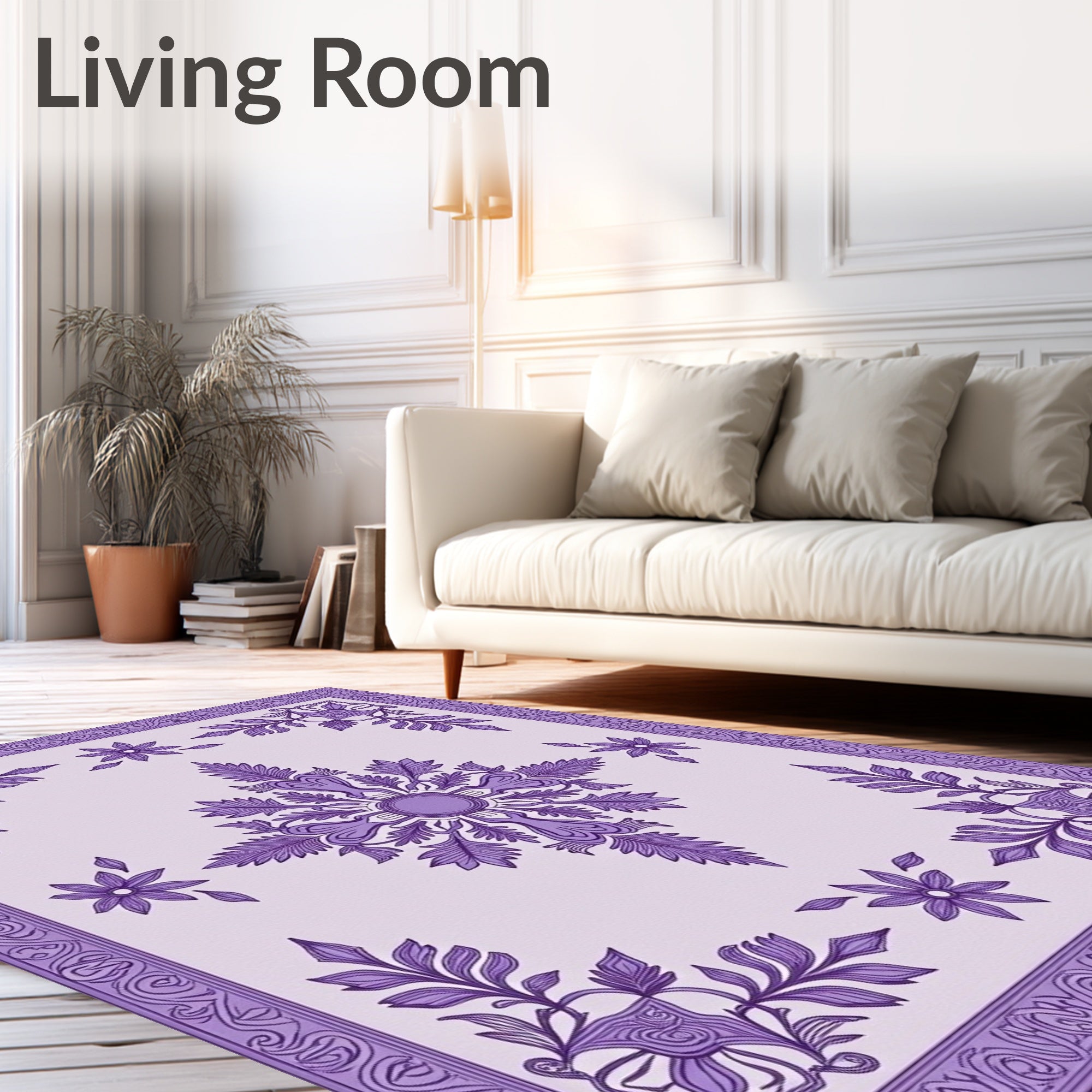 Ultra Soft Area Rug, Non Slip, Stain Resistant, Washable Area Rugs for Living Room, Bedroom, Traditional Oushak Inspired Medallion with Ornate Palmette Accents(Purple) Overview: