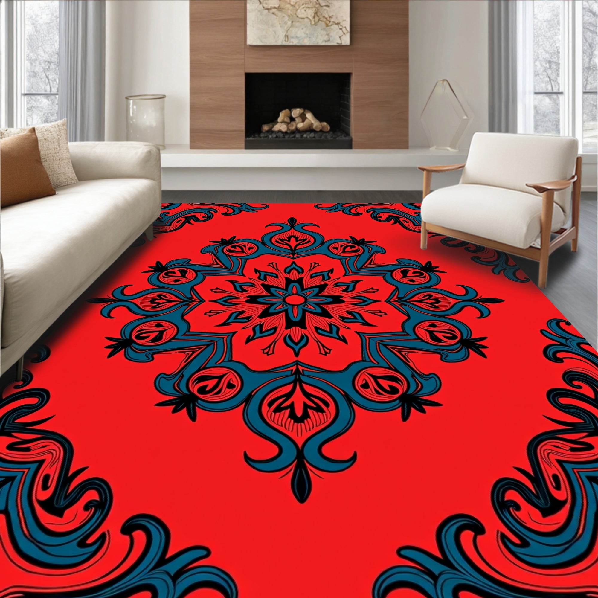 Ultra Soft Area Rug, Non Slip, Stain Resistant, Washable Area Rugs for Living Room, Bedroom, Traditional Paisley Bloom Kaleidoscope Ornate Jewel Tapestry(Red) Overview: