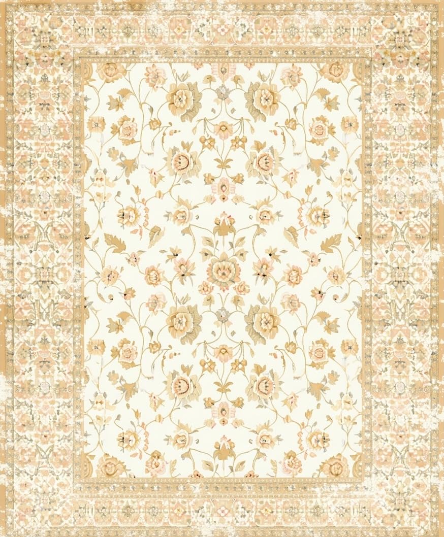 Ultra Soft Area Rug, Non Slip, Stain Resistant, Washable Area Rugs for Living Room, Bedroom, Traditional Rectangle with Beige Tonal Distressed Floral and Lattice Design(Beige) Overview: