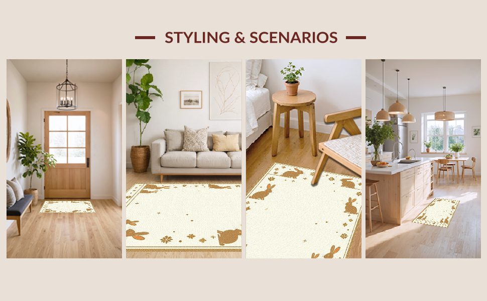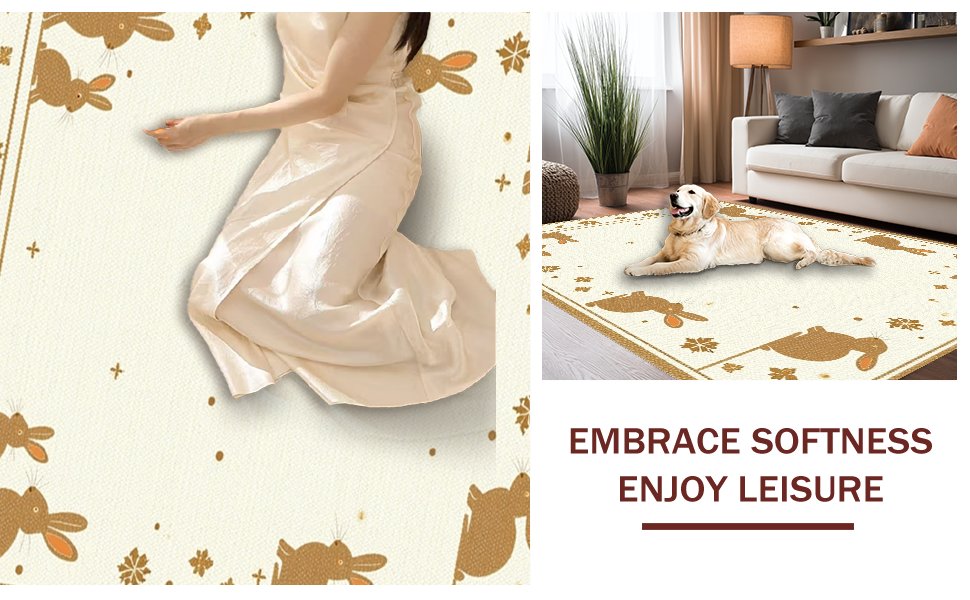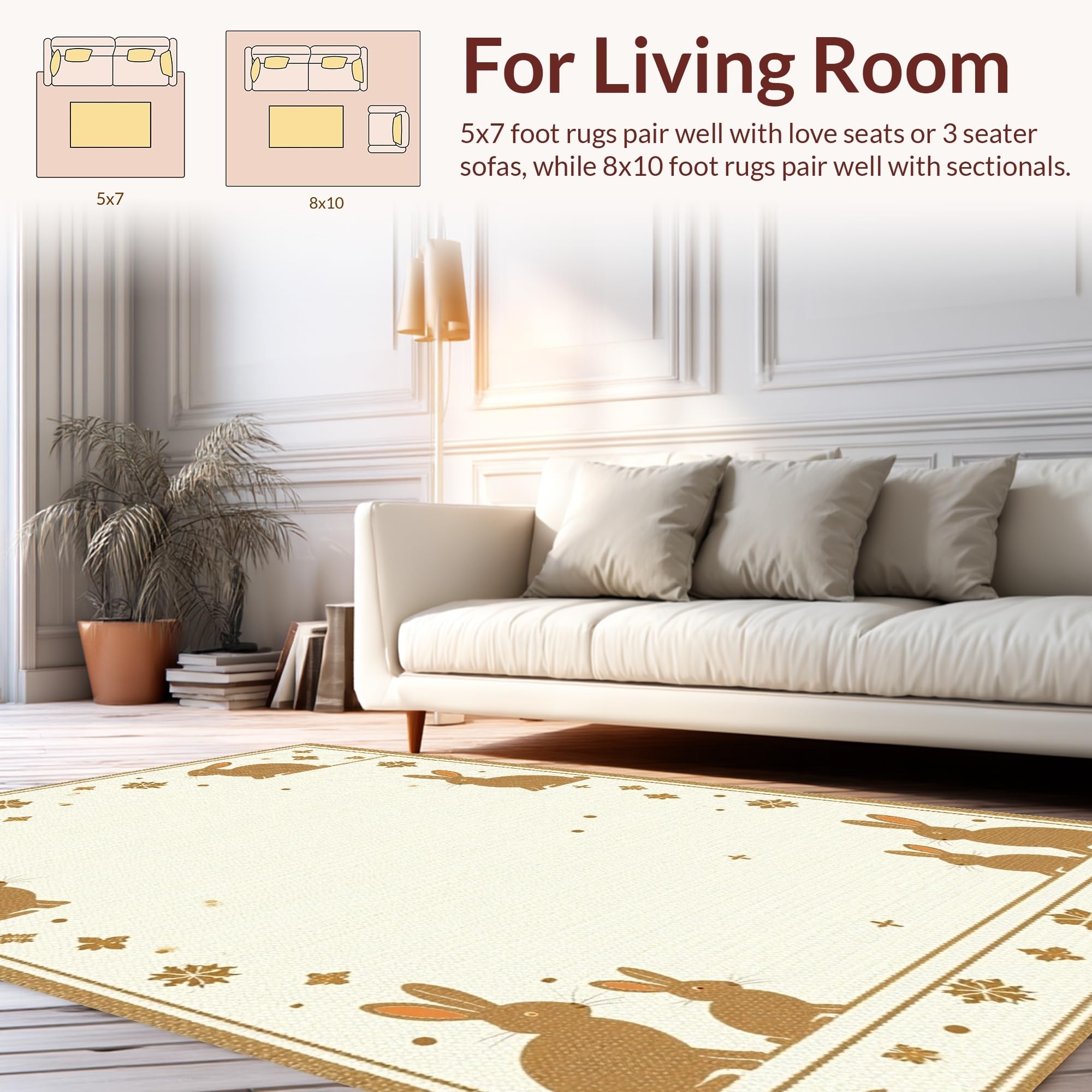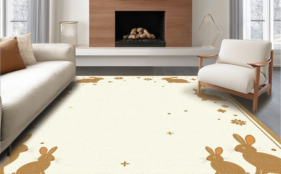 Ultra Soft Area Rug, Non Slip, Stain Resistant, Washable Area Rugs for Living Room, Bedroom, Traditional Seasonal Rabbit Design(Beige) Overview:
