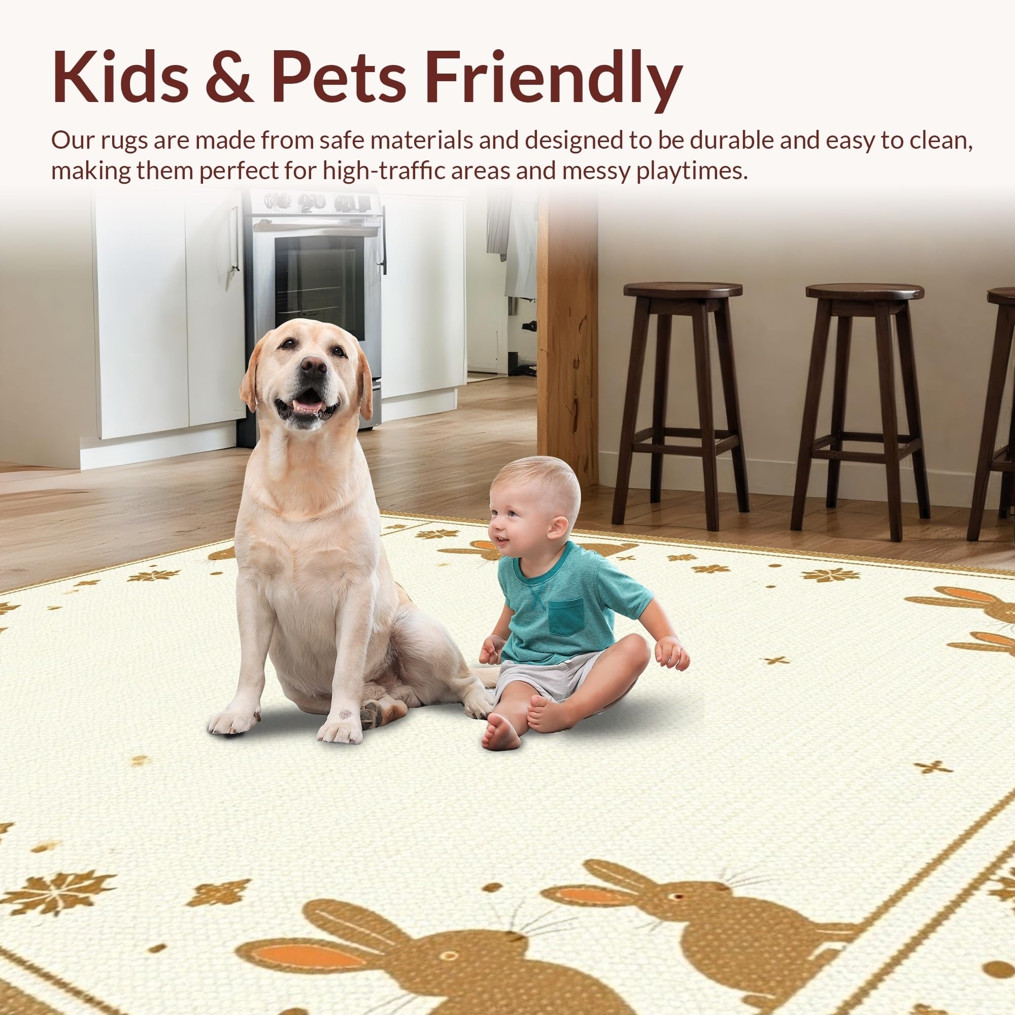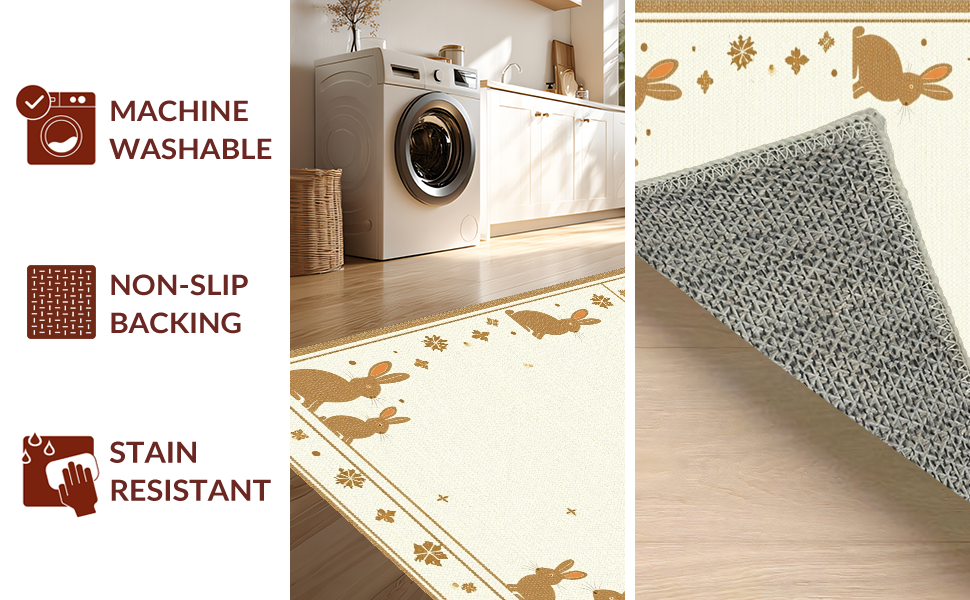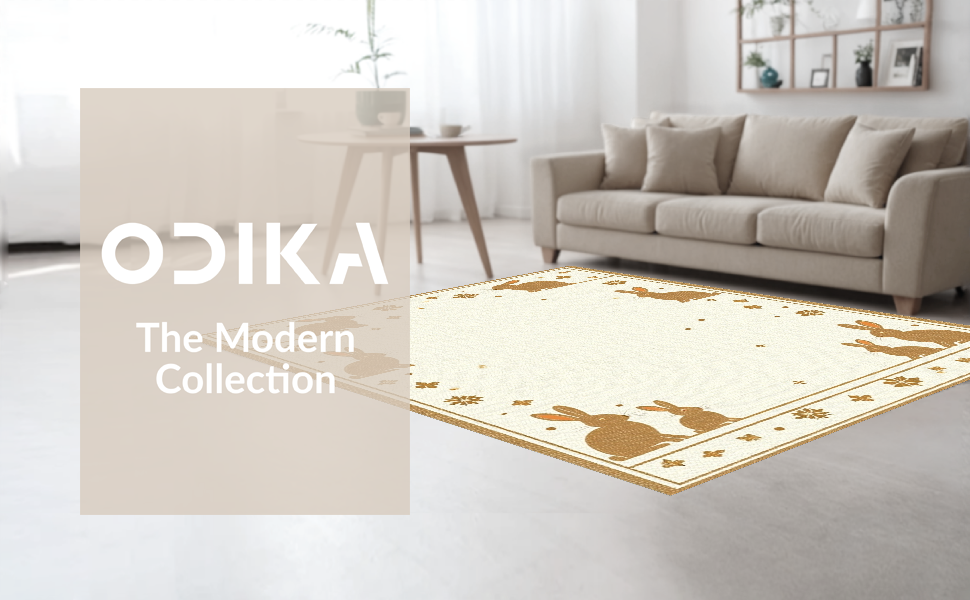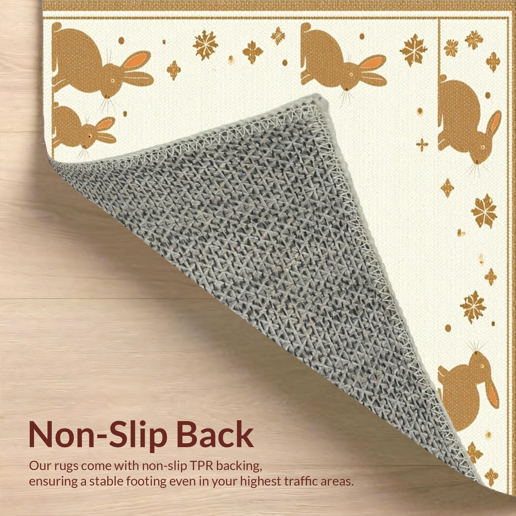 Ultra Soft Area Rug, Non Slip, Stain Resistant, Washable Area Rugs for Living Room, Bedroom, Traditional Seasonal Rabbit Design(Beige) Overview: