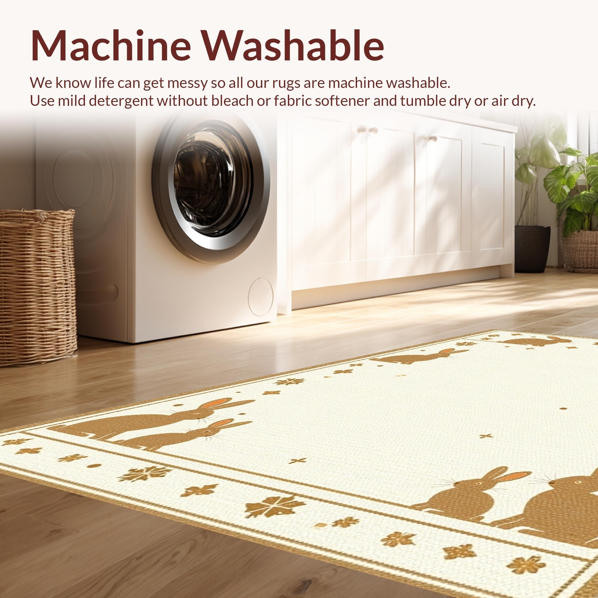 - Machine Washable: Our rugs can be easily thrown in the wash machine.