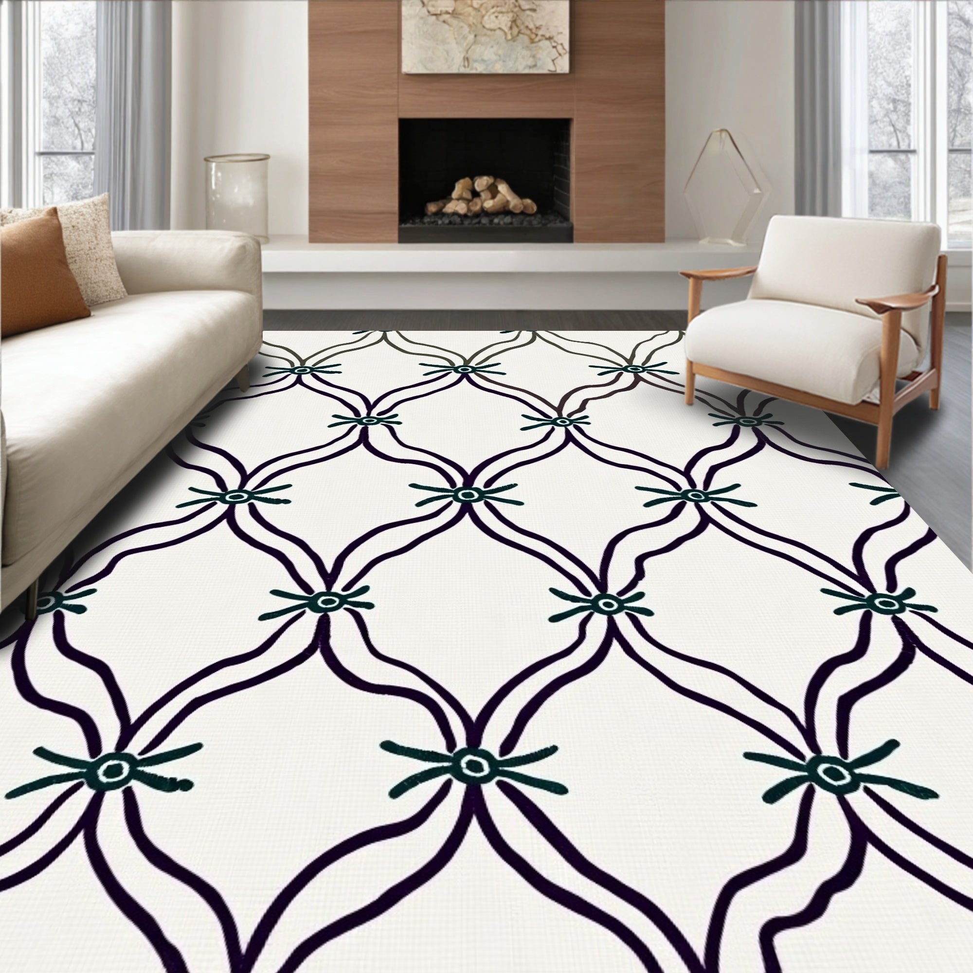 Ultra Soft Area Rug, Non Slip, Stain Resistant, Washable Area Rugs for Living Room, Bedroom, Traditional Weathered Honeycomb Mosaic Tracery(Purple) Overview: