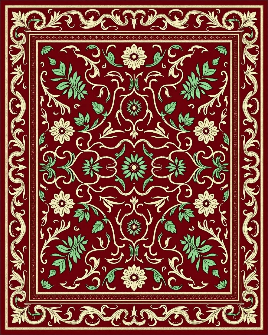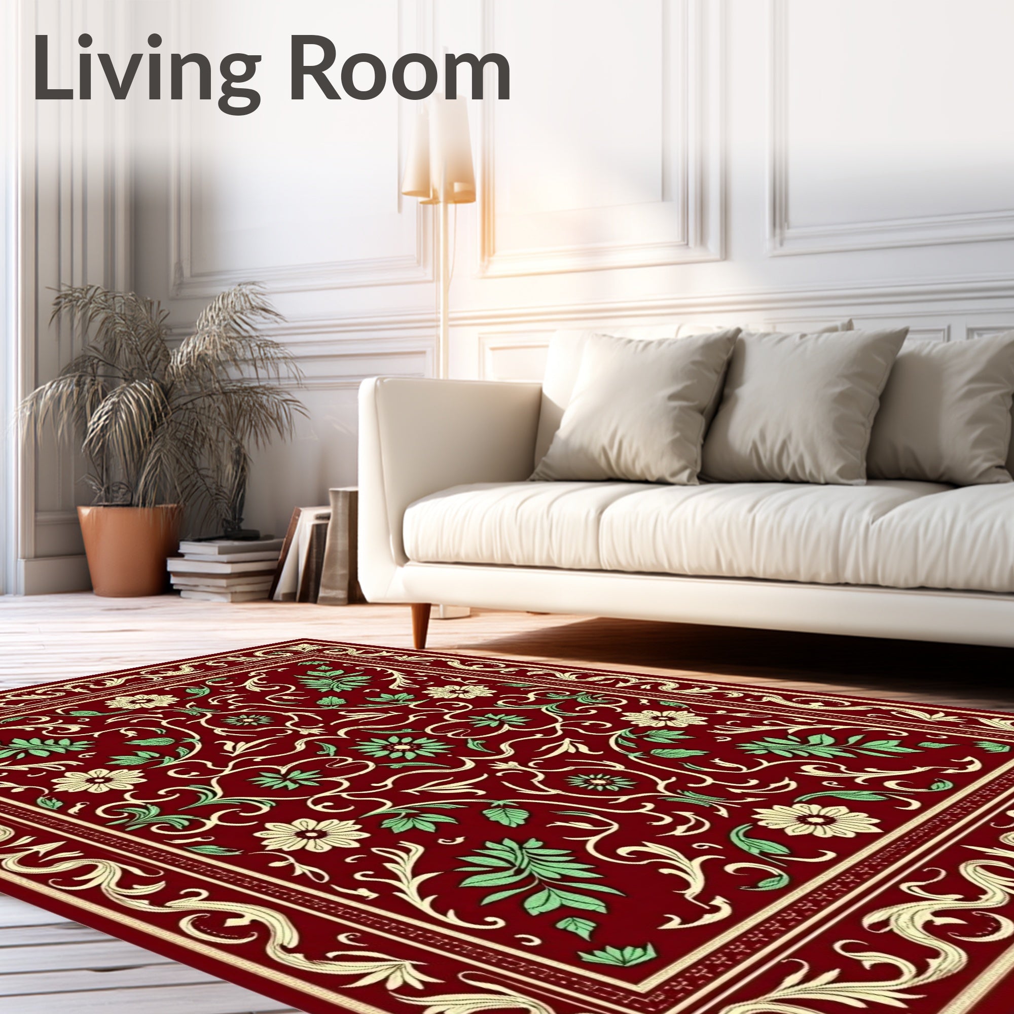 Ultra Soft Area Rug, Non Slip, Stain Resistant, Washable Area Rugs for Living Room, Bedroom, Traditional Winterberry Featuring Ornate Leafy Scrollwork(Red) Overview: