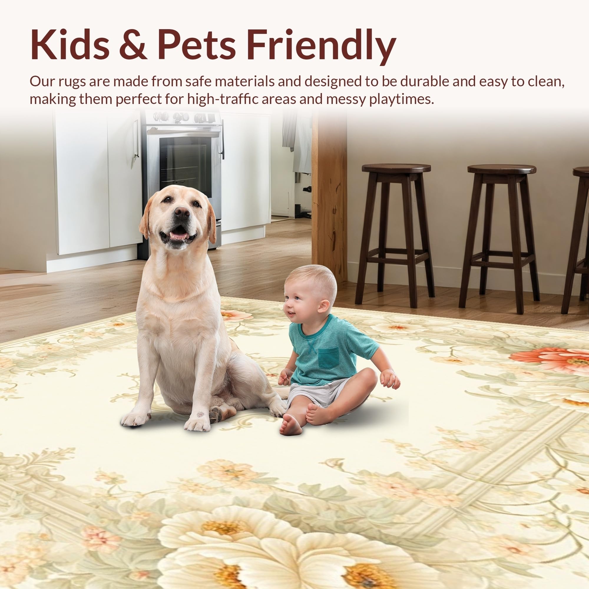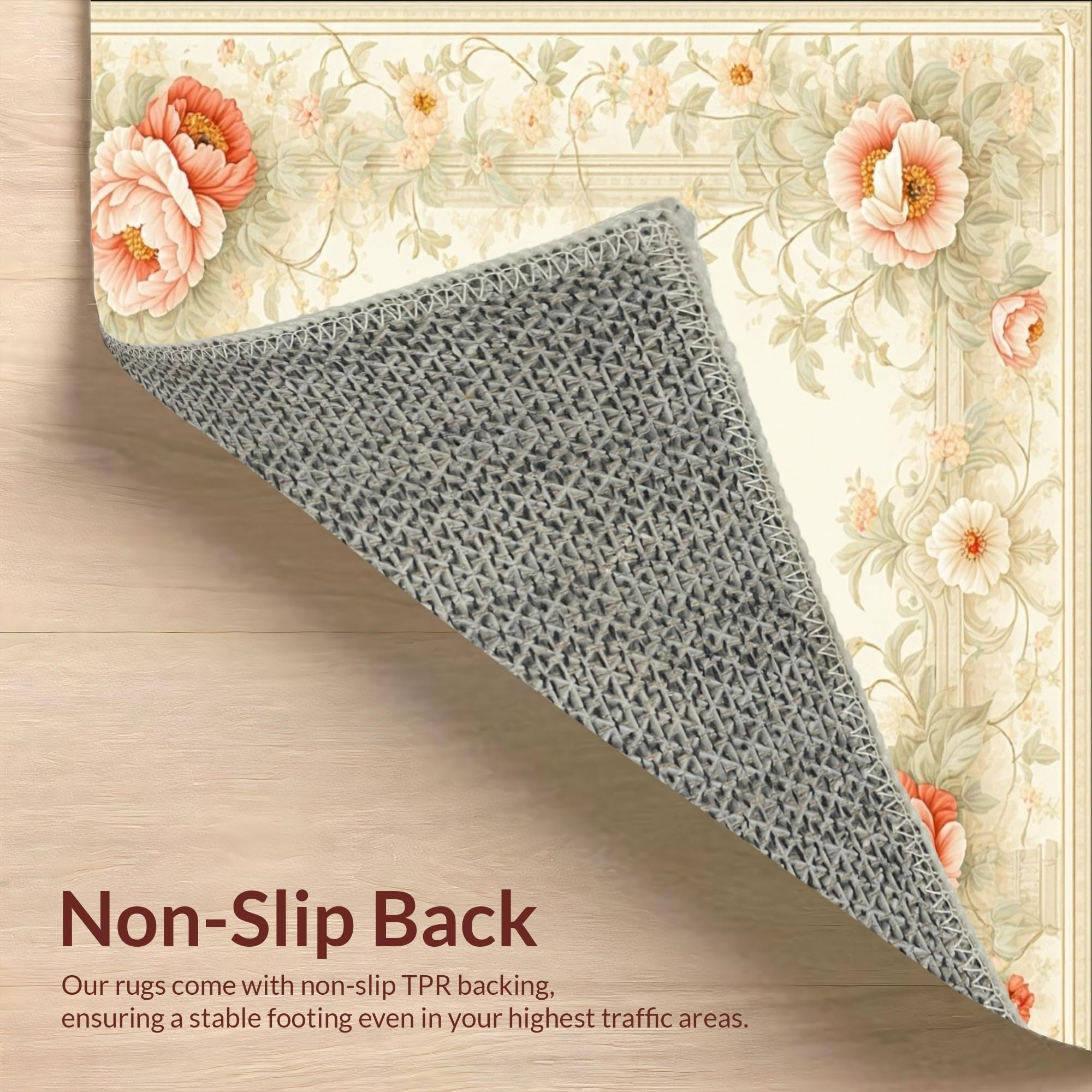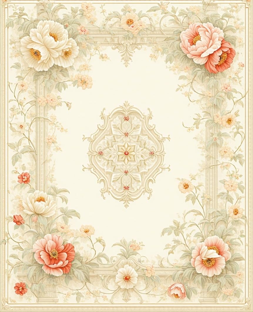 Ultra Soft Area Rug, Non Slip, Stain Resistant, Washable Area Rugs for Living Room, Bedroom, Tranquil Garden Beige Area Classic Floral Cottage(Beige) Overview: