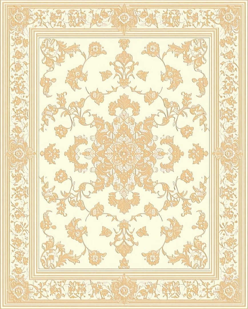 Tranquil Medallion with Ornate Scrolls and Classic Filigree Motifs(Beige)