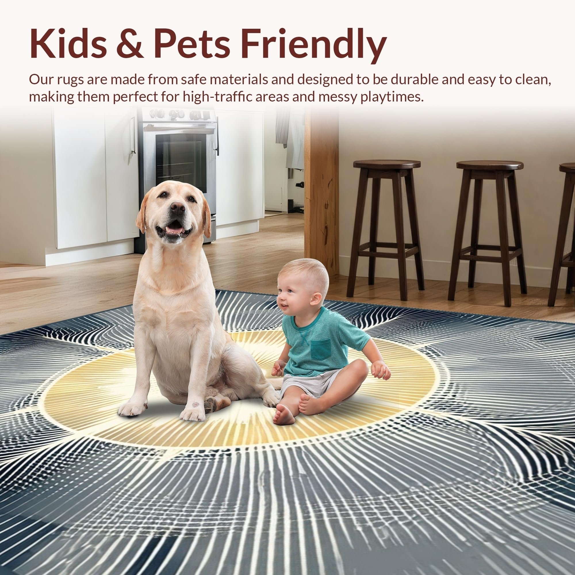 Ultra Soft Area Rug, Non Slip, Stain Resistant, Washable Area Rugs for Living Room, Bedroom, Tranquil Monochrome Patterned Accents(Gray) Overview: