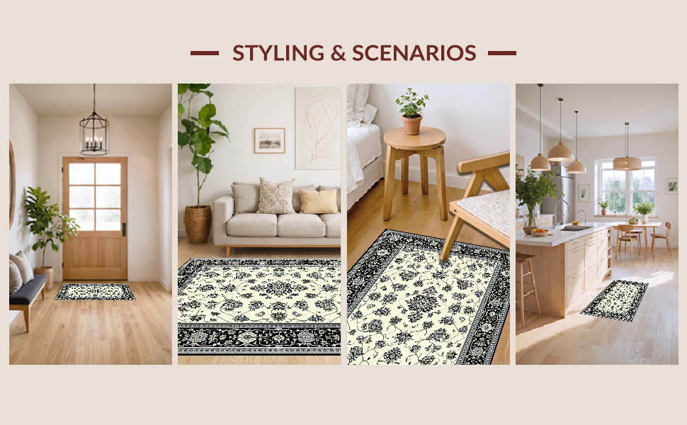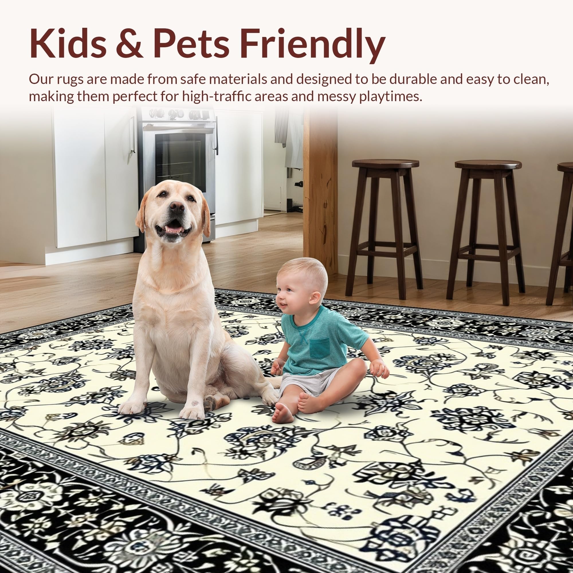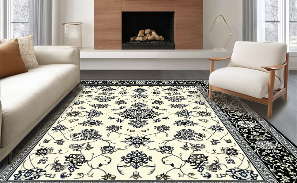 Ultra Soft Area Rug, Non Slip, Stain Resistant, Washable Area Rugs for Living Room, Bedroom, Transitional Classic Ogee Pattern(Beige) Overview:
