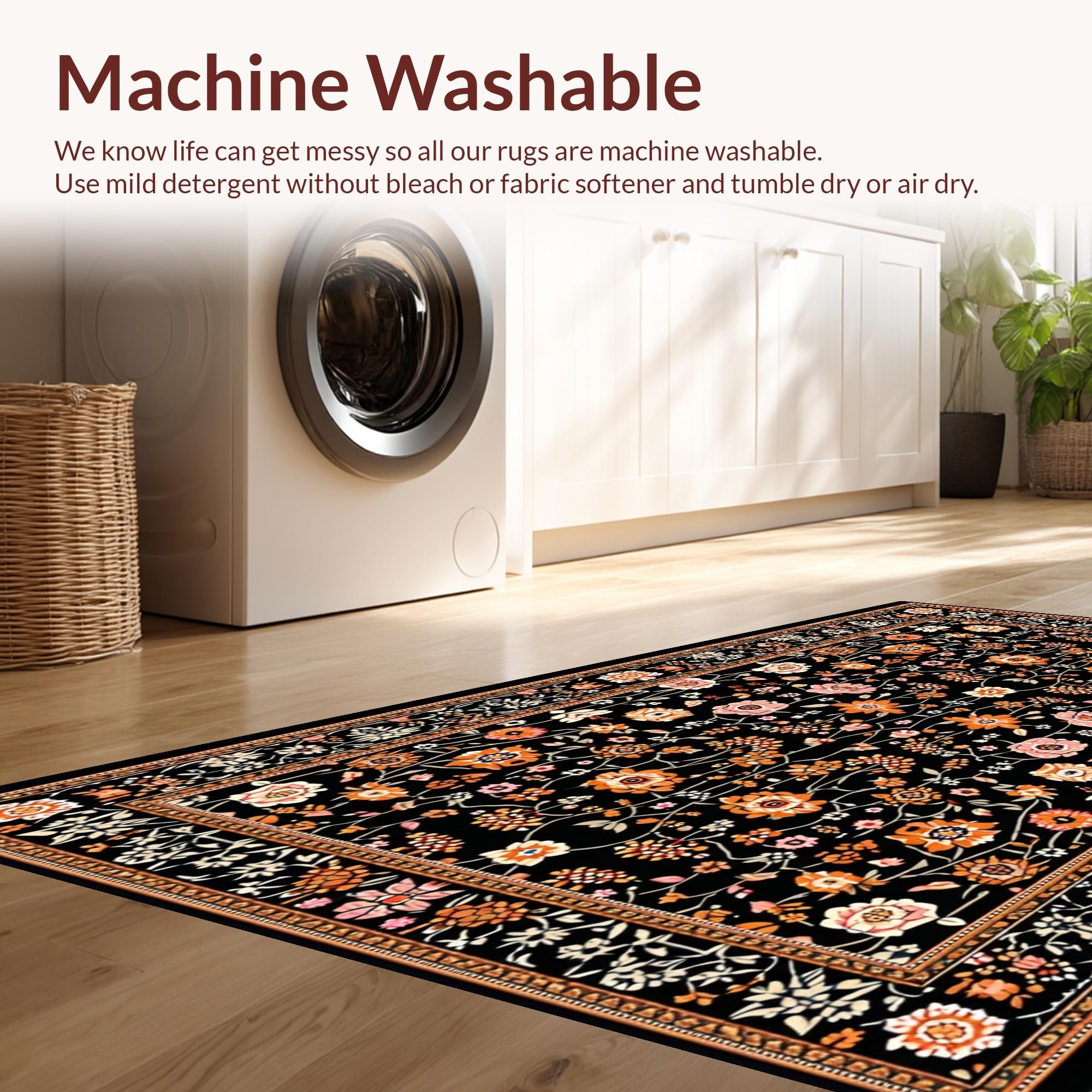 - Machine Washable: Our rugs can be easily thrown in the wash machine.