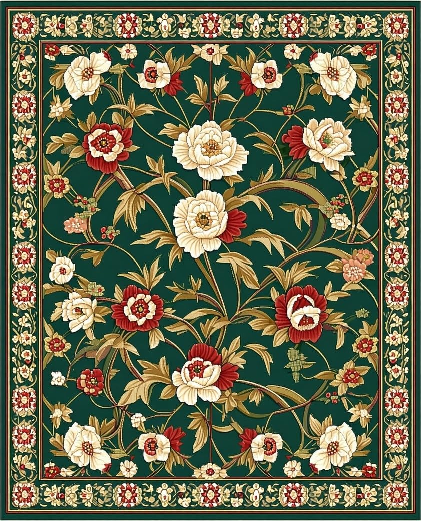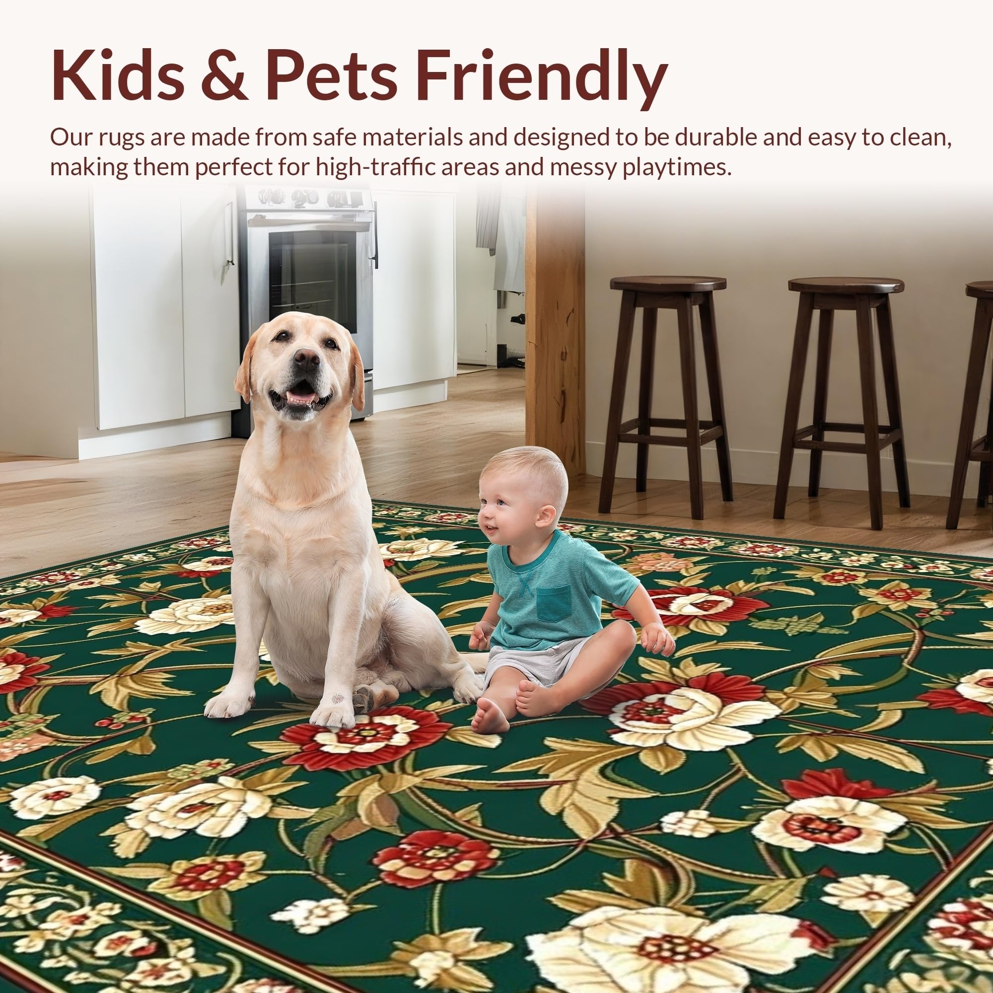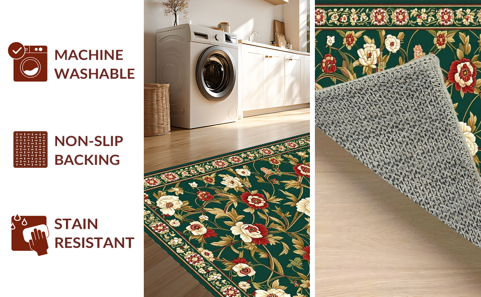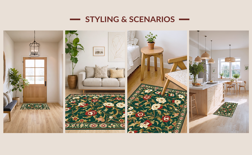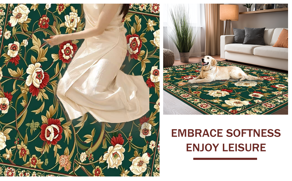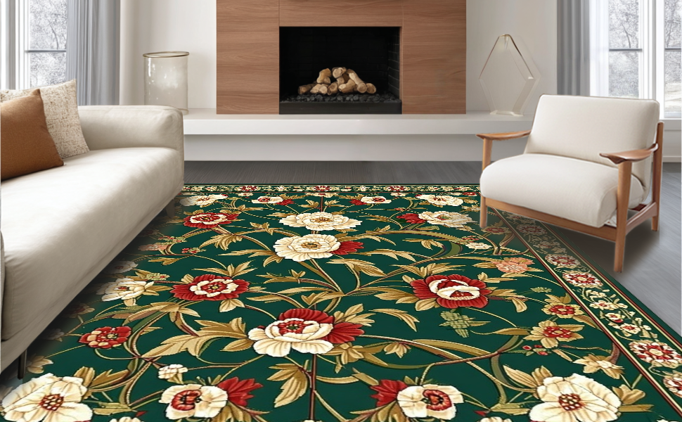 Ultra Soft Area Rug, Non Slip, Stain Resistant, Washable Area Rugs for Living Room, Bedroom, Transitional Cream and Earthy Hues(Green) Overview:
