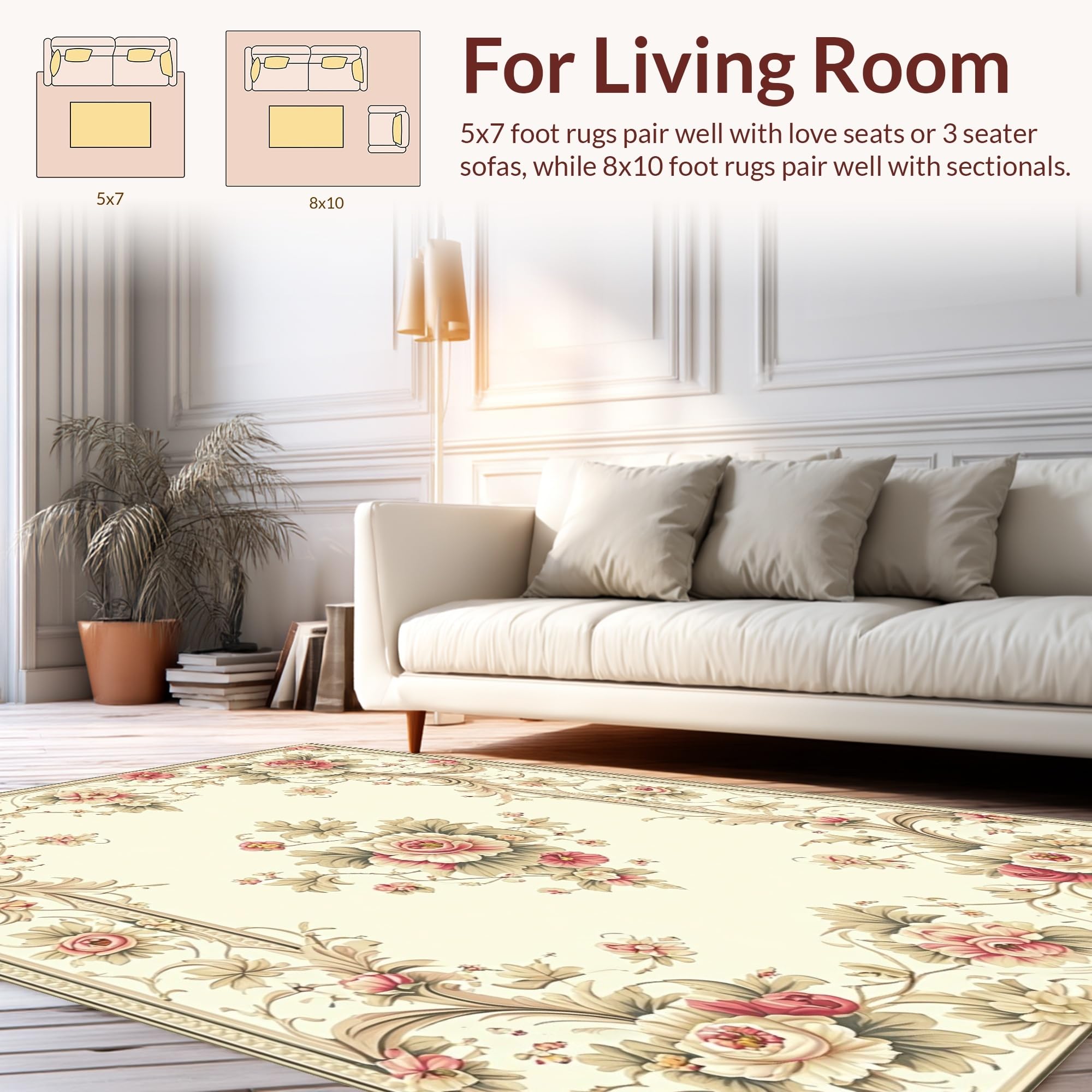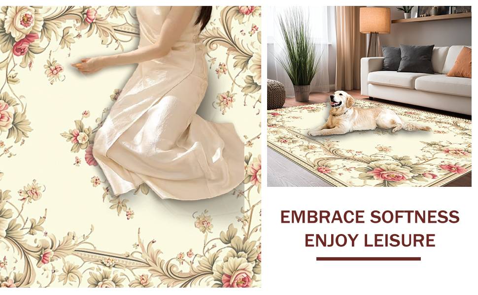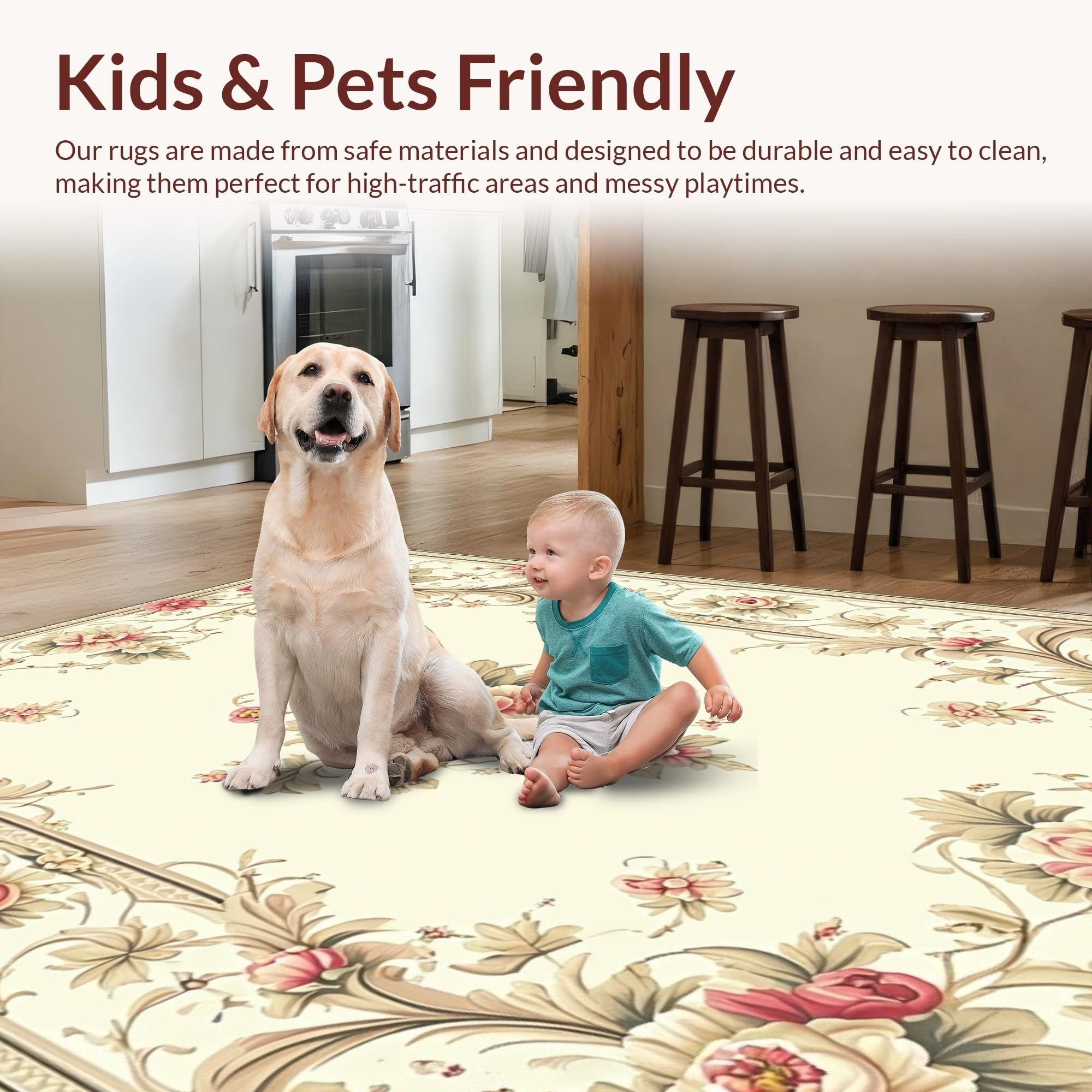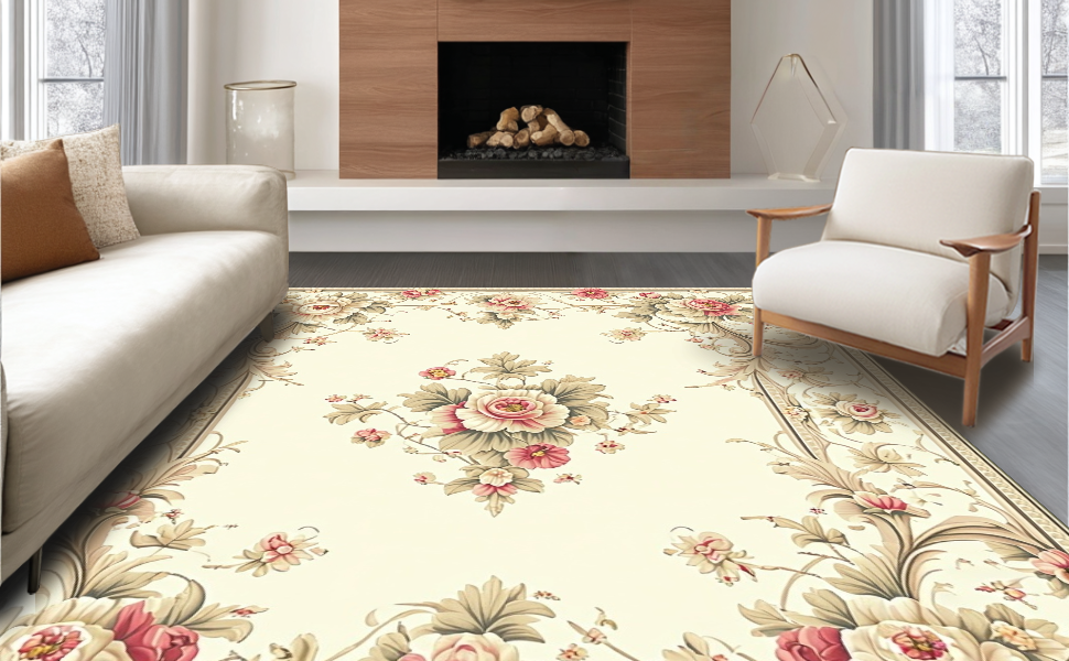 Ultra Soft Area Rug, Non Slip, Stain Resistant, Washable Area Rugs for Living Room, Bedroom, Transitional Earth Tone Pattern(Beige) Overview:
