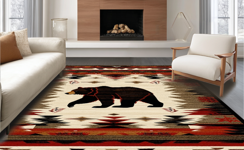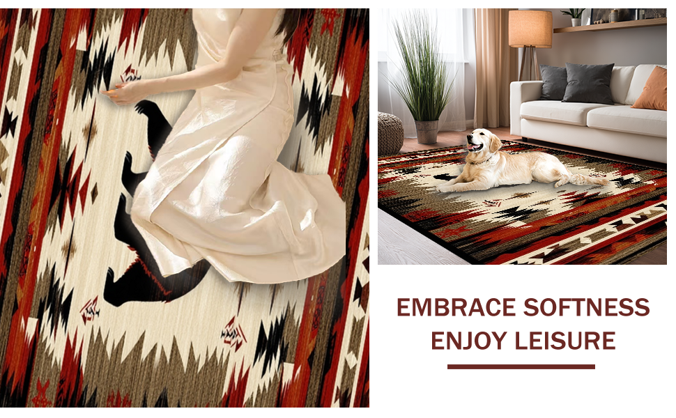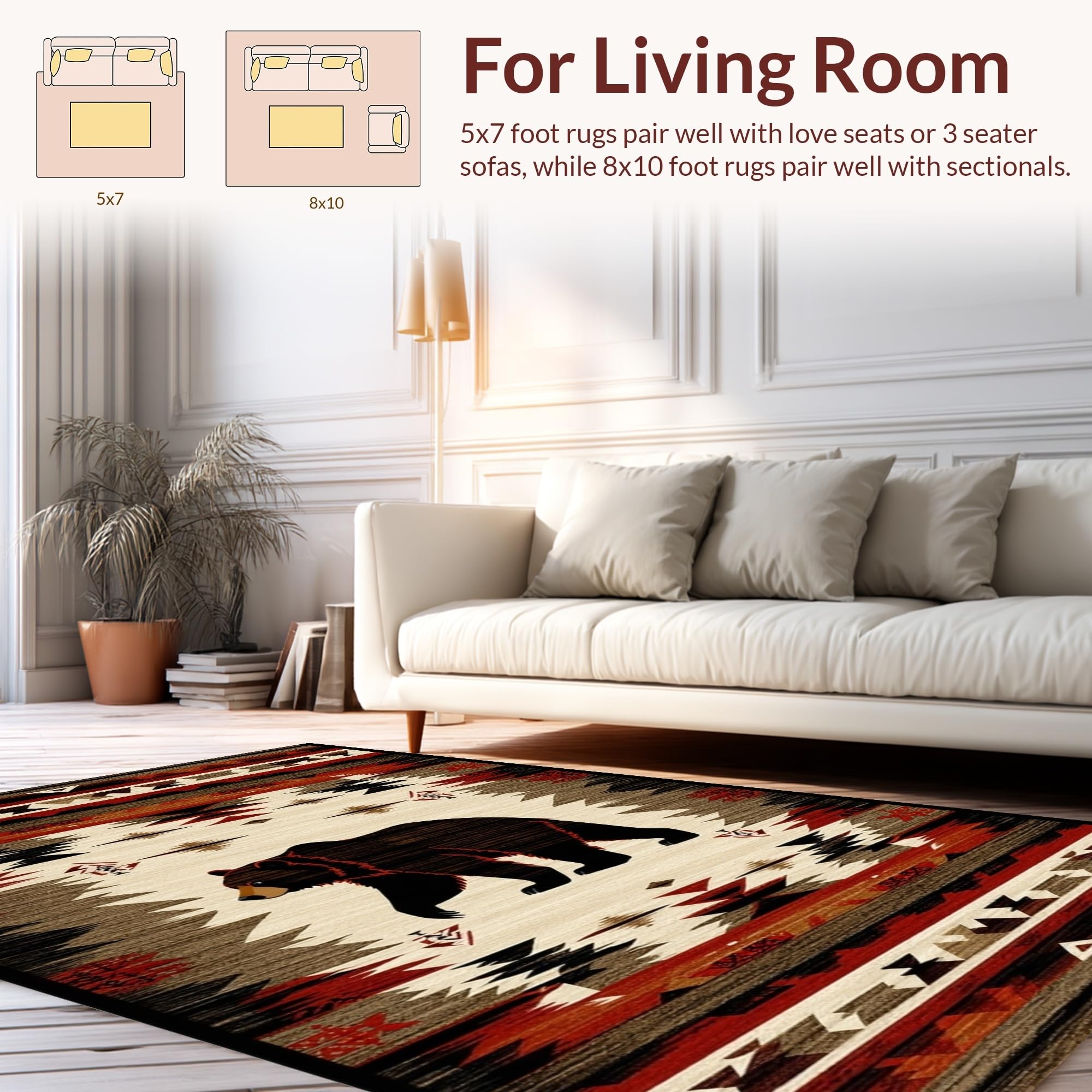 Ultra Soft Area Rug, Non Slip, Stain Resistant, Washable Area Rugs for Living Room, Bedroom, Transitional Ethnic Pattern Fusion(Brown) Overview: