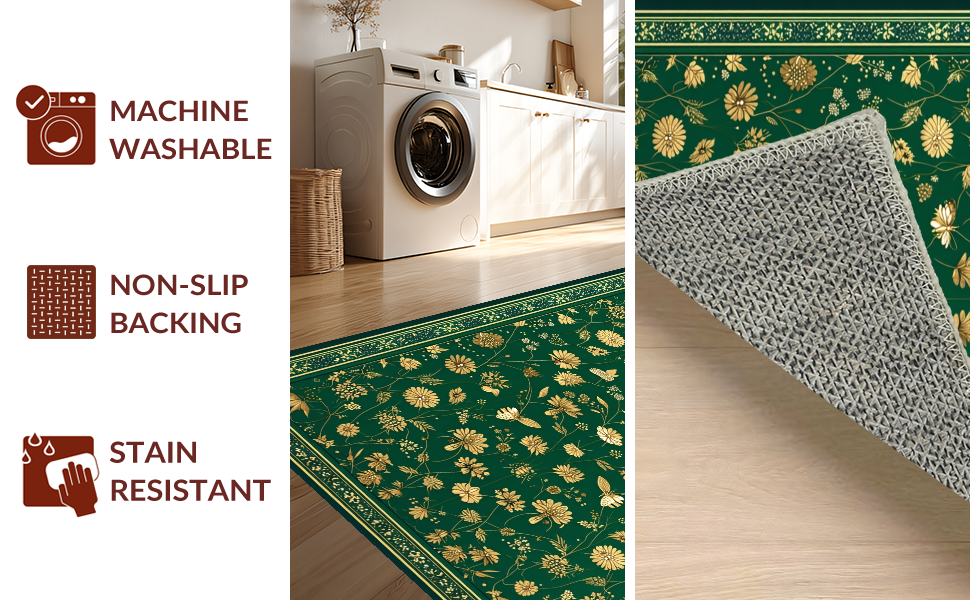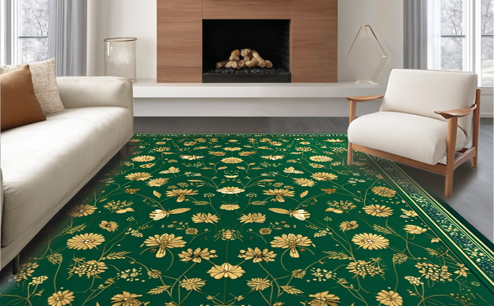 Ultra Soft Area Rug, Non Slip, Stain Resistant, Washable Area Rugs for Living Room, Bedroom, Transitional Nature Theme Design(Green) Overview: