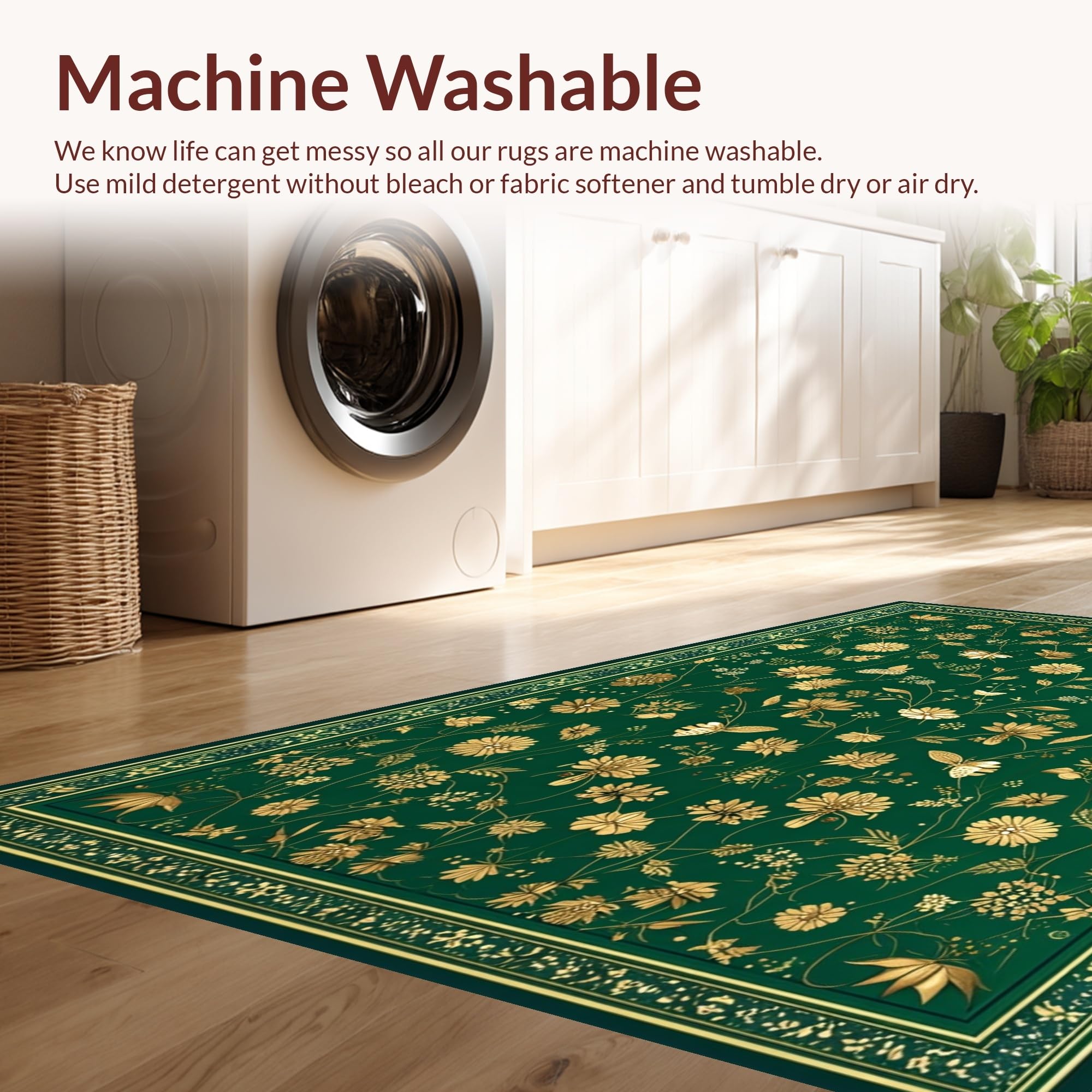 - Machine Washable: Our rugs can be easily thrown in the wash machine.