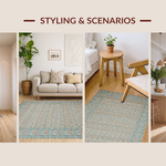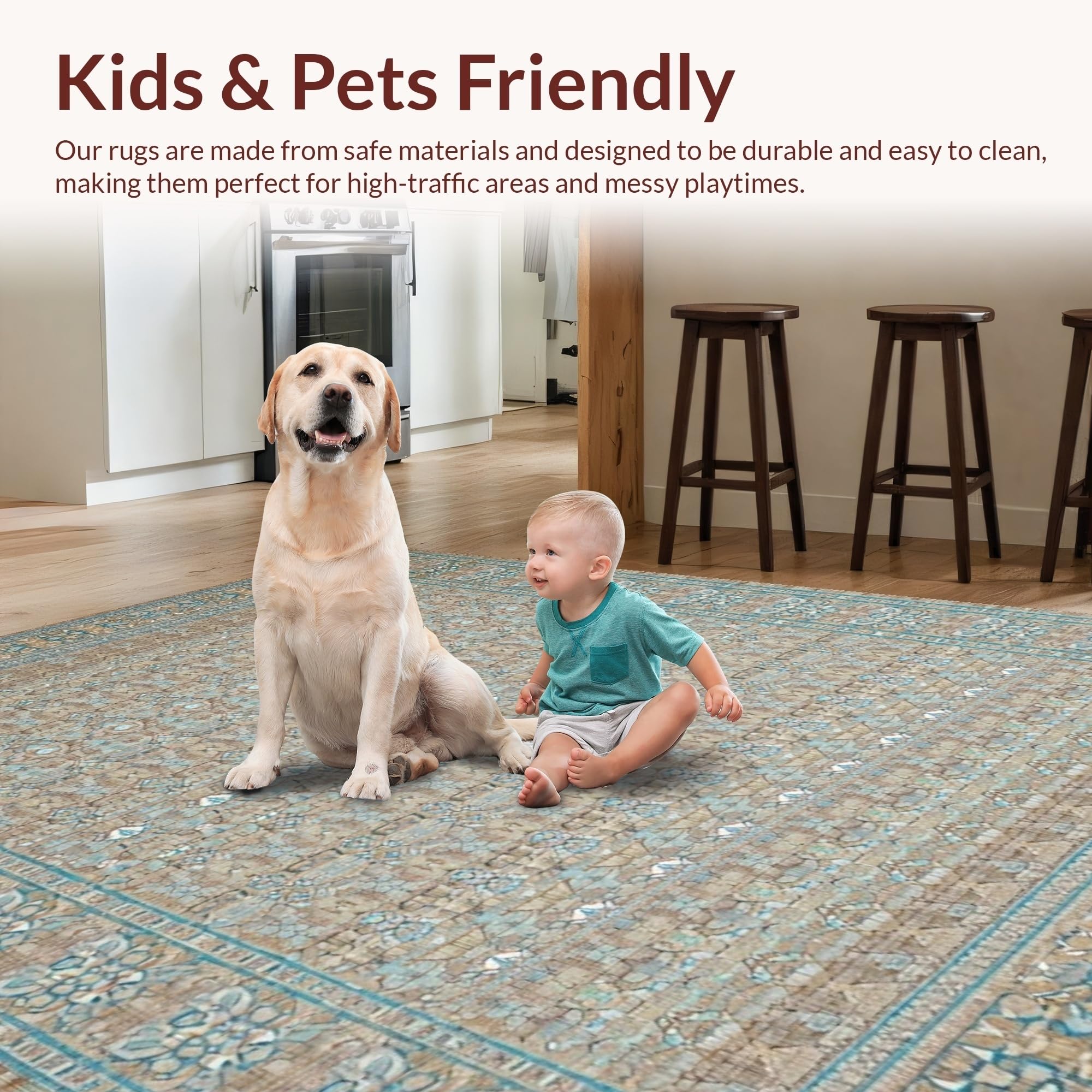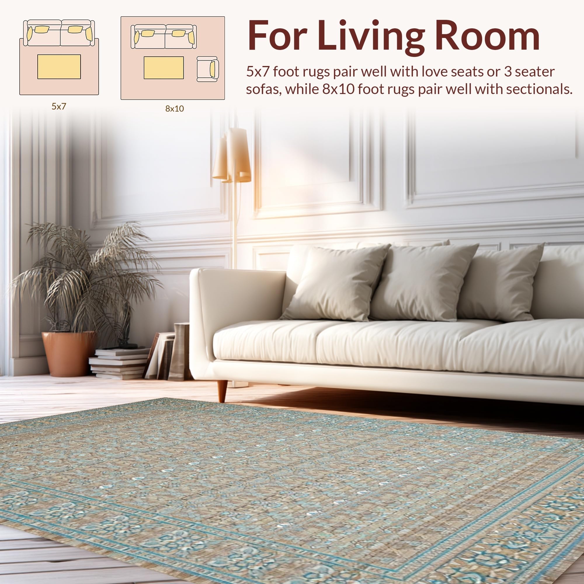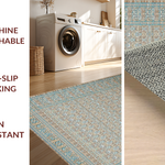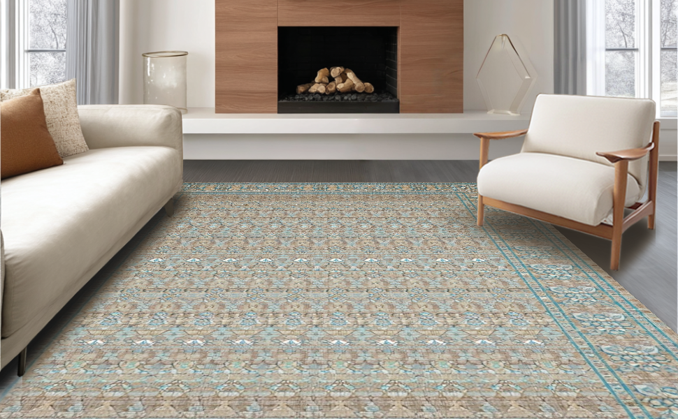 Ultra Soft Area Rug, Non Slip, Stain Resistant, Washable Area Rugs for Living Room, Bedroom, Transitional Soft Blue Medallion Design(Beige) Overview: