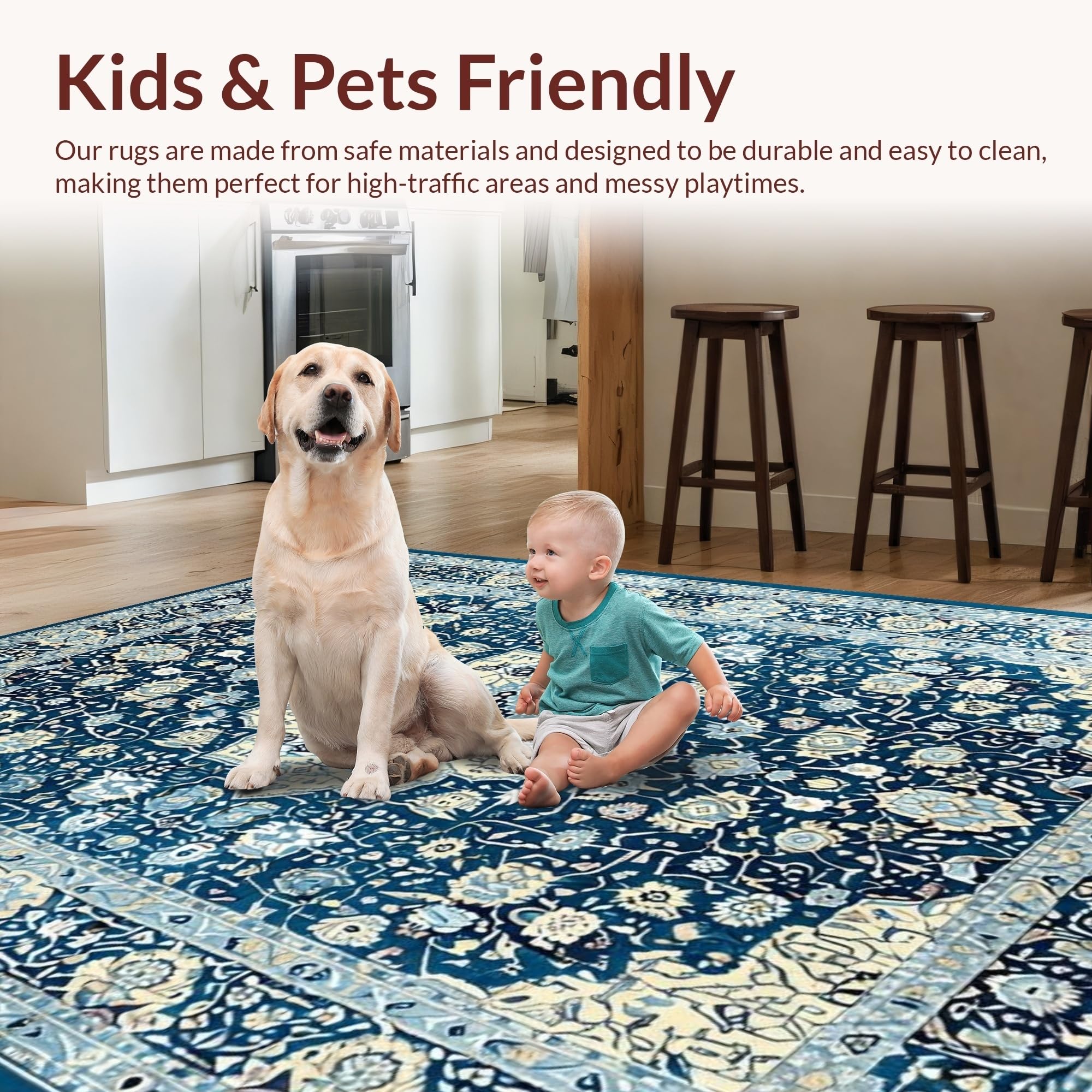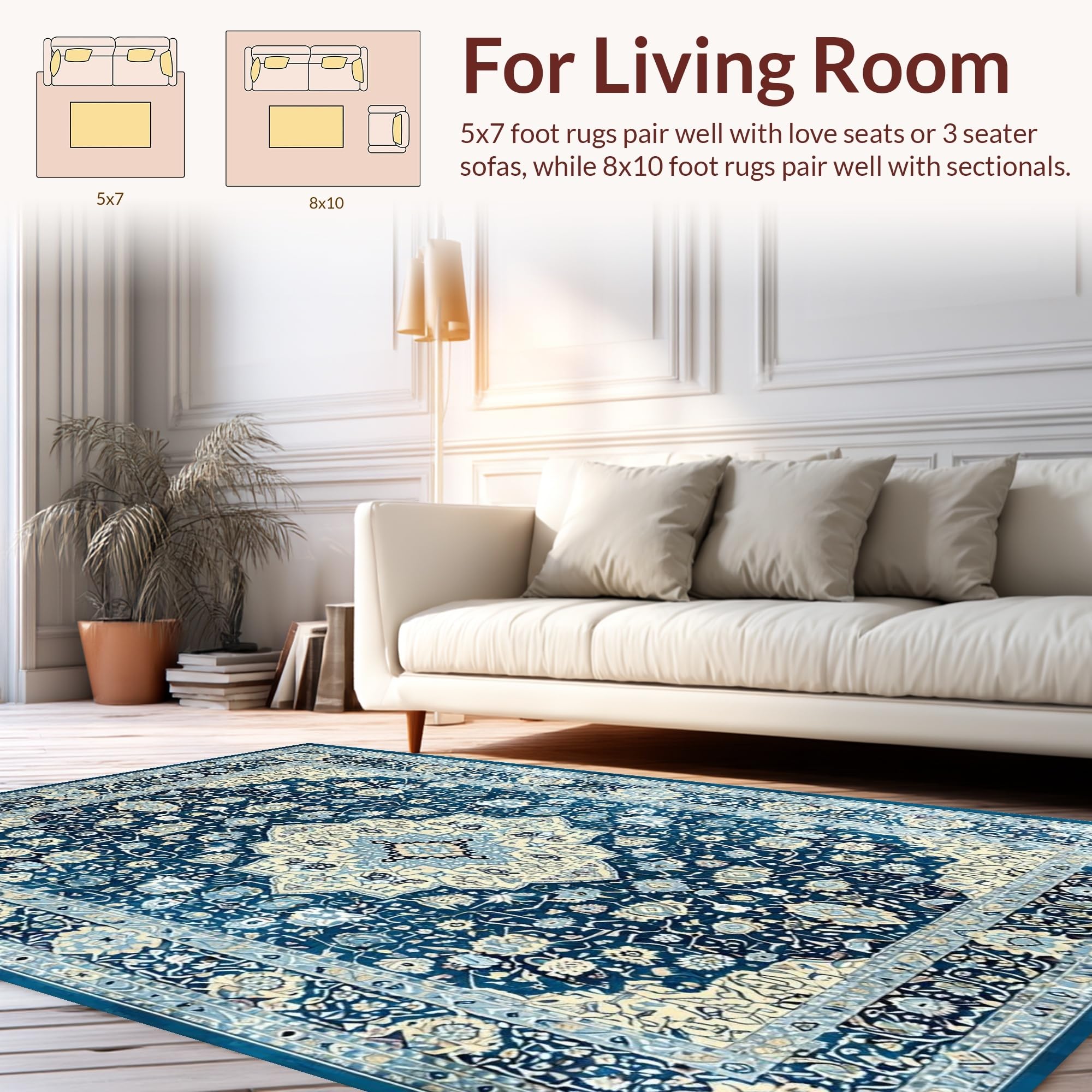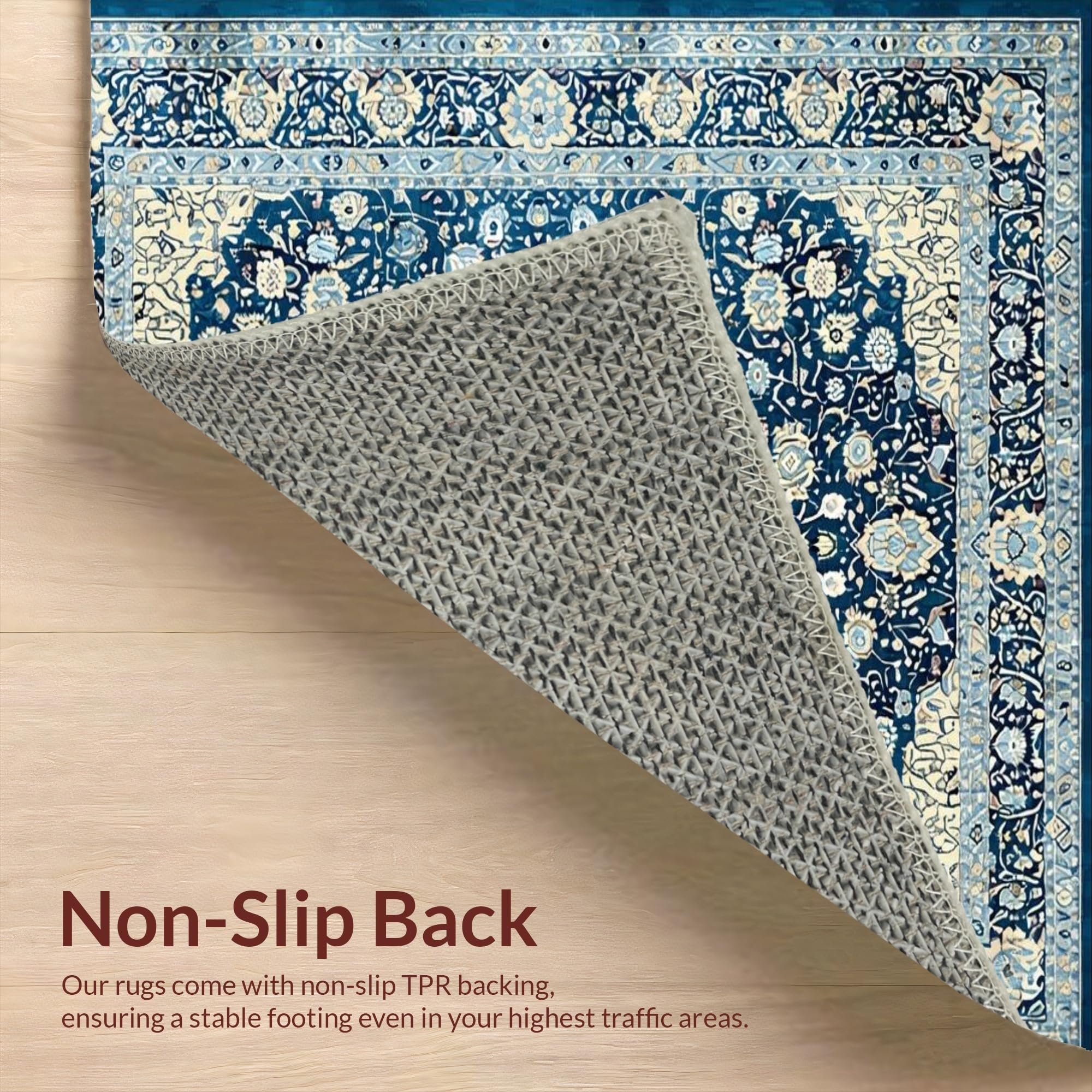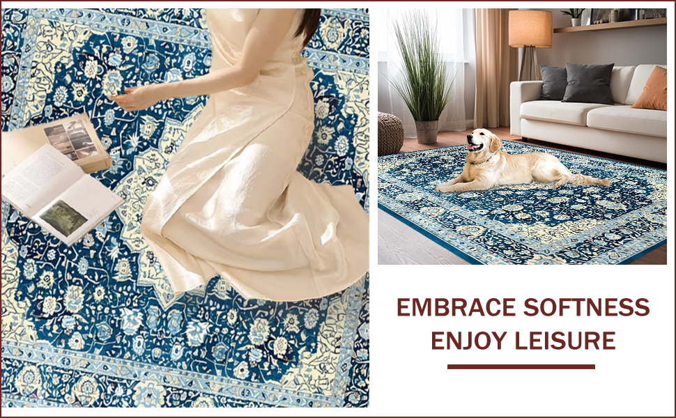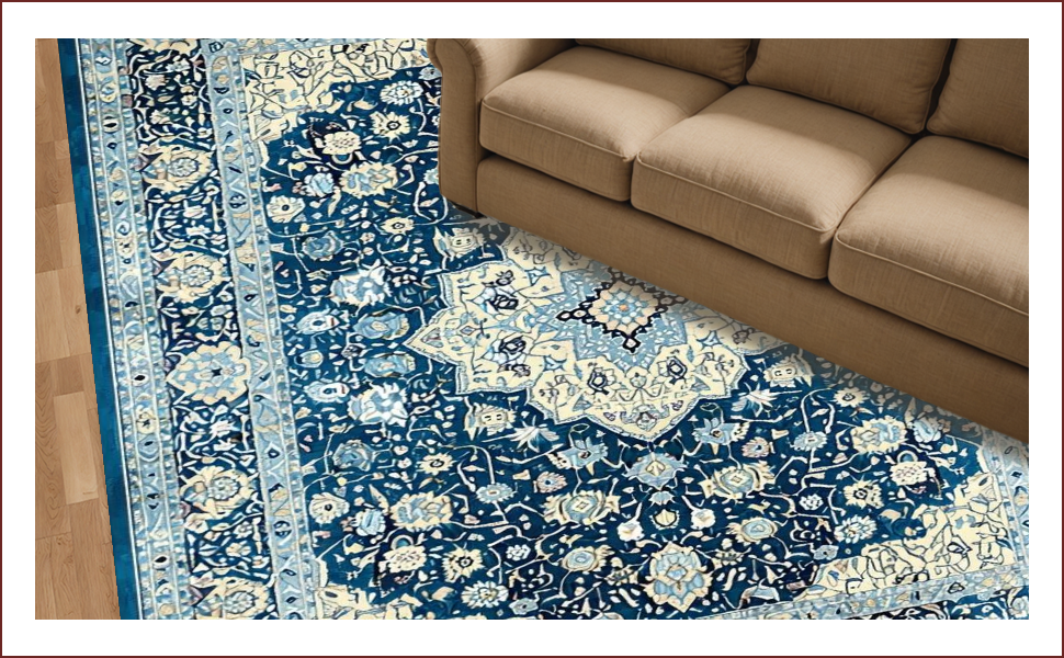 Ultra Soft Area Rug, Non Slip, Stain Resistant, Washable Area Rugs for Living Room, Bedroom, Transitional Soft Floral Arrangement(Blue) Overview: