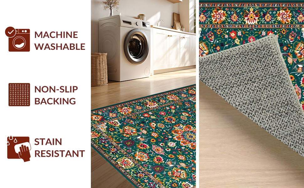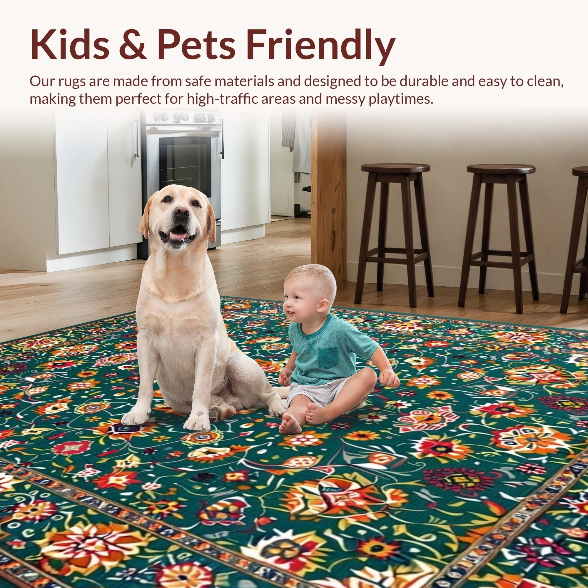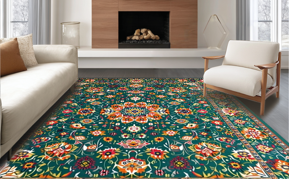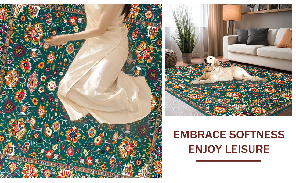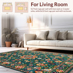 Ultra Soft Area Rug, Non Slip, Stain Resistant, Washable Area Rugs for Living Room, Bedroom, Transitional Soft Floral Charm(Green) Overview: