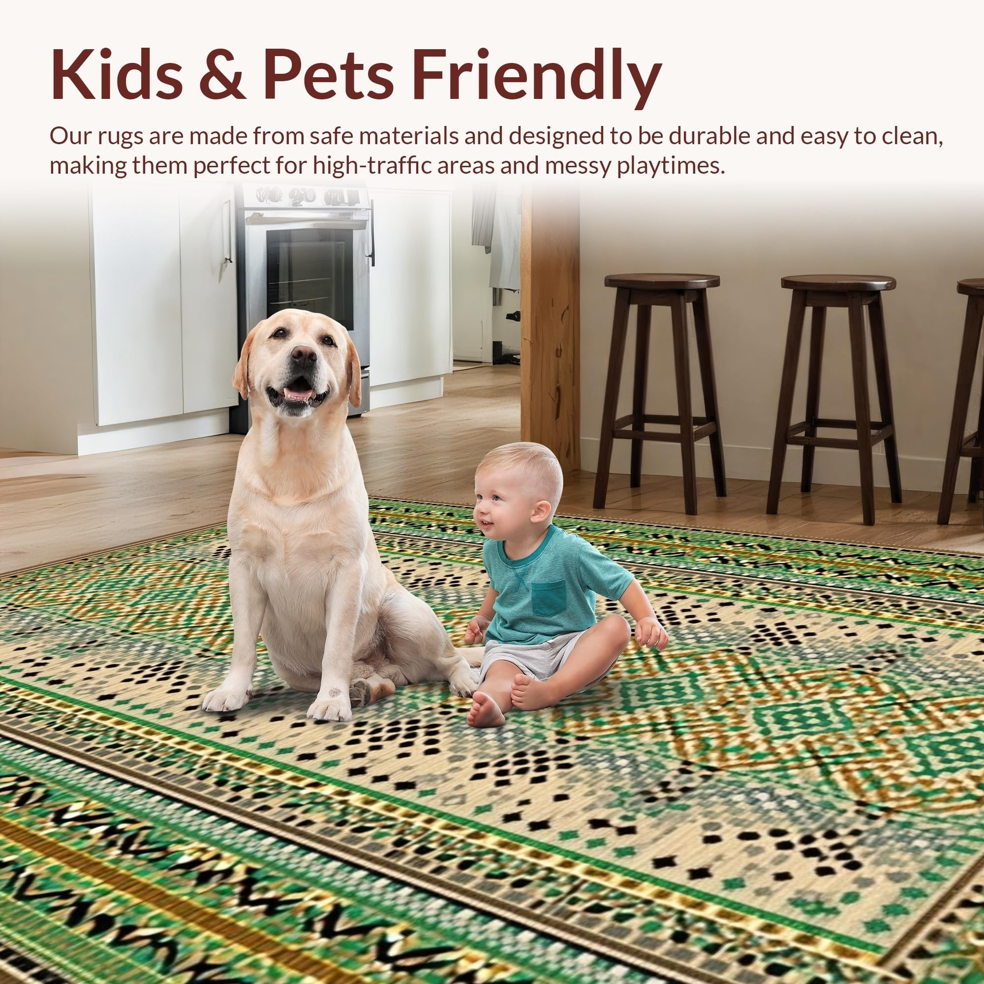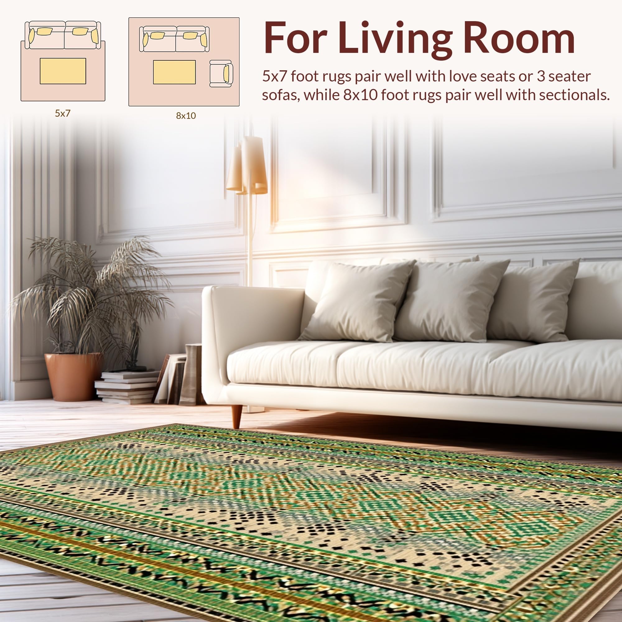Ultra Soft Area Rug, Non Slip, Stain Resistant, Washable Area Rugs for Living Room, Bedroom, Transitional Soft Geometry Flair(Beige) Overview: