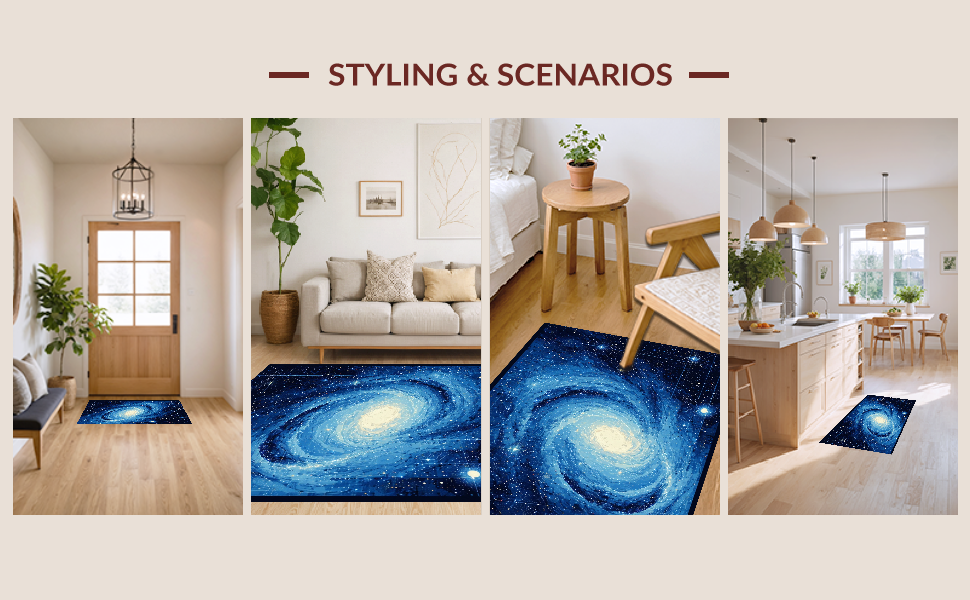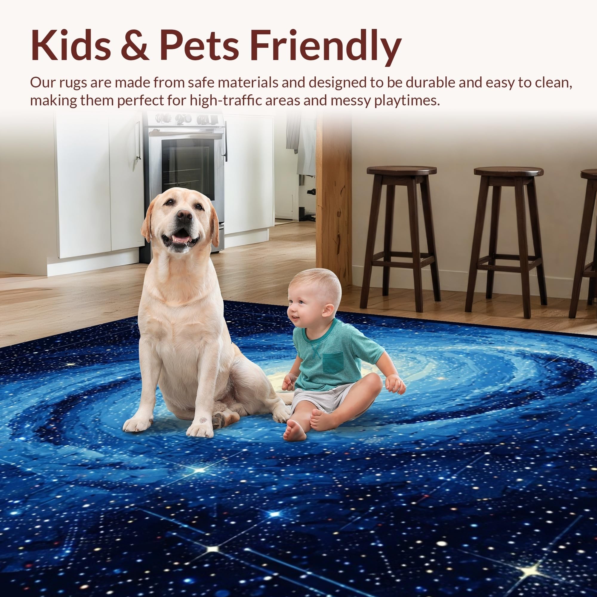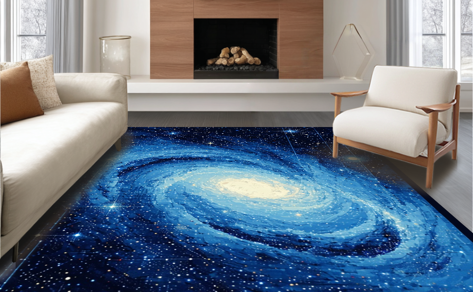 Ultra Soft Area Rug, Non Slip, Stain Resistant, Washable Area Rugs for Living Room, Bedroom, Transitional Space Odyssey Palette(Blue) Overview: