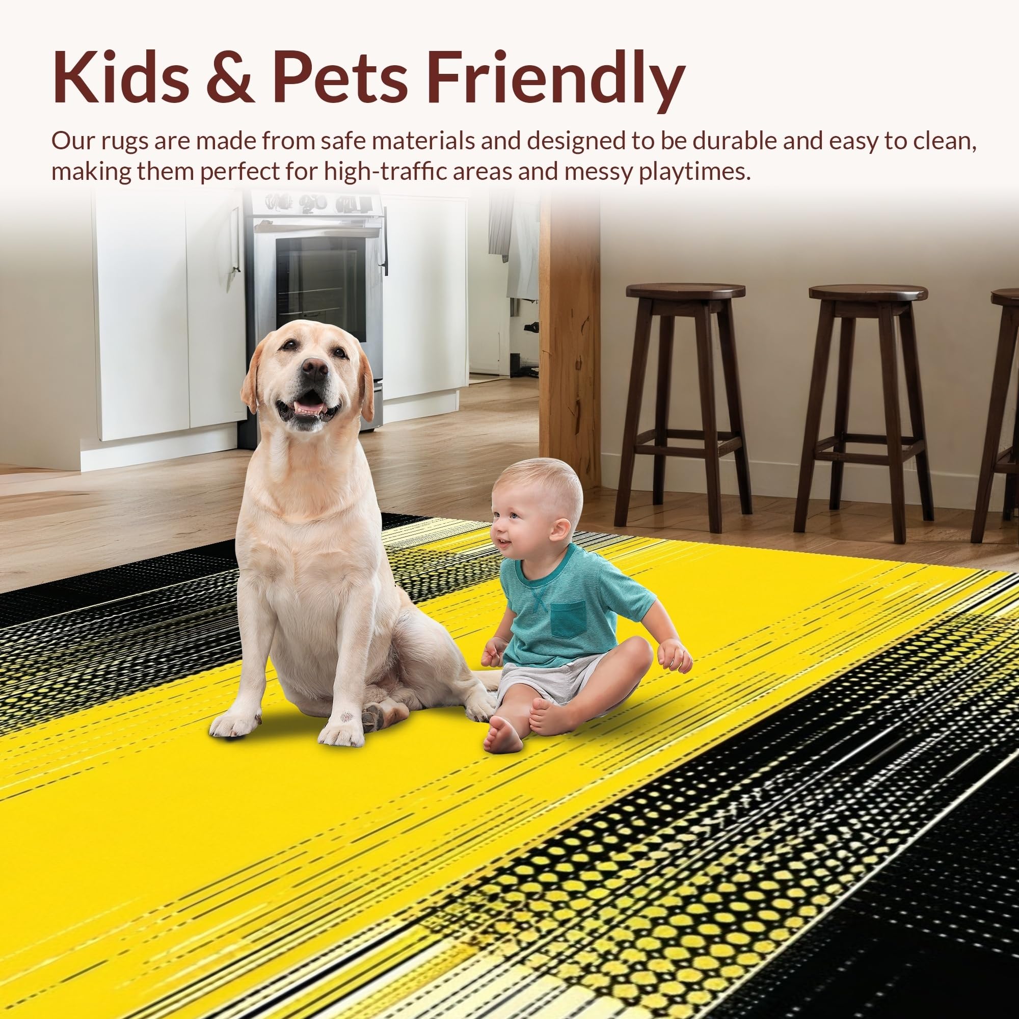 Ultra Soft Area Rug, Non Slip, Stain Resistant, Washable Area Rugs for Living Room, Bedroom, Transitional Unique Textured Design(Black) Overview: