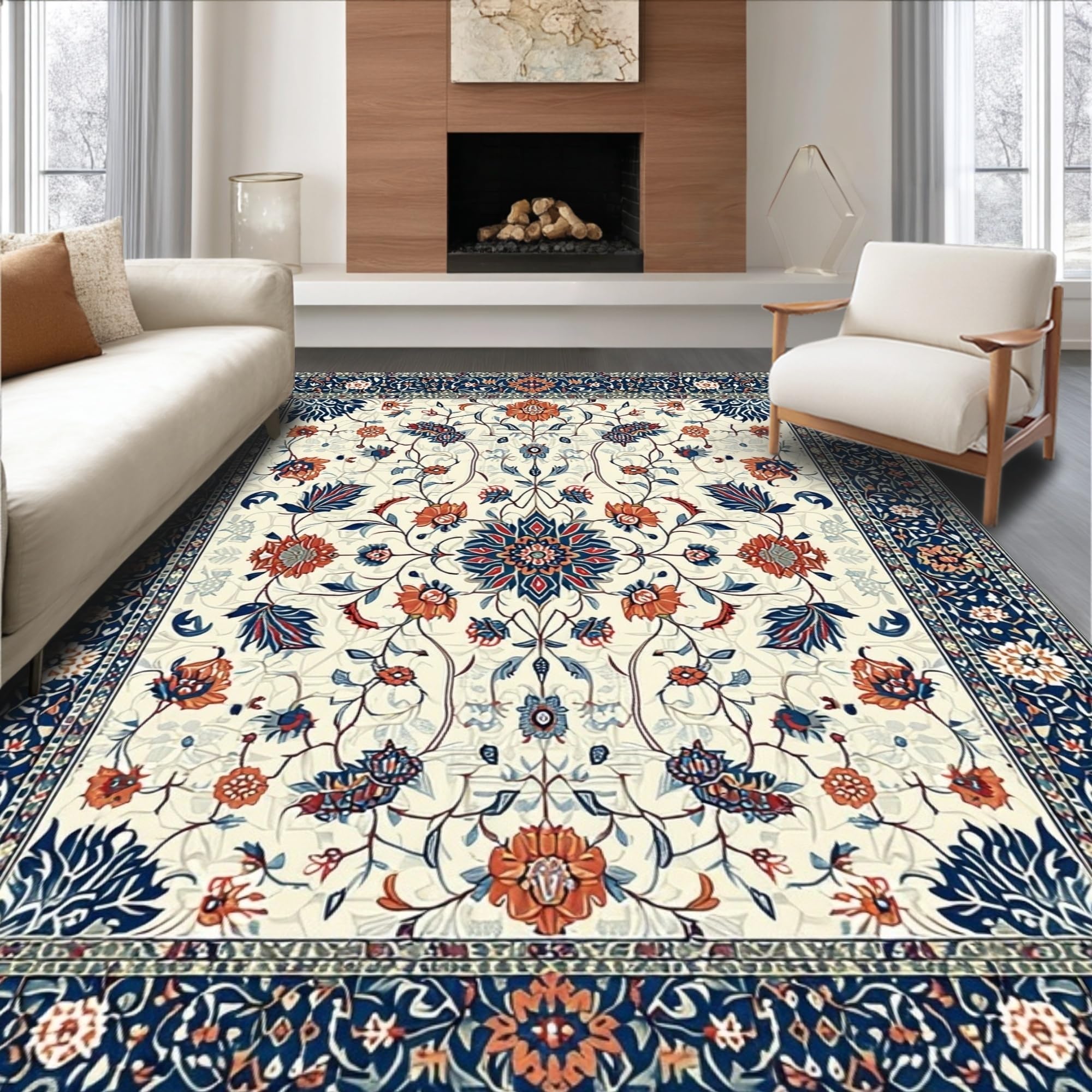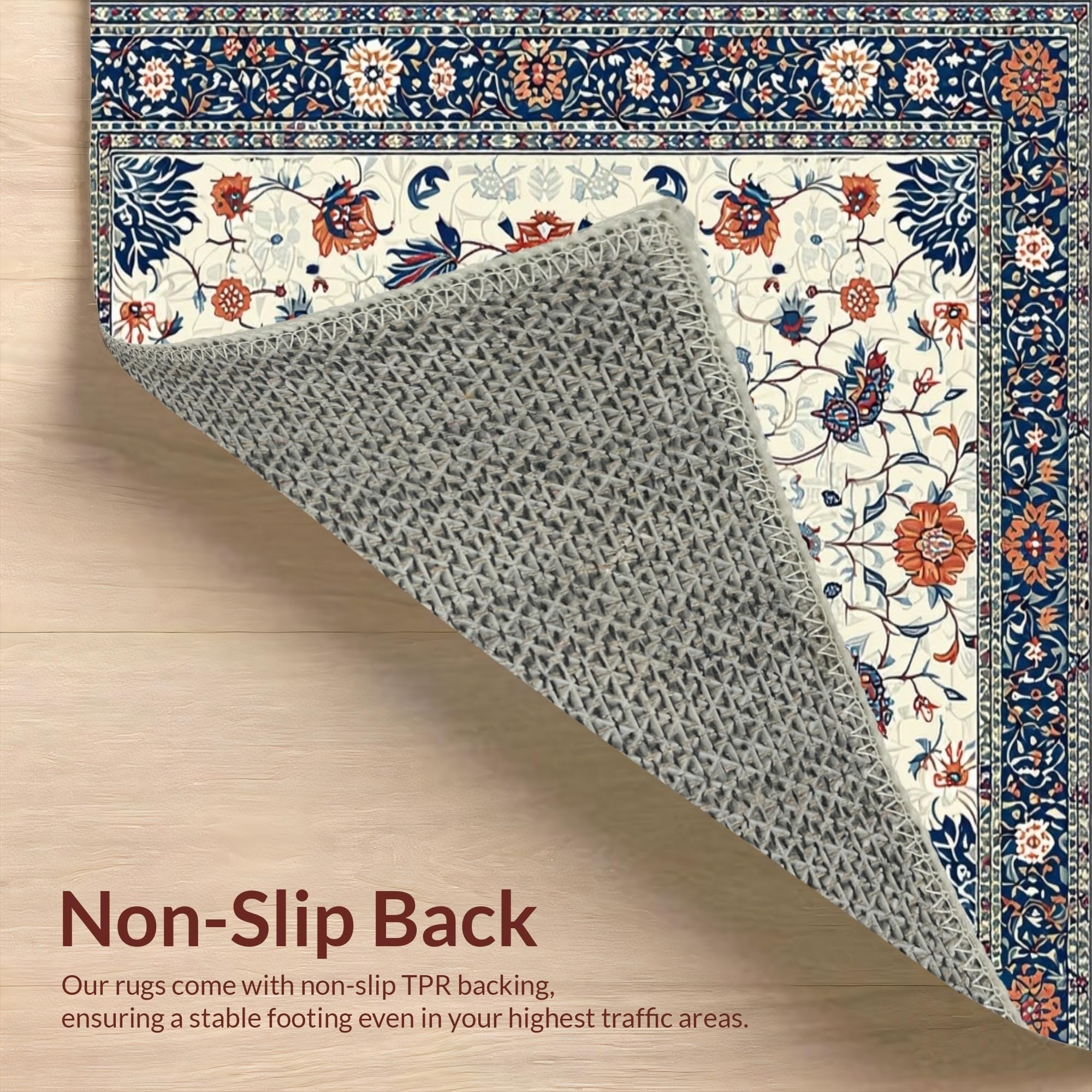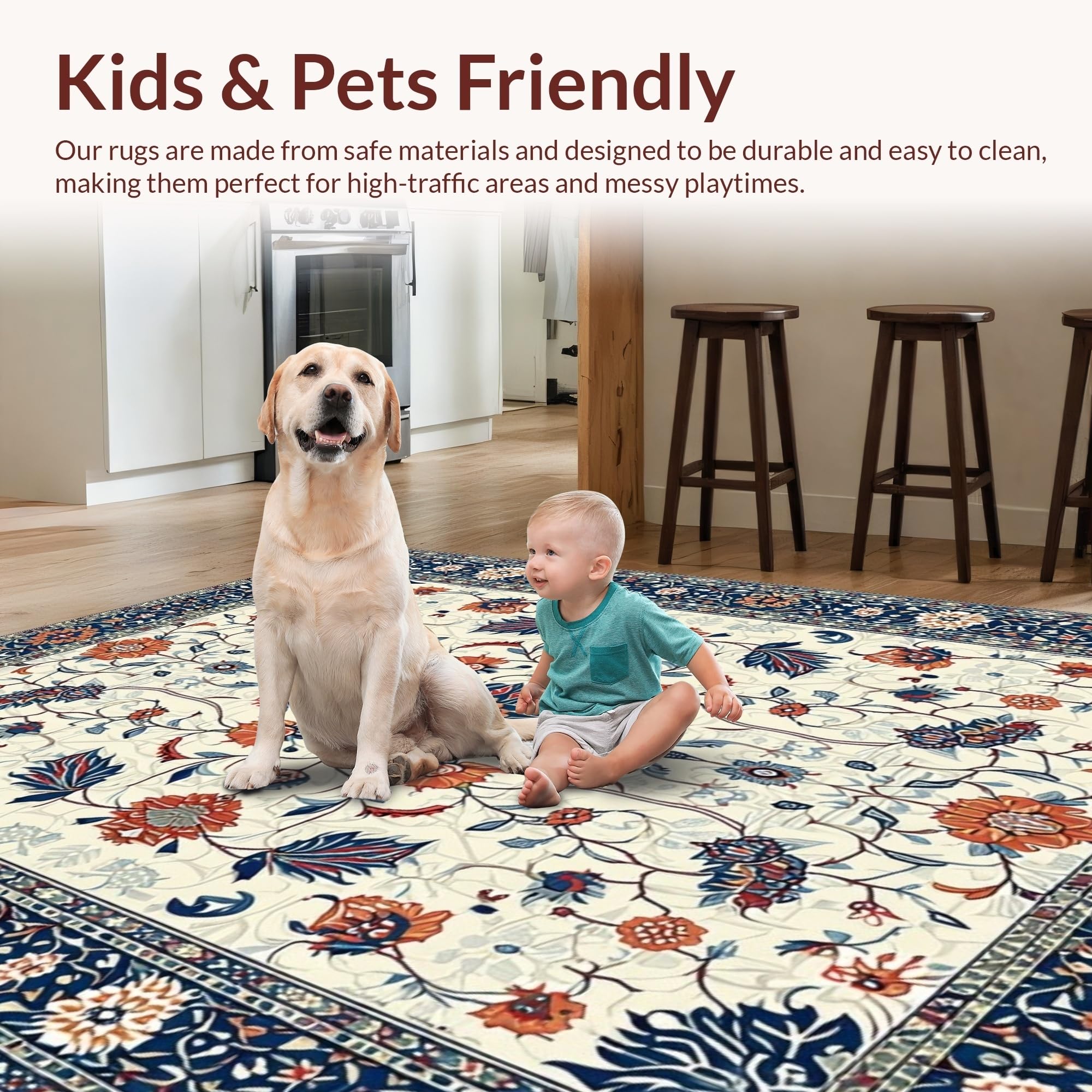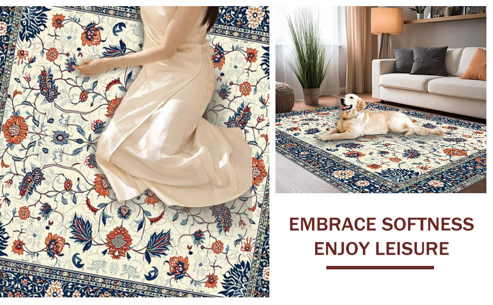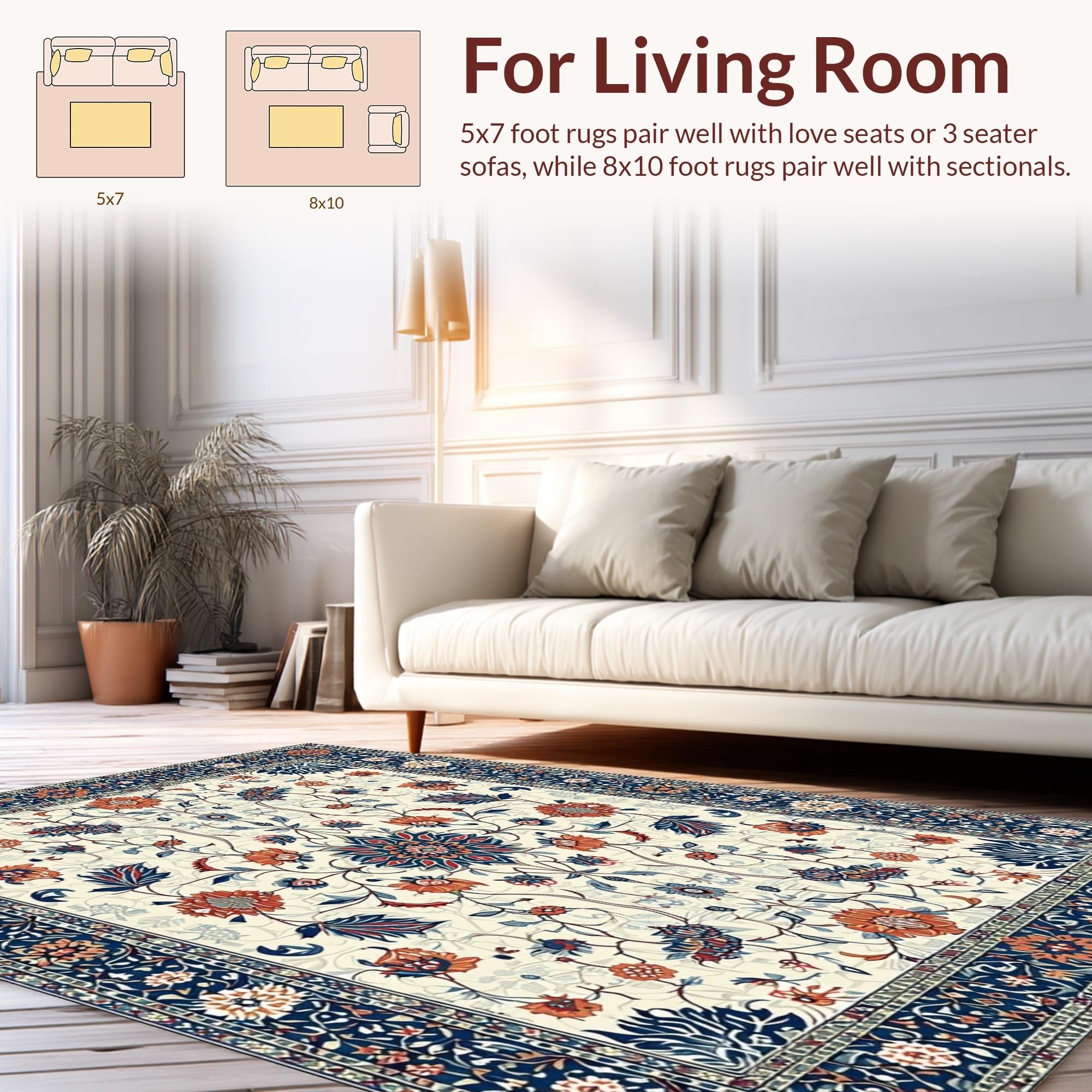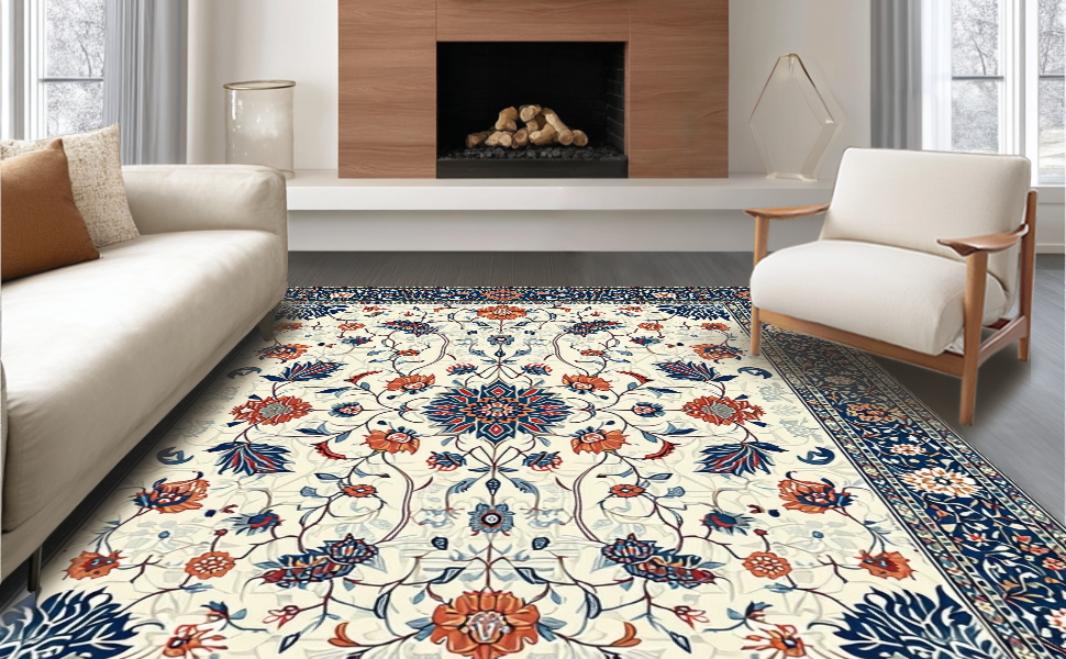 Ultra Soft Area Rug, Non Slip, Stain Resistant, Washable Area Rugs for Living Room, Bedroom, Transitional Vintage Floral Elegance(White) Overview: