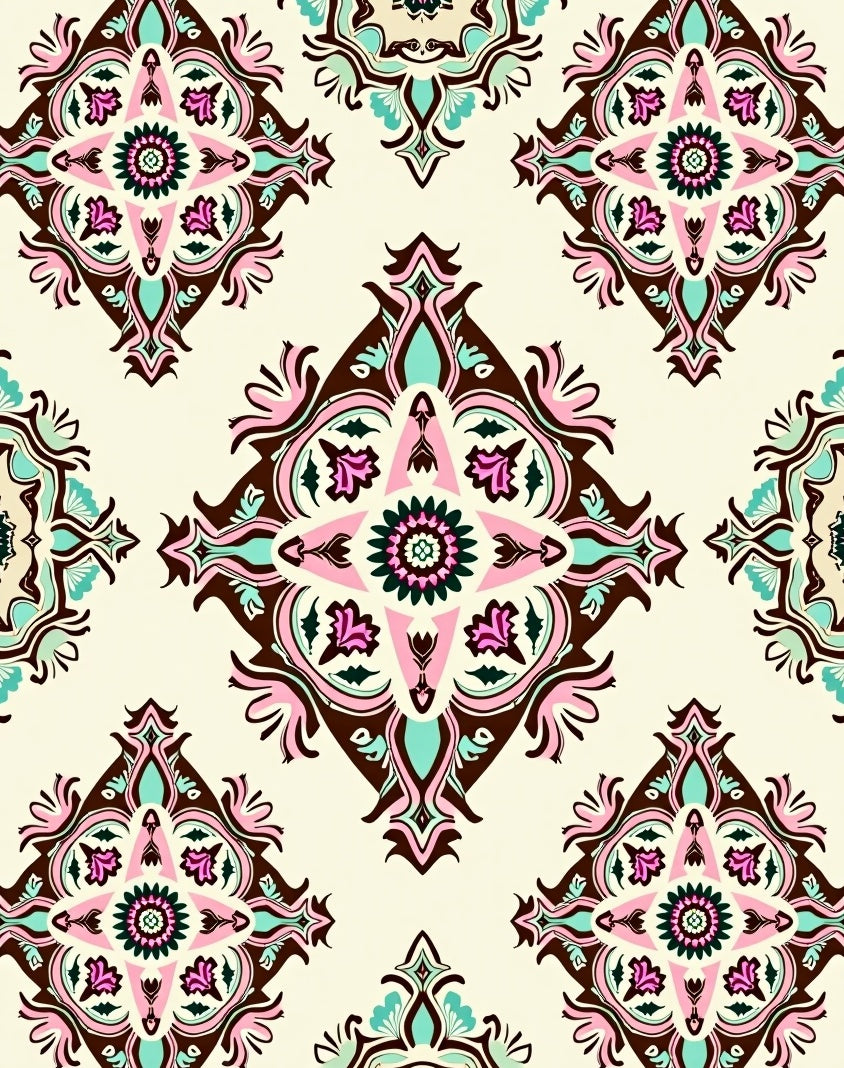 Trellis Medallion Boho with Vintage Motif Accents(Brown)