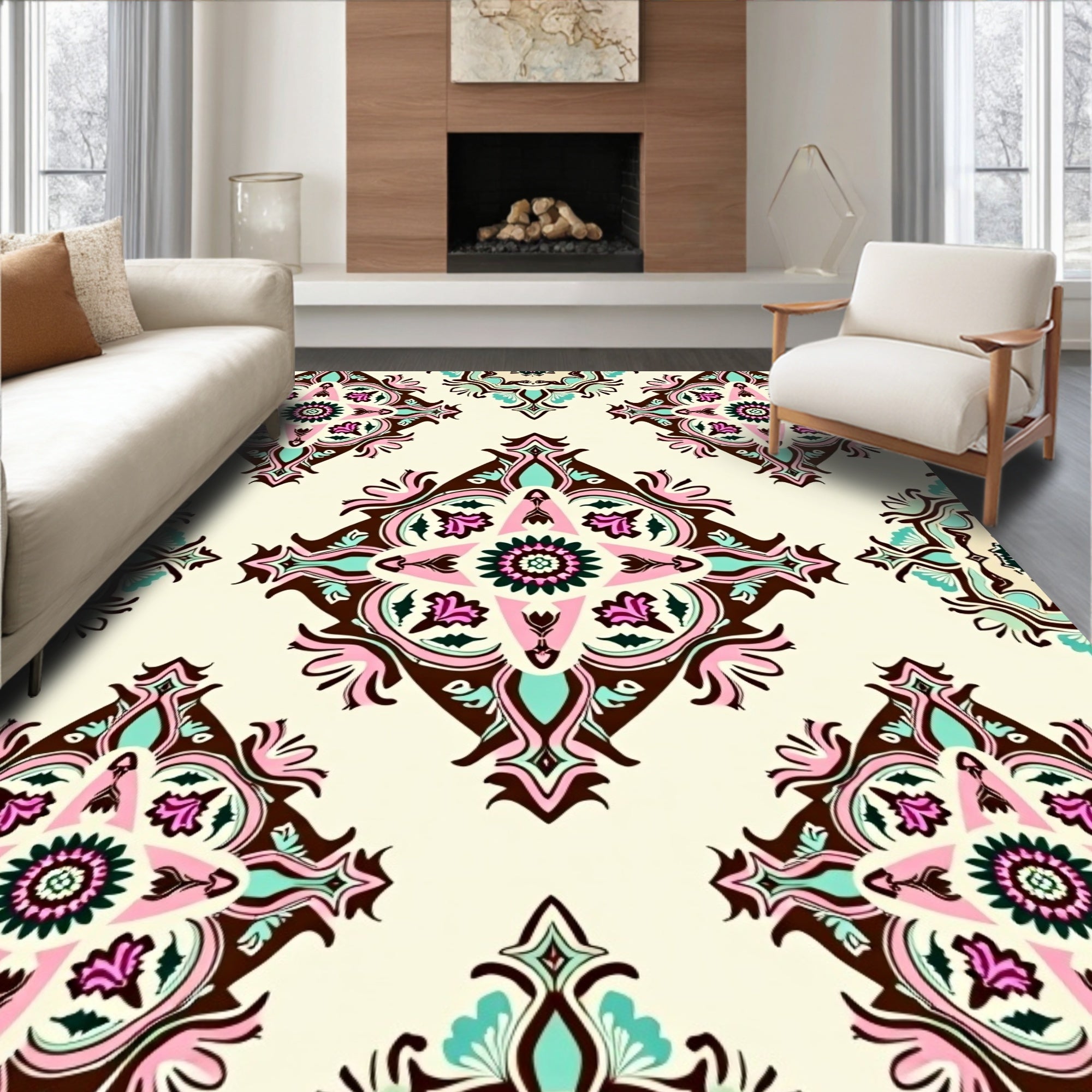 Flatwoven High Traffic Area Rug, Trellis Medallion Boho with Vintage Motif Accents, Non Slip, Stain Resistant, Washable Area Rugs for Living Room, Bedroom (Brown) Overview: