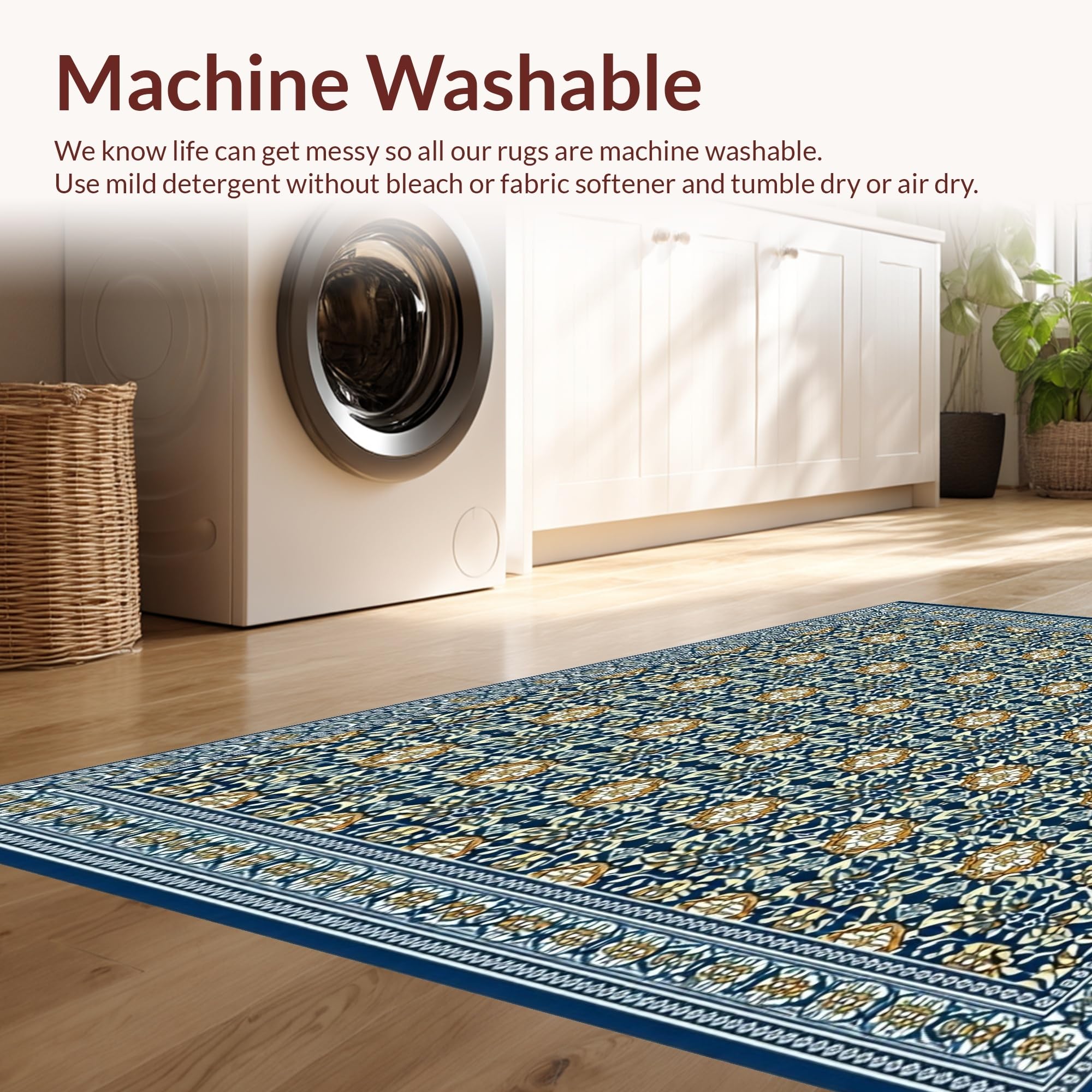 - Machine Washable: Our rugs can be easily thrown in the wash machine.