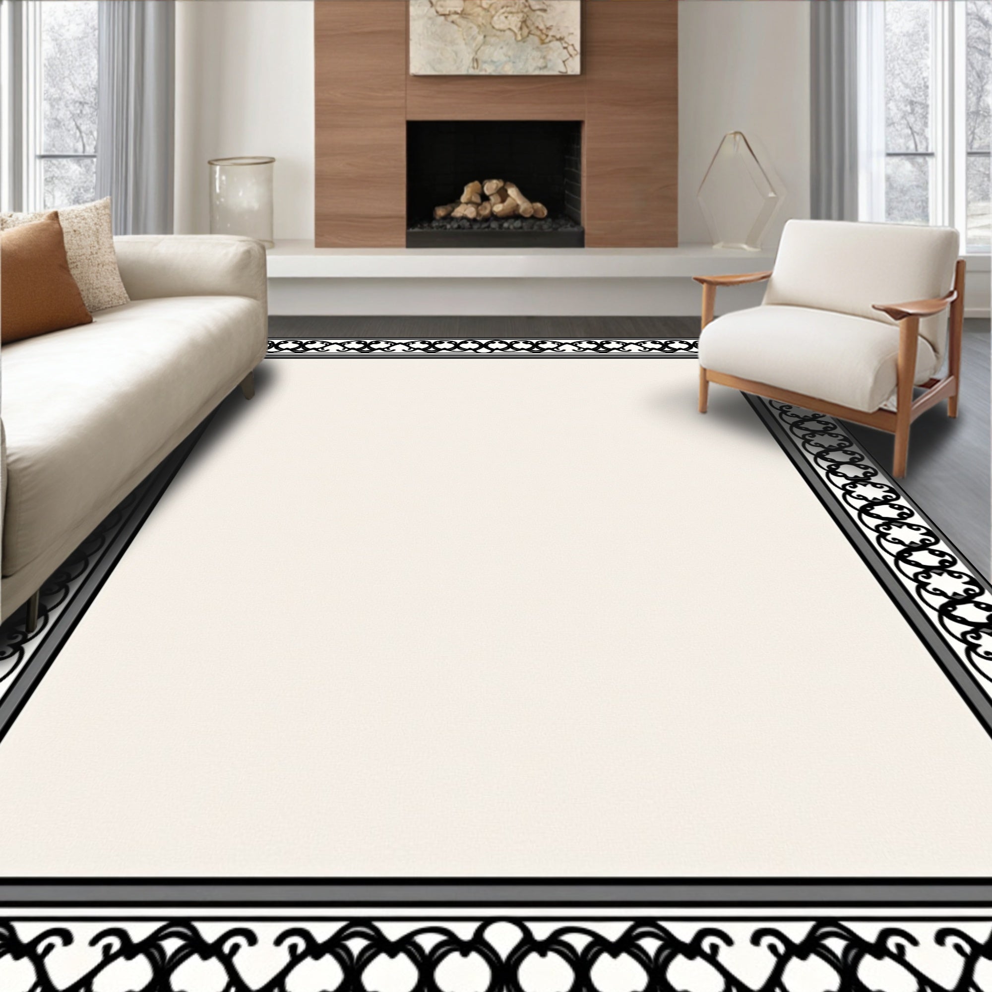 Ultra Soft Area Rug, Non Slip, Stain Resistant, Washable Area Rugs for Living Room, Bedroom, Trellis with Quatrefoil Border Design(Beige) Overview: