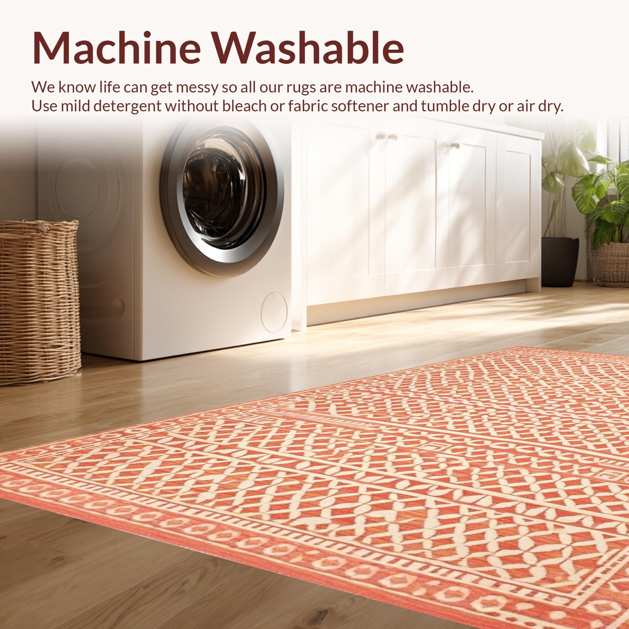 - Machine Washable: Our rugs can be easily thrown in the wash machine.